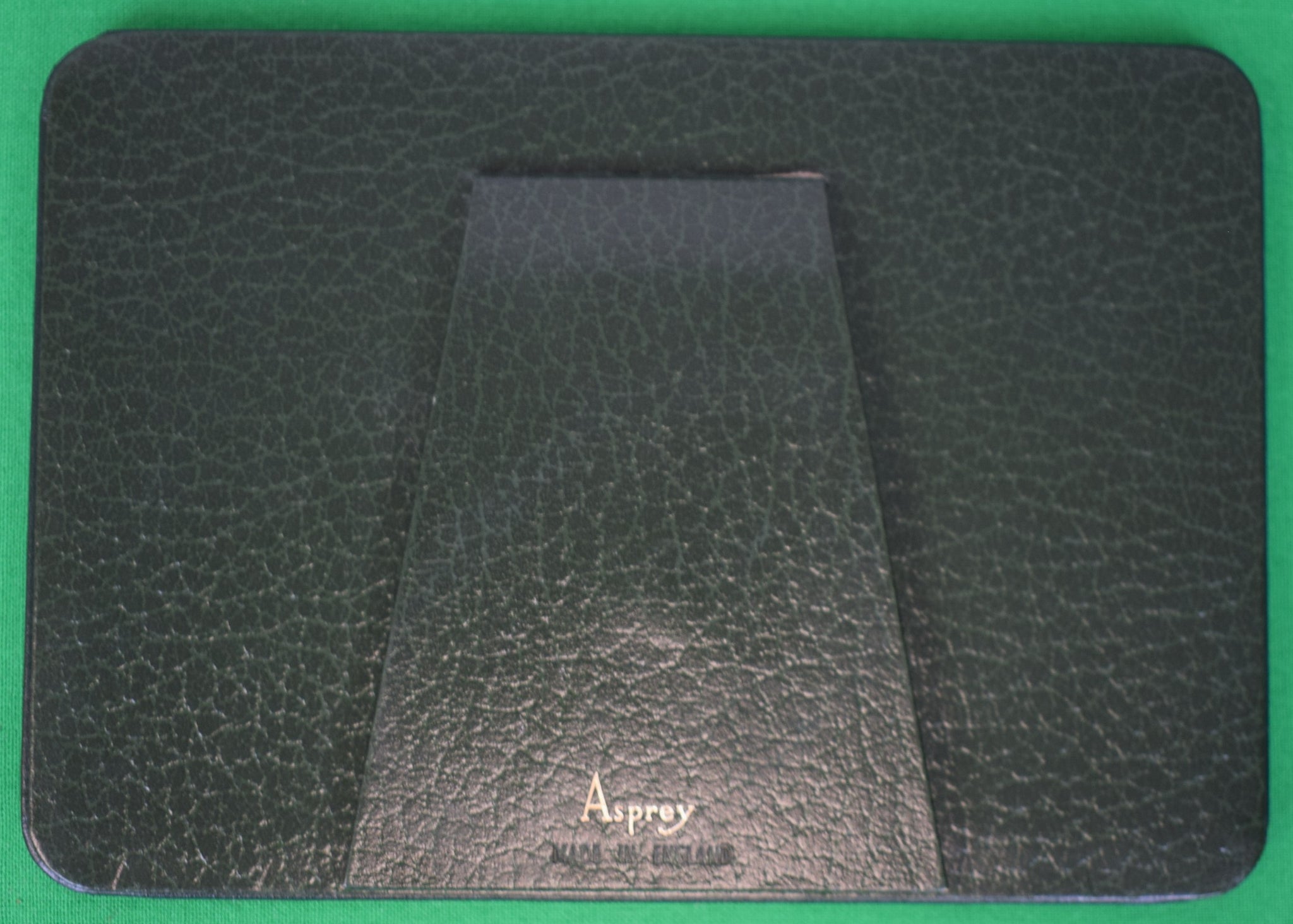 Asprey London "It CAN Be Done" British Racing Green Leather/ Easel Back Desk Sign/ Plaque
