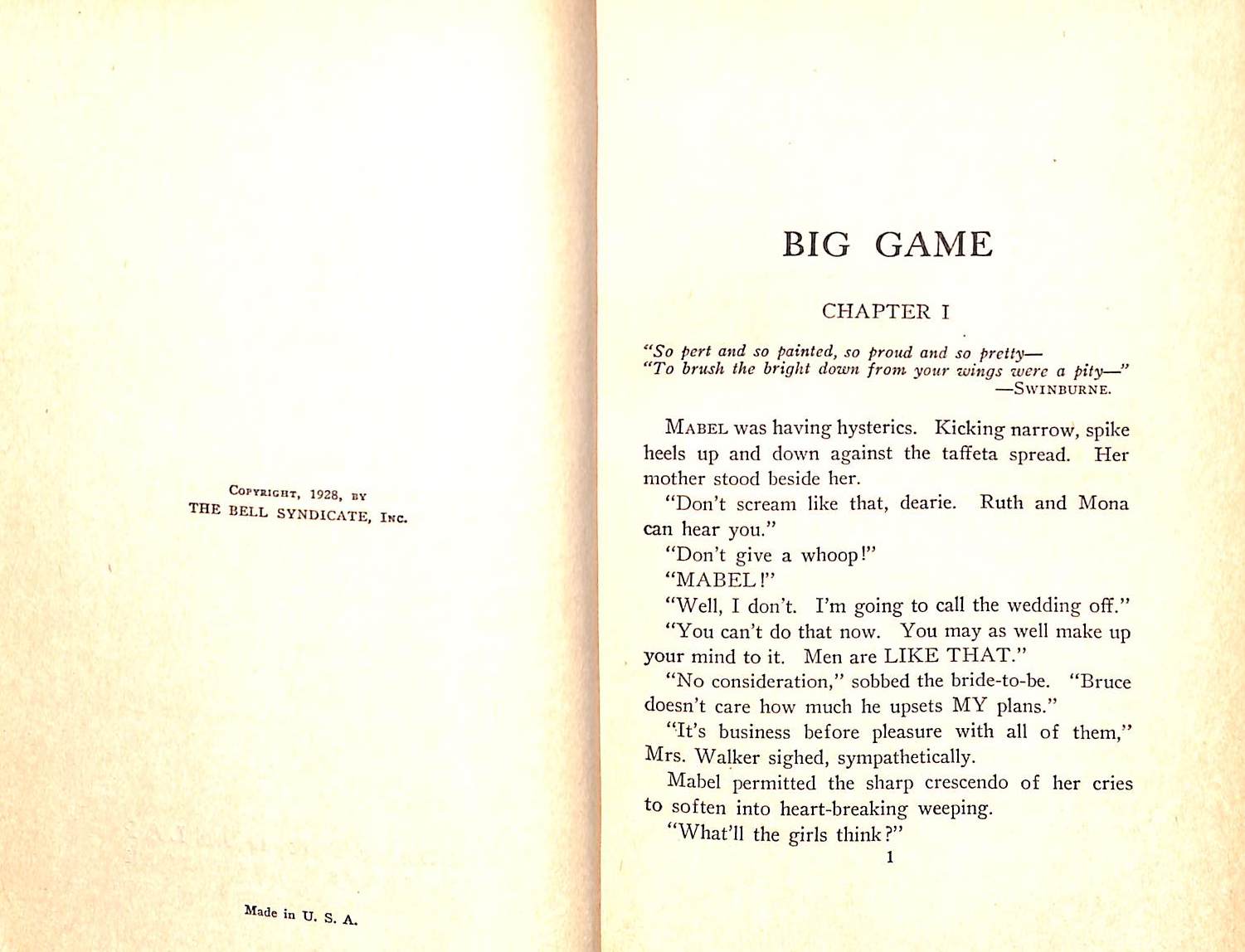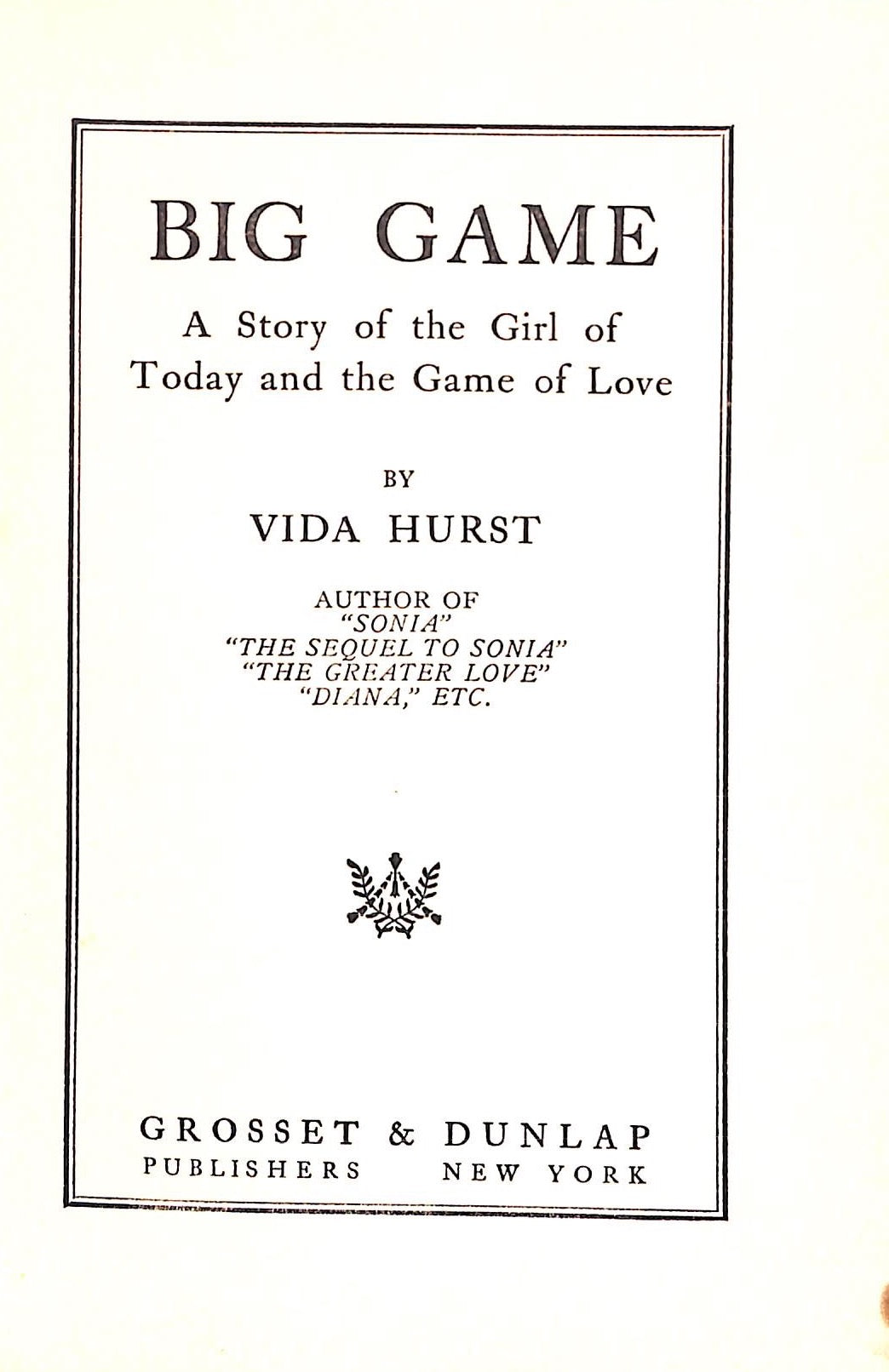 "Big Game: A Story Of The Girl Of Today & The Game Of Love" 1928 HURST, Vida