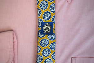 Brooks Brothers Archive Collection Gold w/ Blue Medallion Print Silk Tie (NWT)