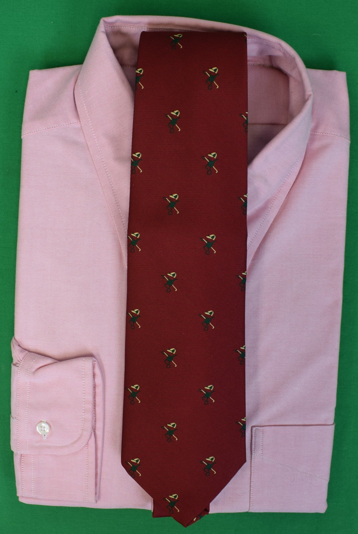 "Brooks Brothers Burgundy English Silk w/ Jockey Cap/ Saddle & Riding Crop Print Club Tie" (NWT)