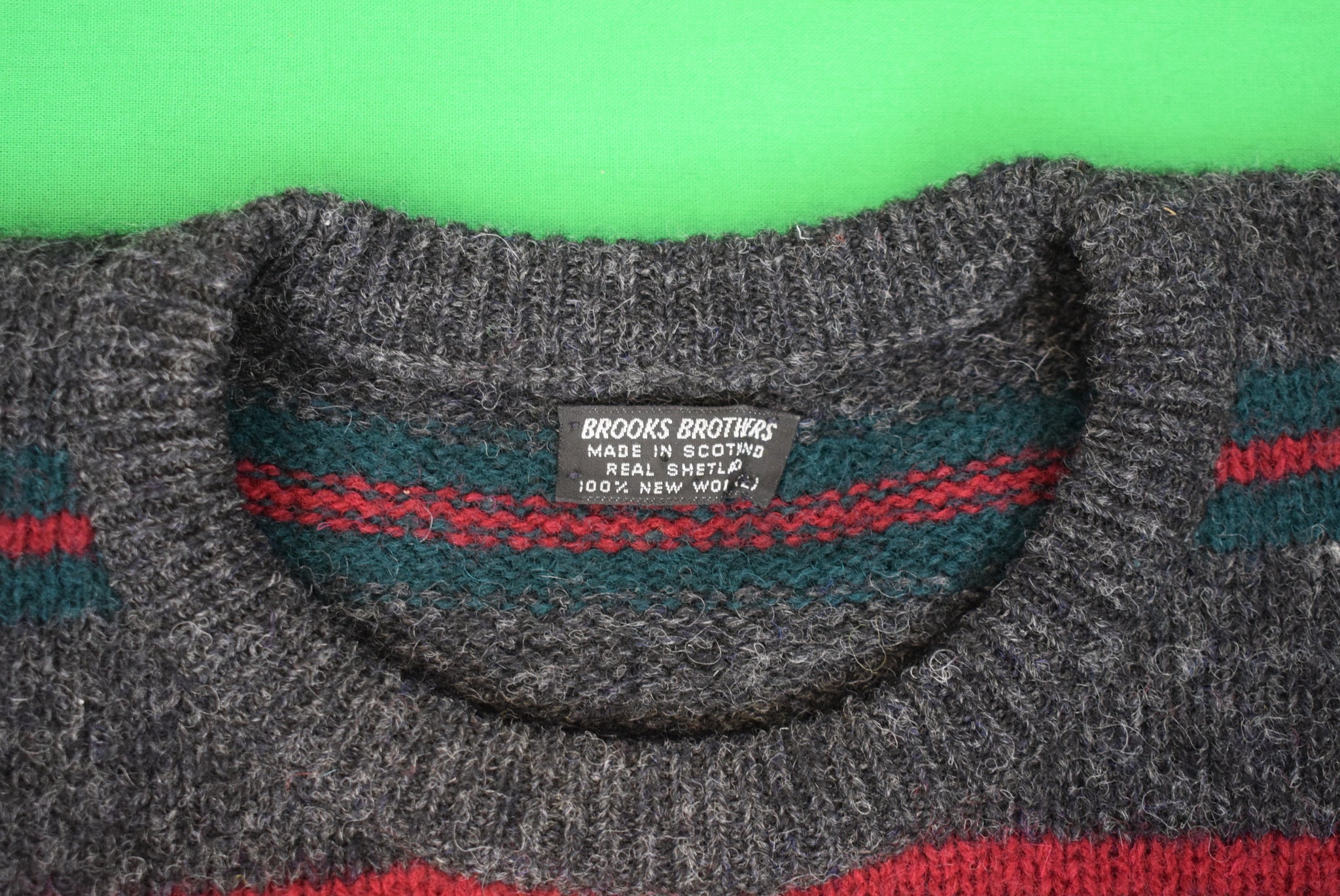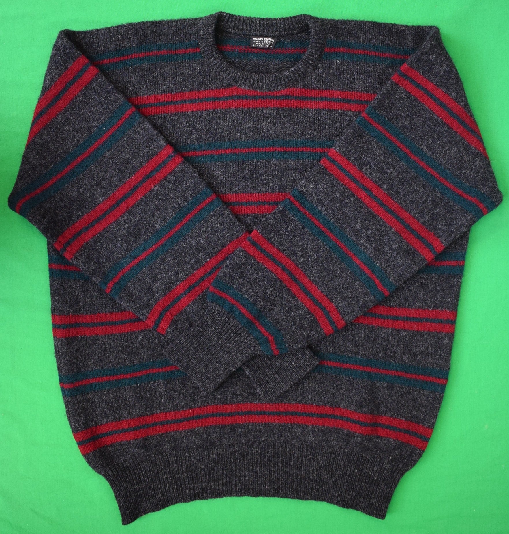 Brooks Brothers Char Grey w/ Burg/ Green Regimental Stripe Shetland Wool Crewneck Sweater Sz L (LNWOT)
