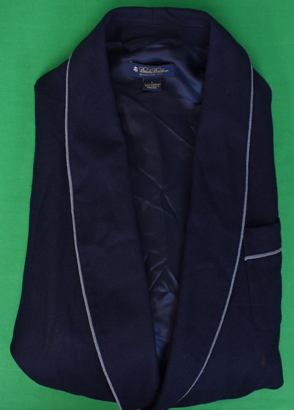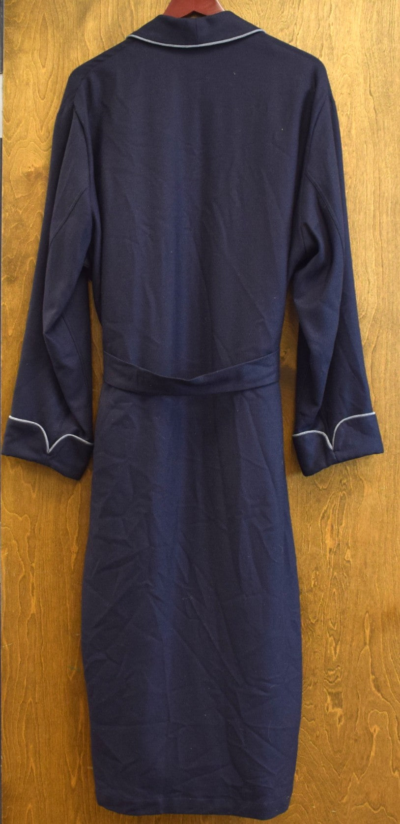 "Brooks Brothers Navy Lambswool Dressing Gown w/ Silver Cord Piping Handmade In England" Sz L (LNWOT)