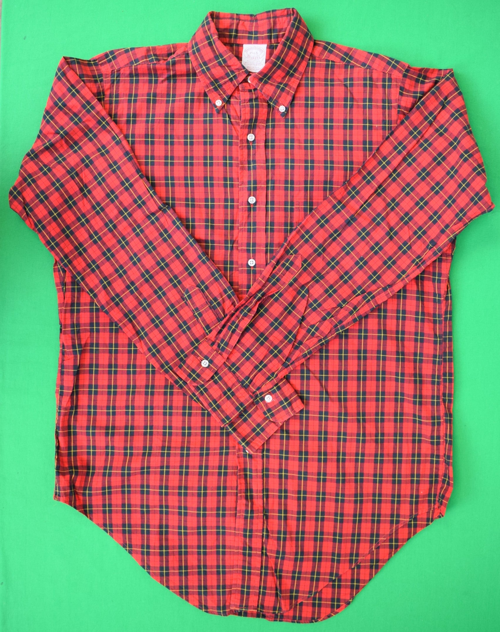 Brooks Brothers Red Tartan Plaid Broadcloth L/S B/D Sport Shirt Sz 15 L.S.
