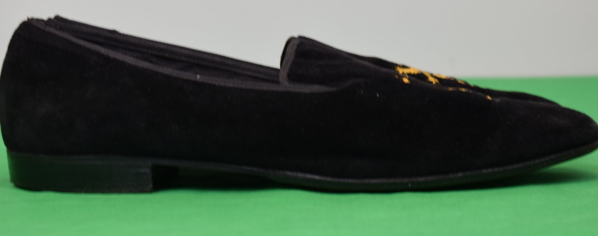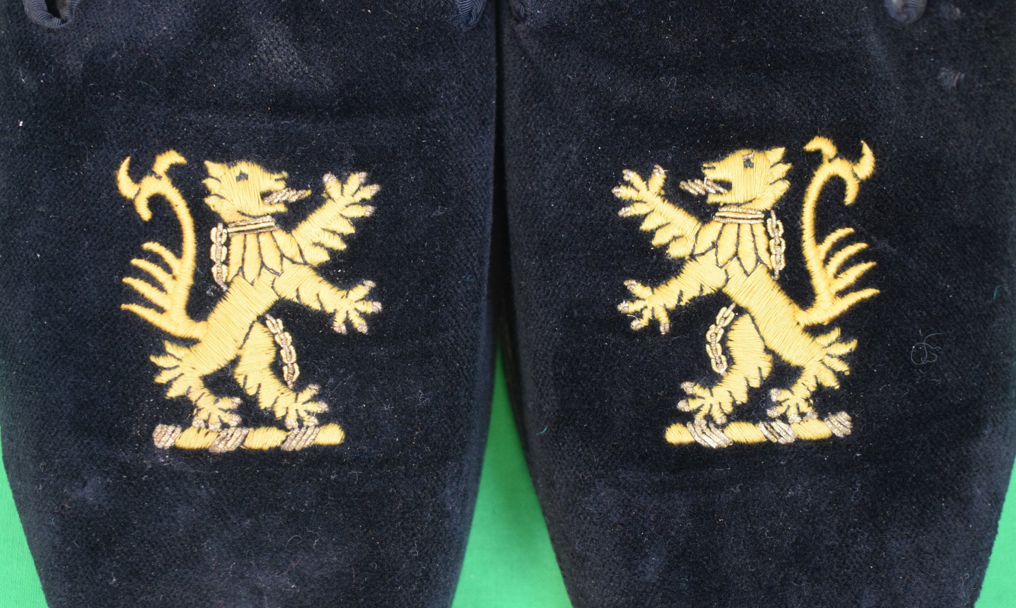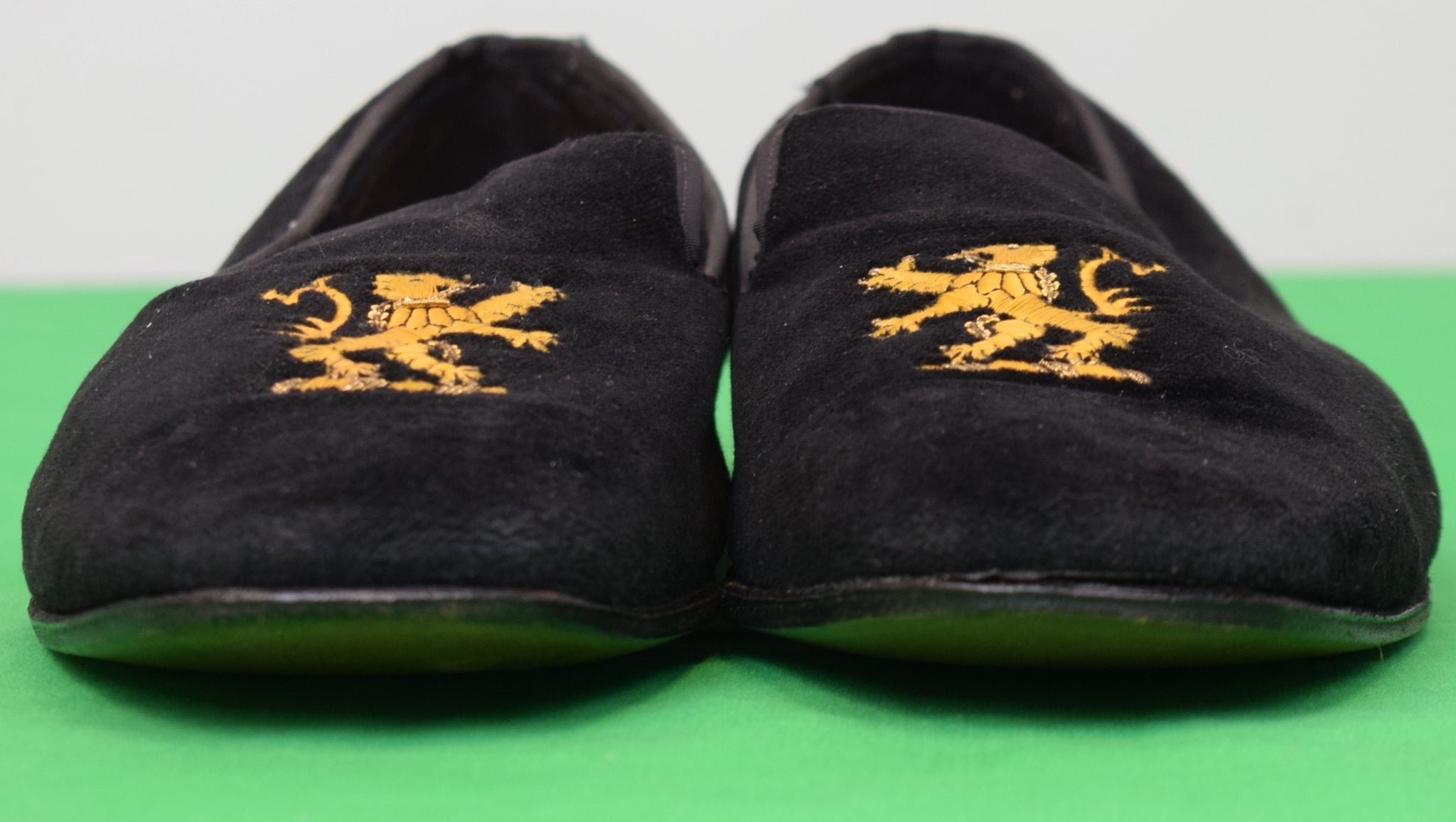"Brooks Brothers x Peal & Co Black Velvet Slippers w/ Gold Embroidered Rampant Lion" Sz 11 1/2