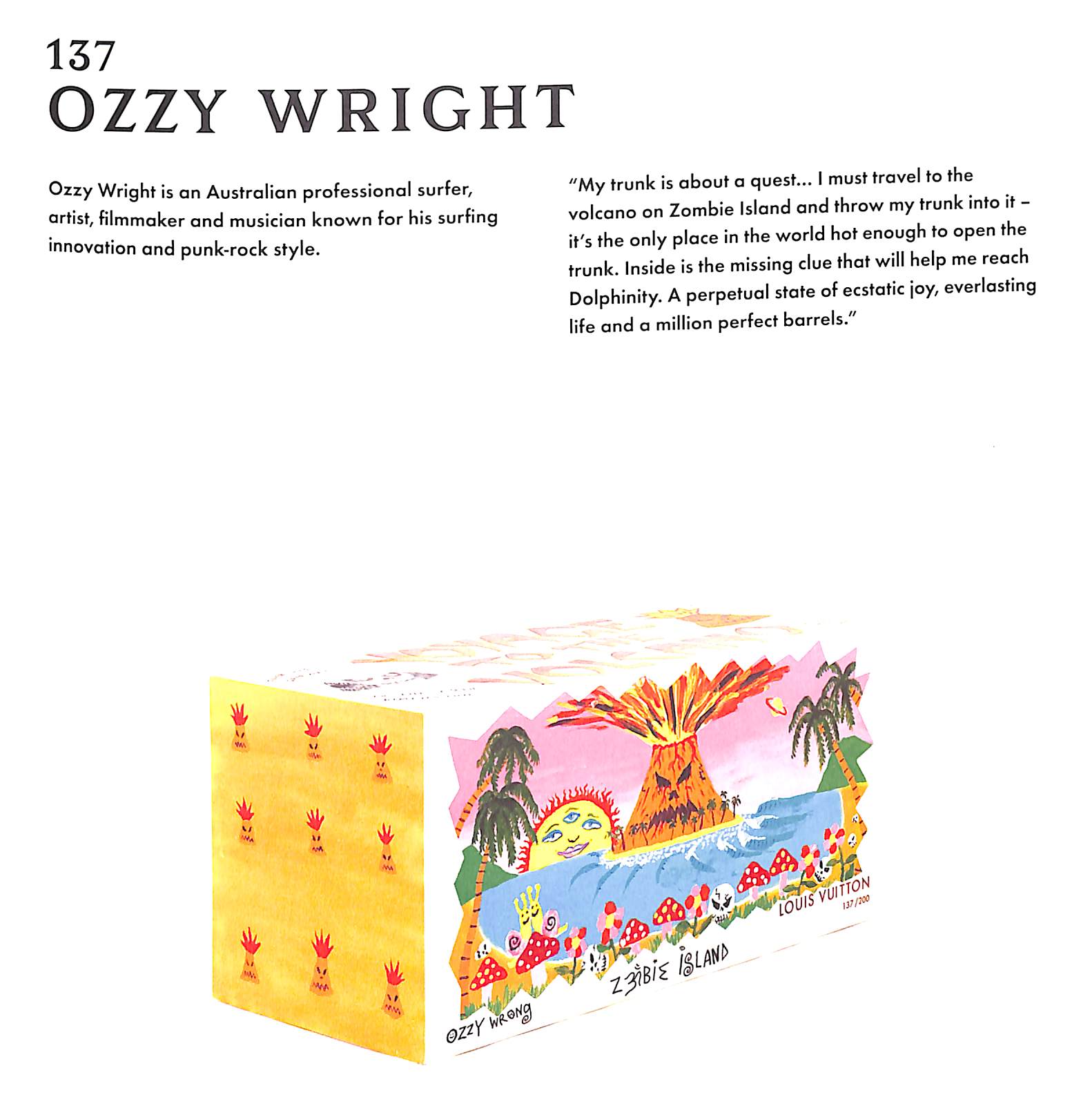 To celebrate the 200th anniversary of the founder's birth, Louis Vuitton invited 200 individuals from around the world and across disciplines to share their vision, desires, fears and reflections. We offered the trunk, in its purest state and stripped of all trimmings, as a metaphorical blank canvas or vessel to artists, architects, writers, musicians, designers and many more. What we received back and collected over a year is a reflection of the diverse and beautiful human spirit. It is an amalgamation of the past, present and future: 200 original expressions contemplating where we came from, where we are and where we might be headed. The beautifully produced Louis 200 catalogue presents the 200 designs by talents as diverse as Frank Gehry, Gloria Steinem, Jean-Michel Othoniel, Jean-Philippe Delhomme and Nigo.