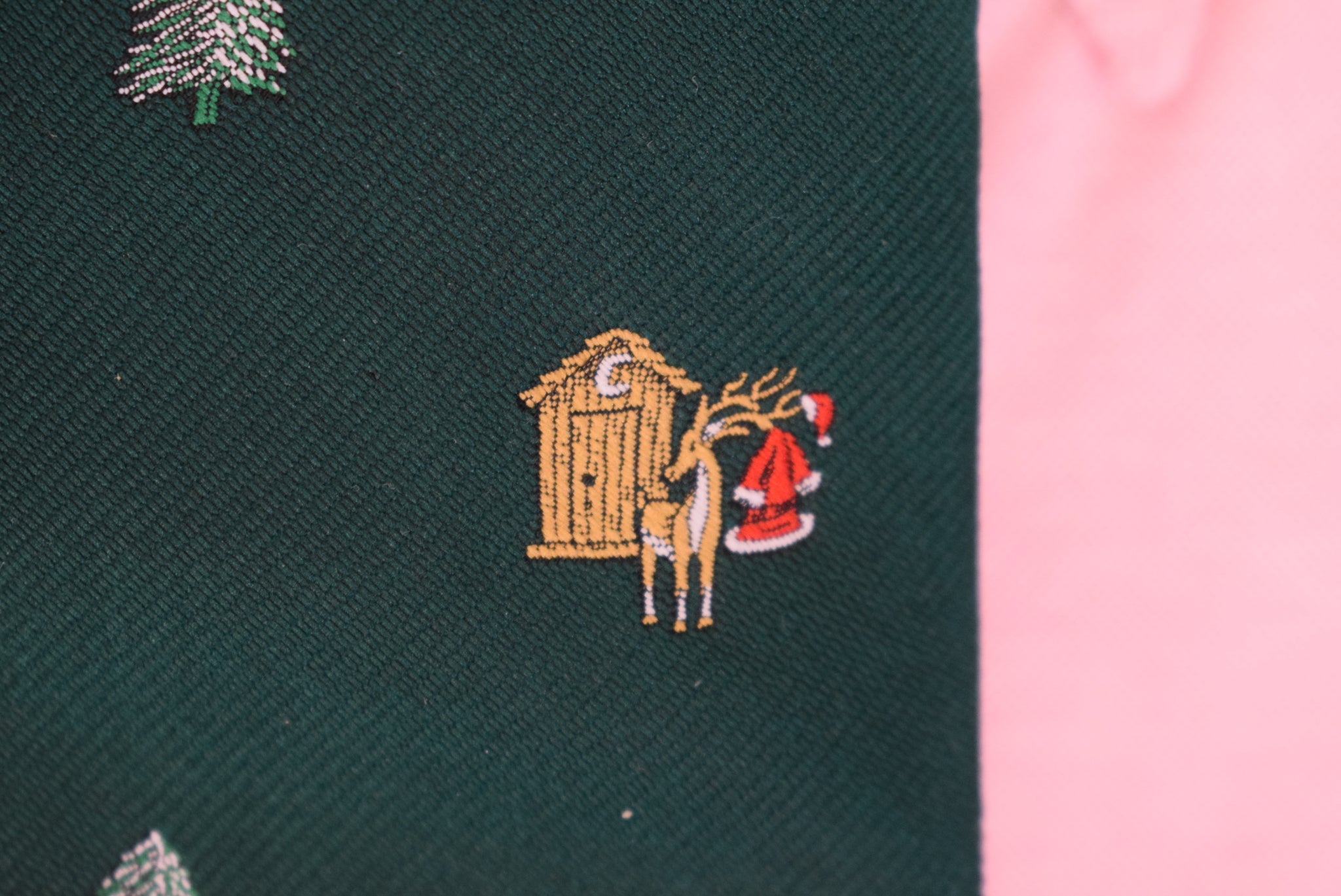 "Chipp Christmas Tree Green w/ Santa/ Reindeer Outhouse Club Tie"