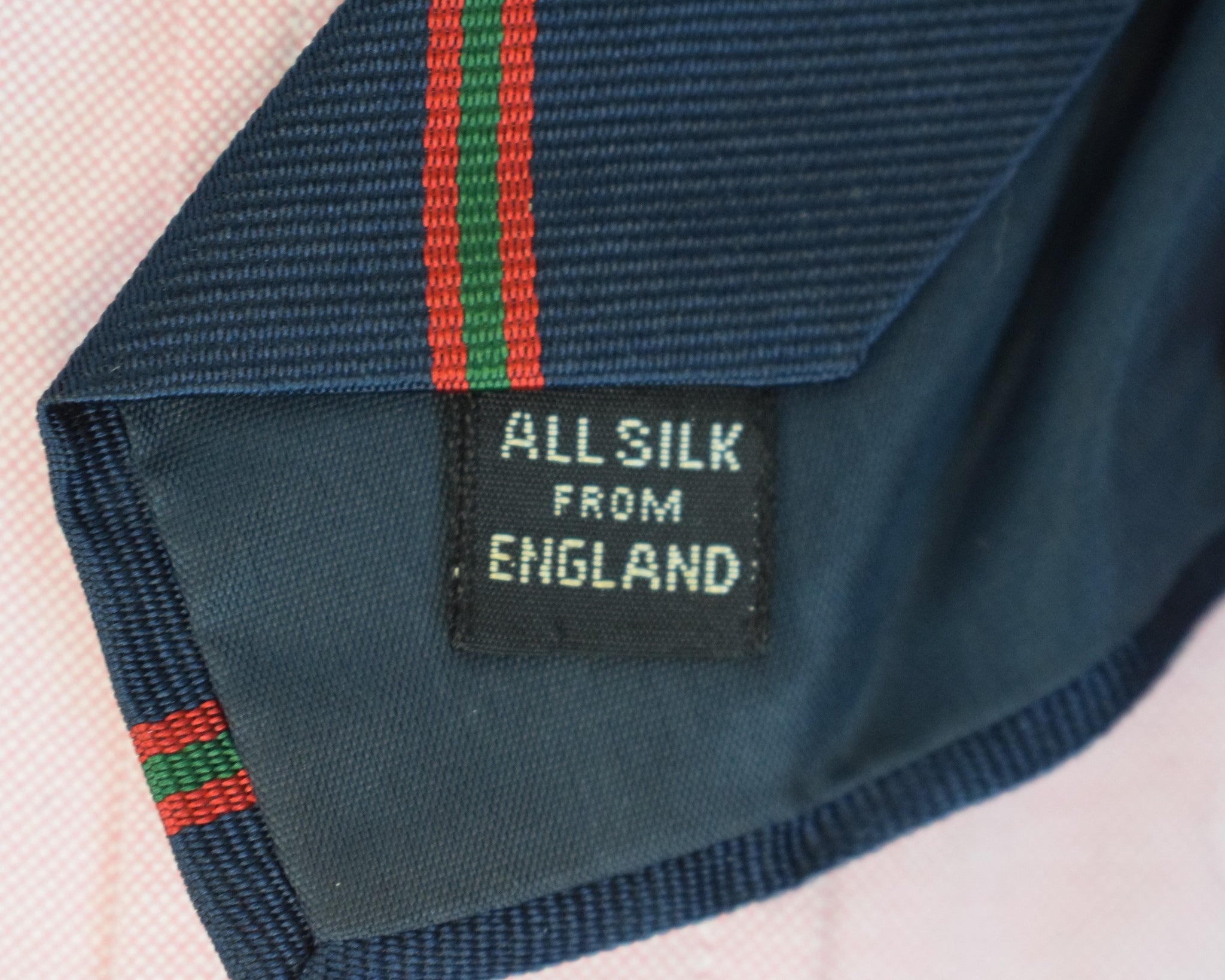 "Chipp Navy w/ Red/ Green Repp Stripe English Silk Club Tie"