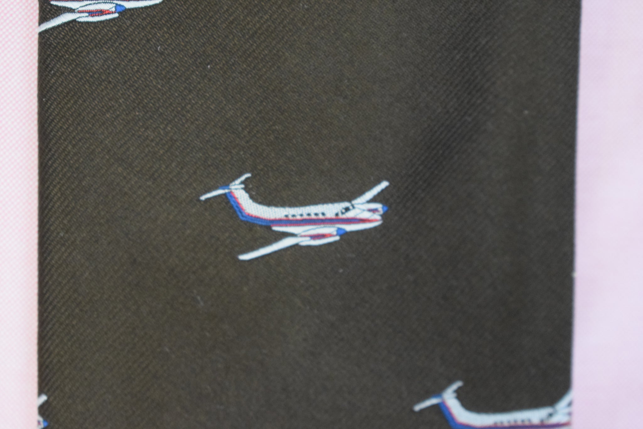 Chipp x Chaparral Aviation Brown English Silk Club Tie (New w/ Box)