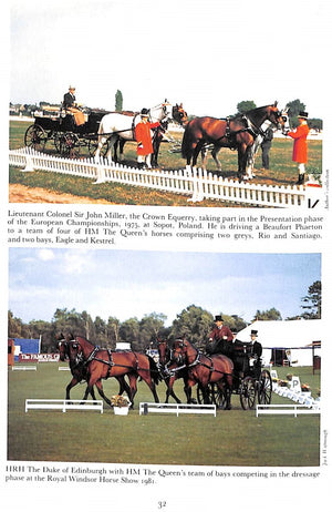 This is a detailed manual of practical advice, aimed at the novice driver. Chapters include: The FEI Rules for driving events; Horses; Bridles and bits; Harness; Carriages; The driver; Grooms; Basic training; The competition; Dressage; The marathon; Timekeeping and navigation; obstacles; Organising an event; Horse sense; "I hear you're doing this dangerous carriage driving thing?"