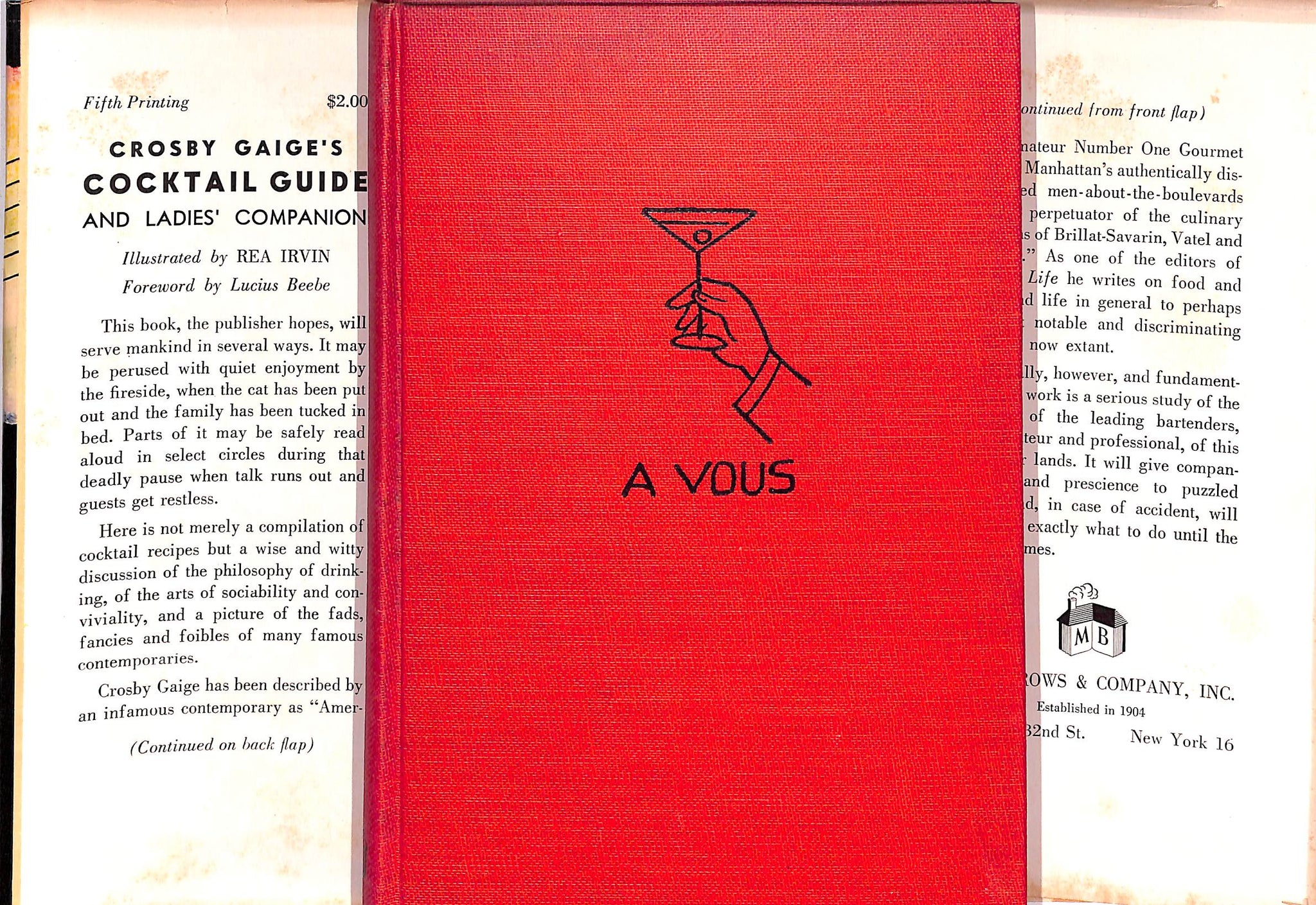 Filled with fabulous illustrations and recipes, a must have for any cocktail enthusiast. A full chapter filled with letters and recipes from foodies of the time including James Beard - as well as a recipe for the Red Snapper, the original bloody Mary of the King Cole Bar at the St. Regis.