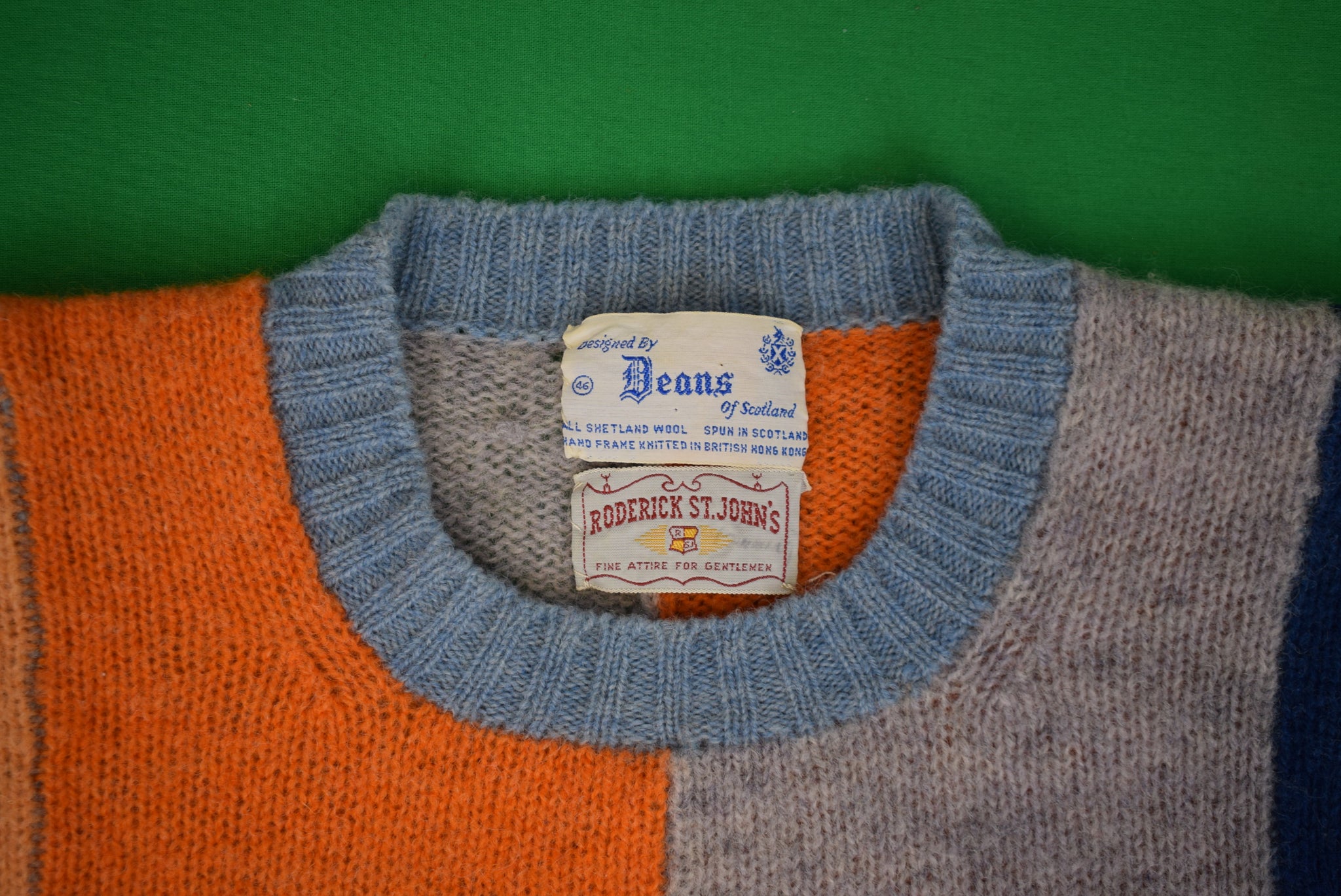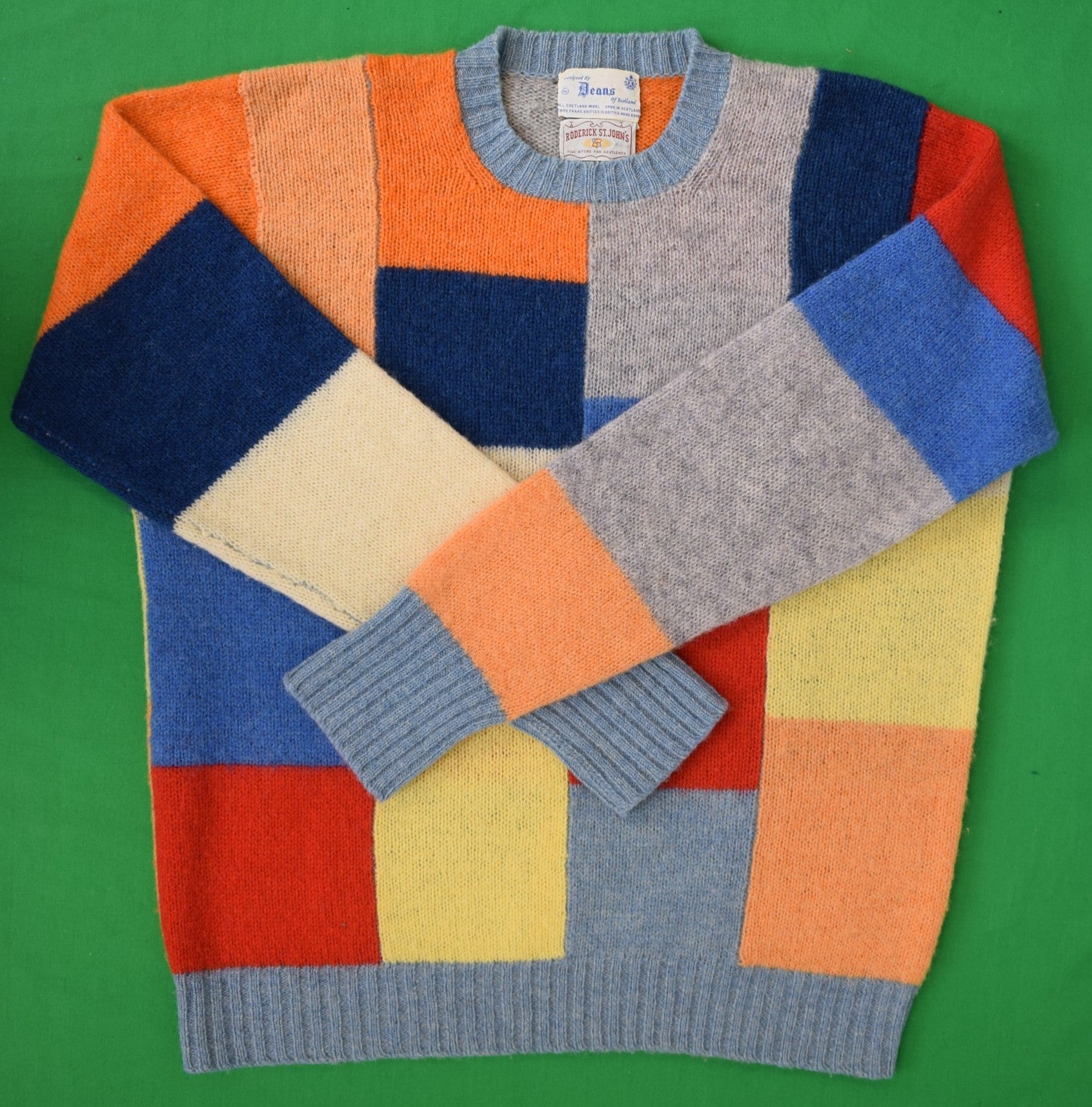 "Deans Of Scotland Shetland Wool Scottish Patch Panel Crewneck Sweater" Sz XL