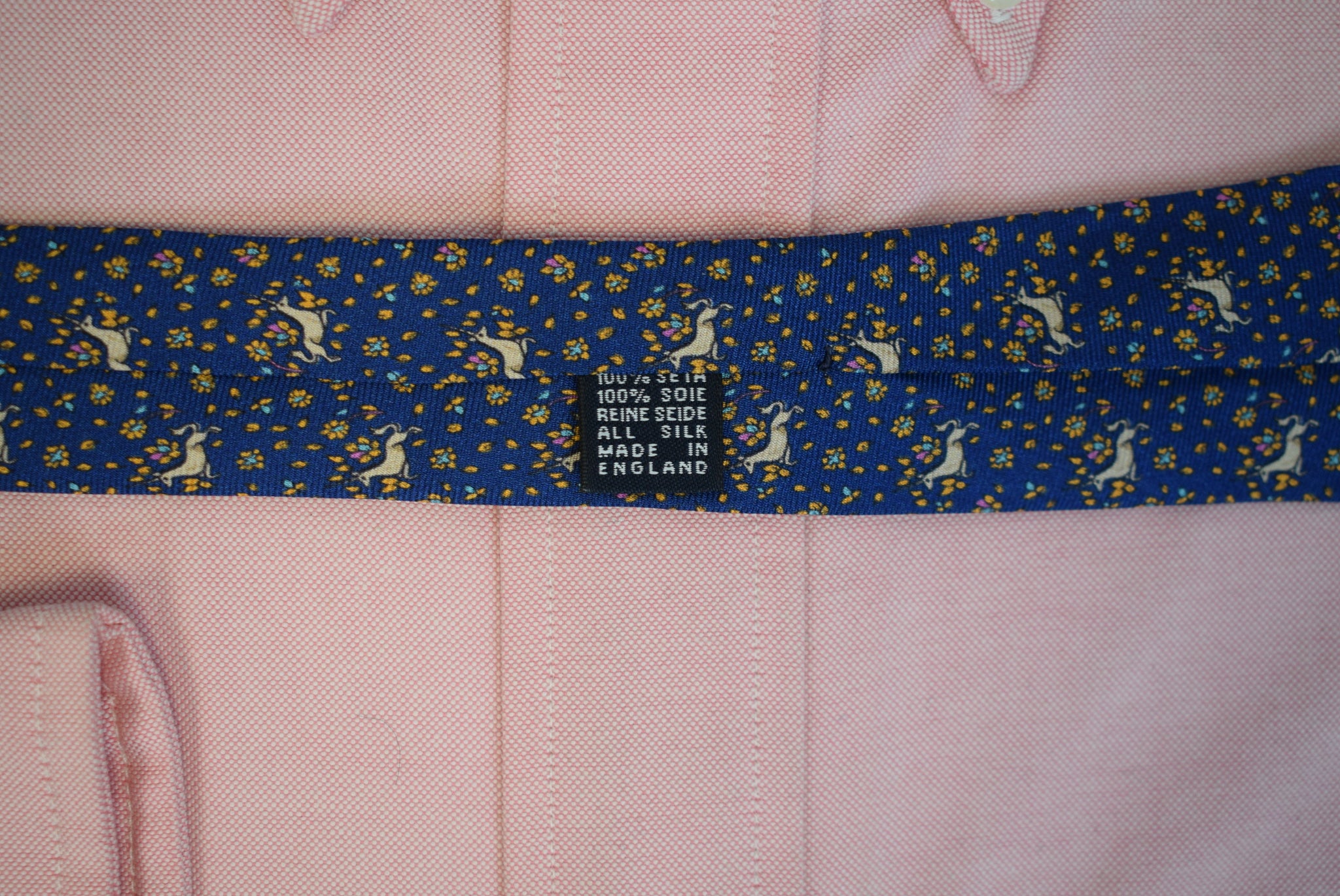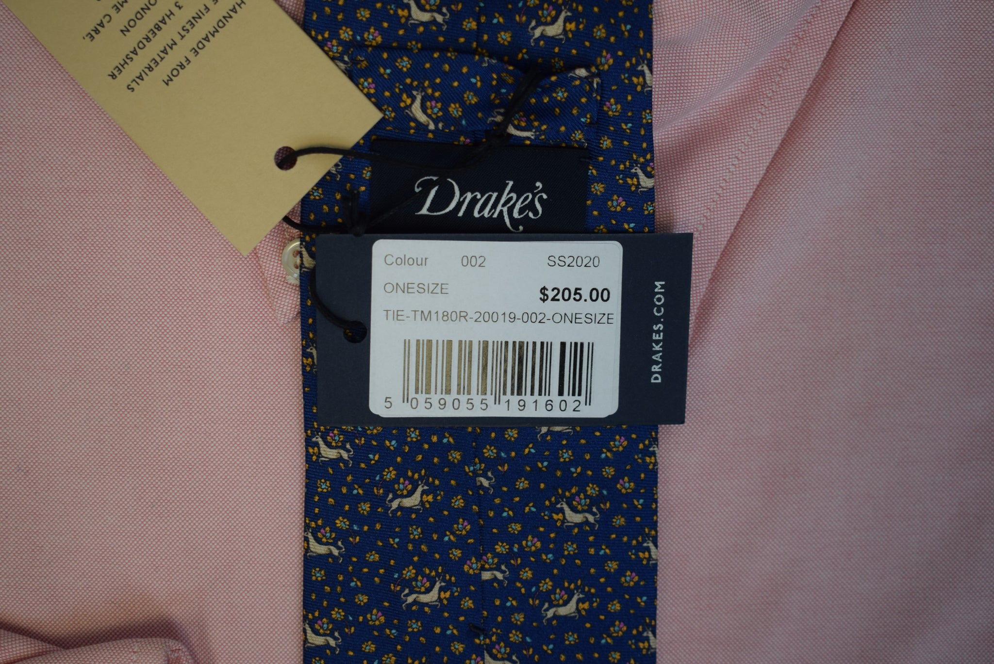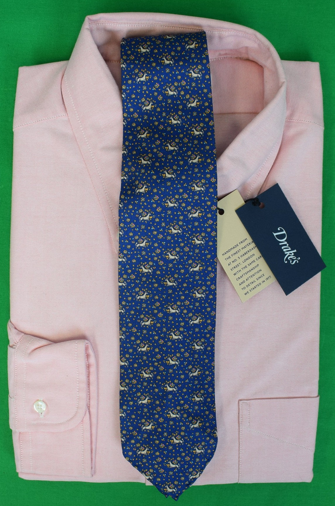 Drake's London English Navy Silk w/ Orange Unicorn Print Club Tie (NWT)
