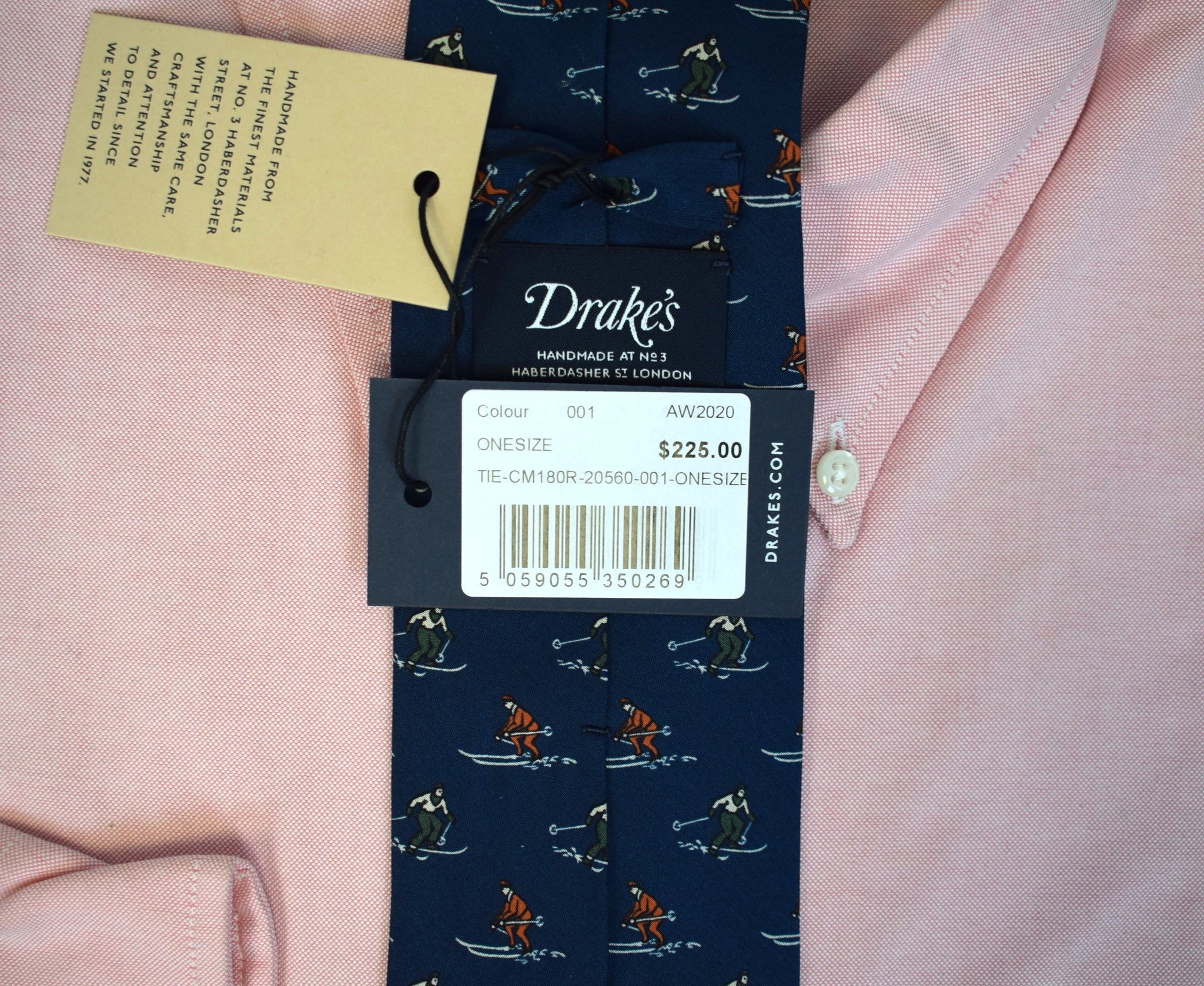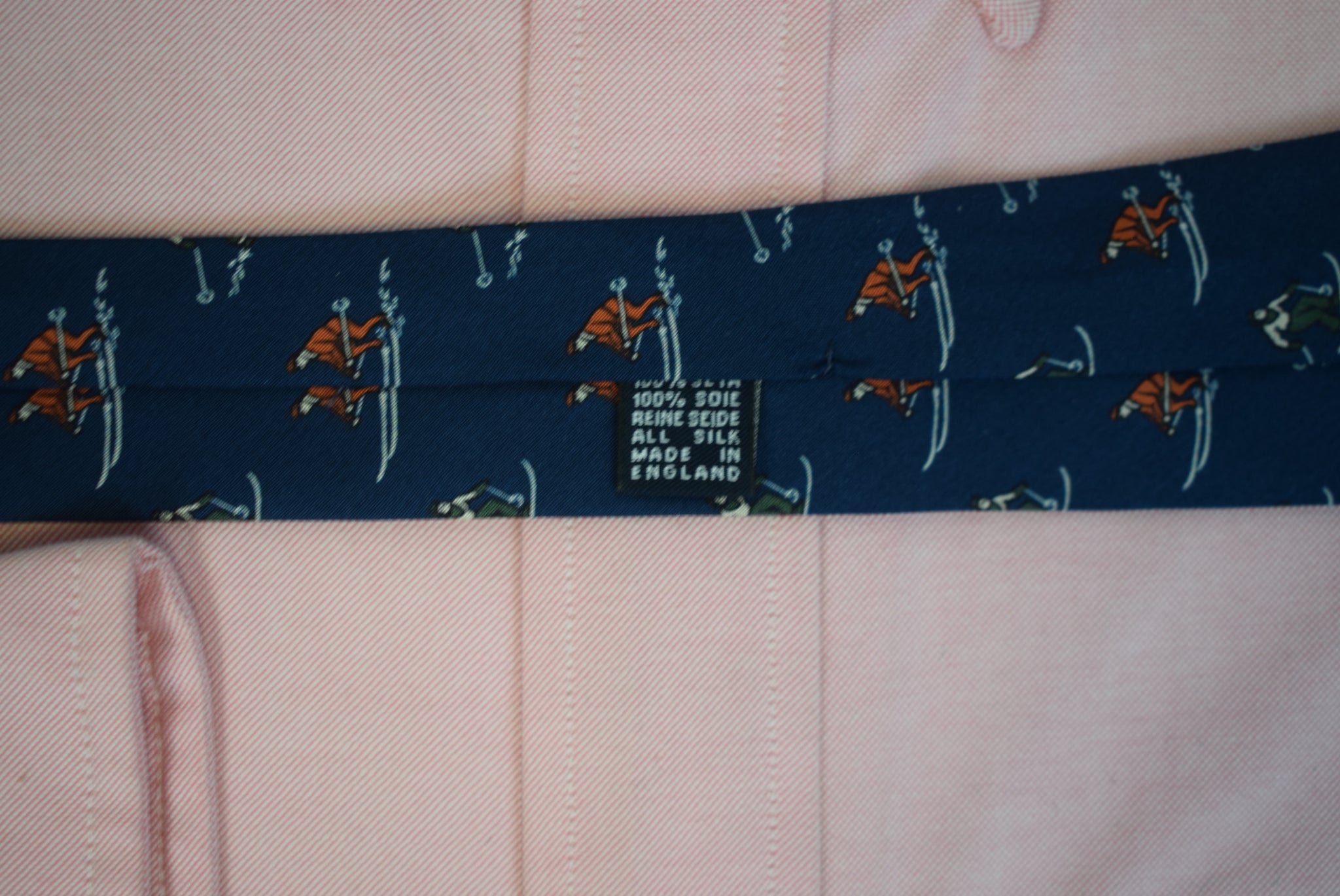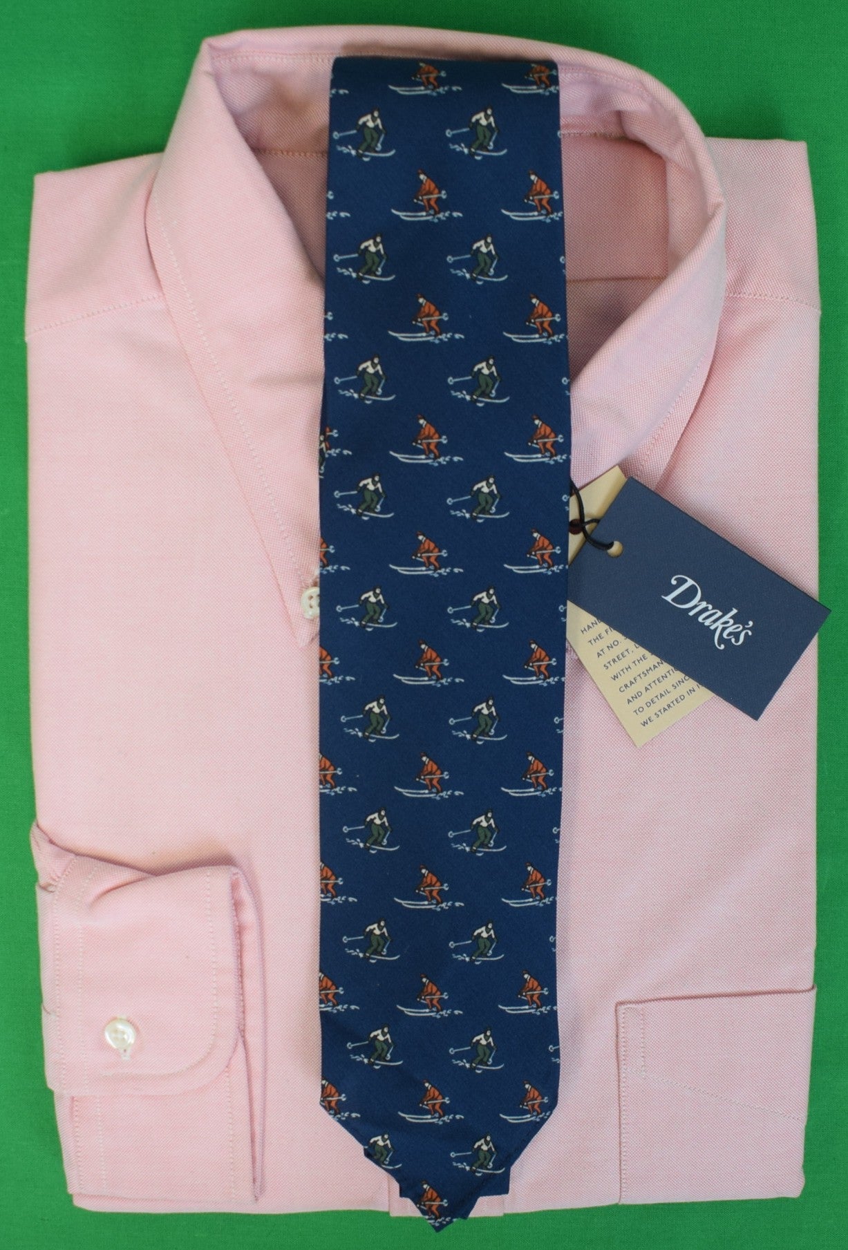 Drake's London English Navy Silk w/ Red/ Green Skier Print Club Tie (NWT)