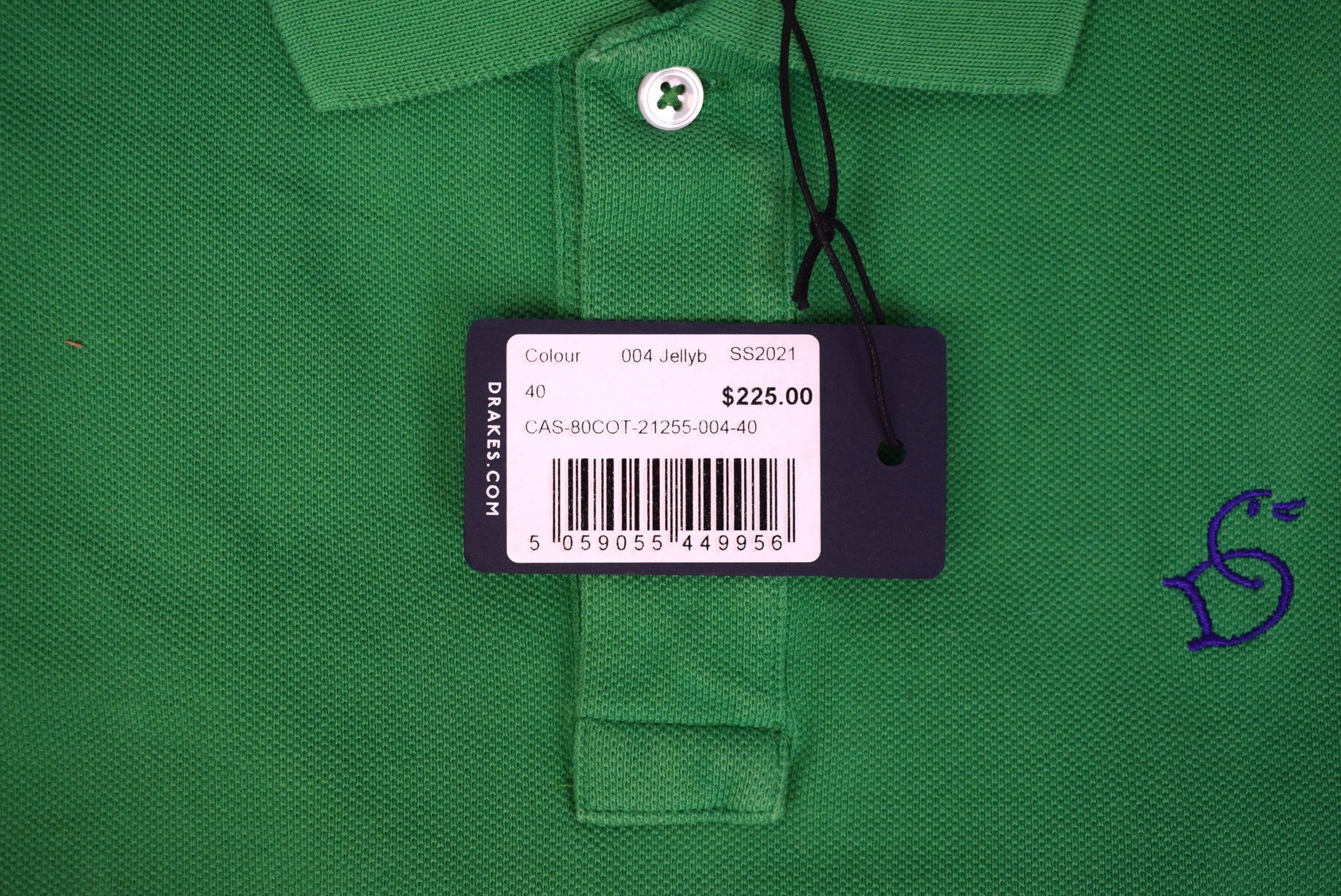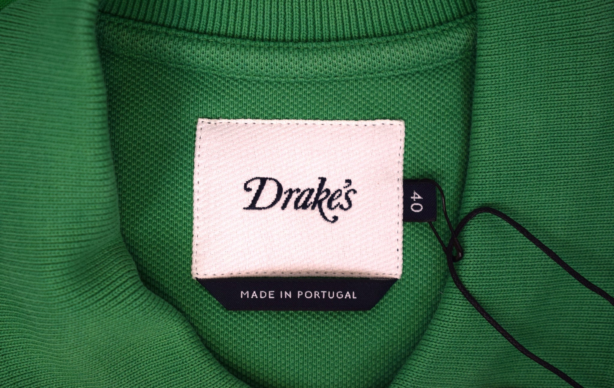 Drake's London Kelly Green D Monogram Pique Polo Tennis Shirt Sz 40