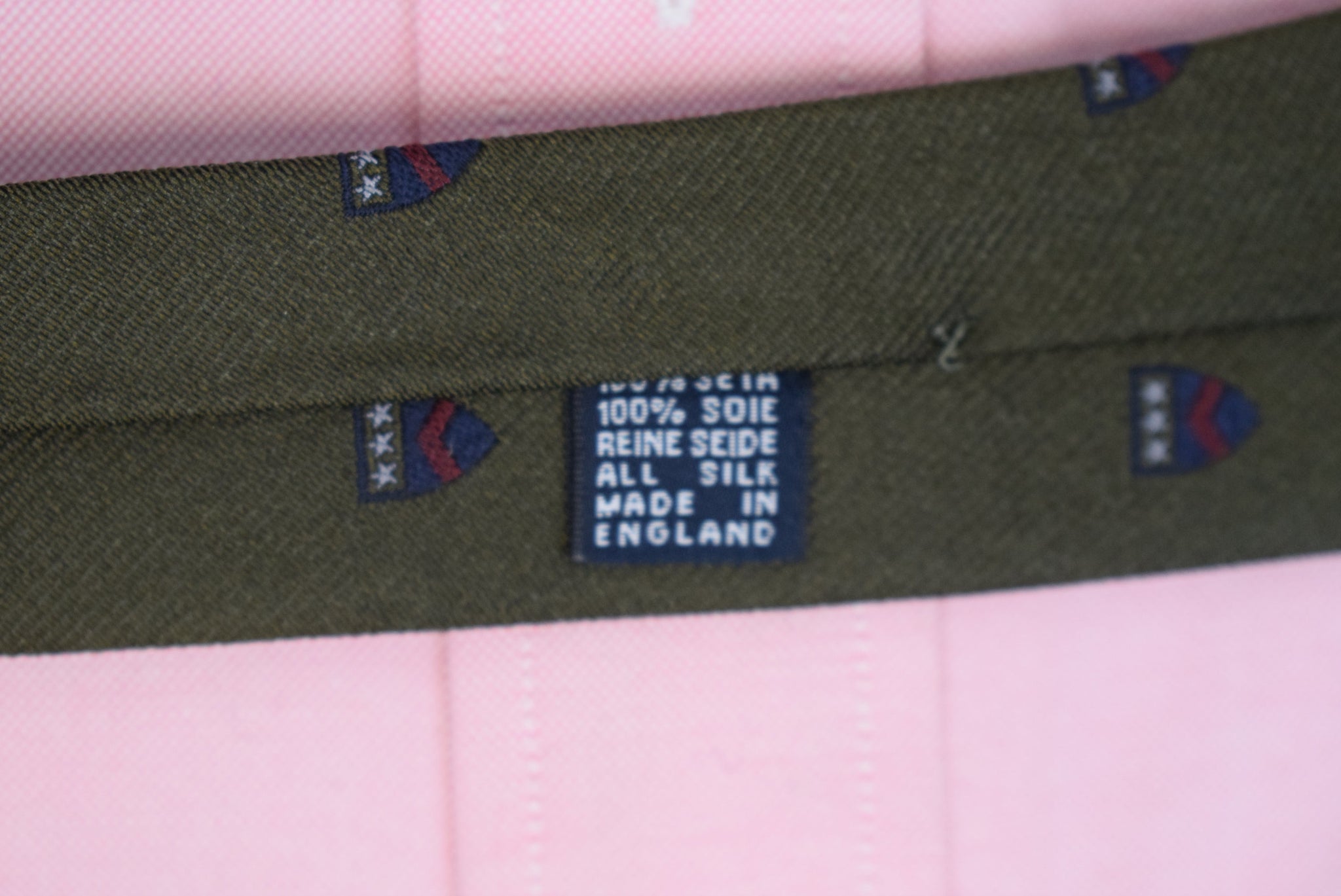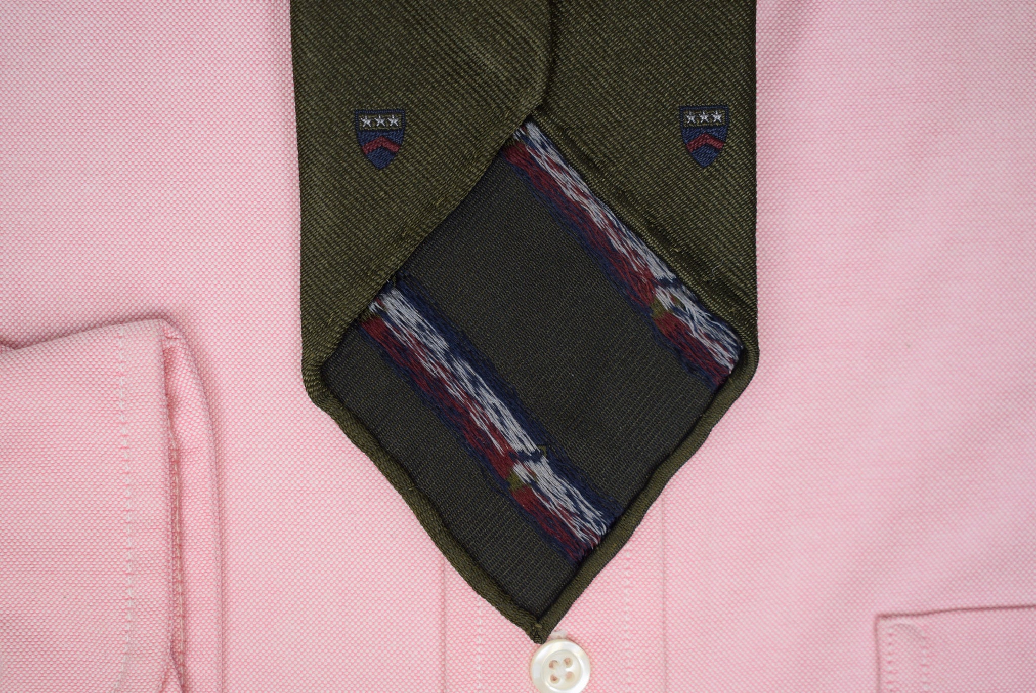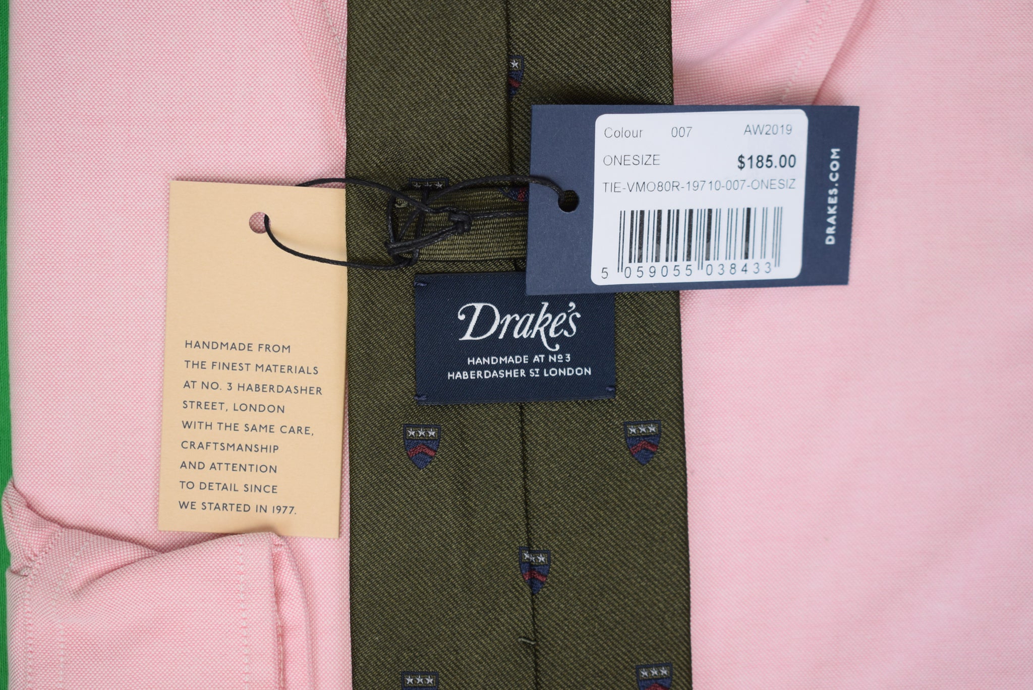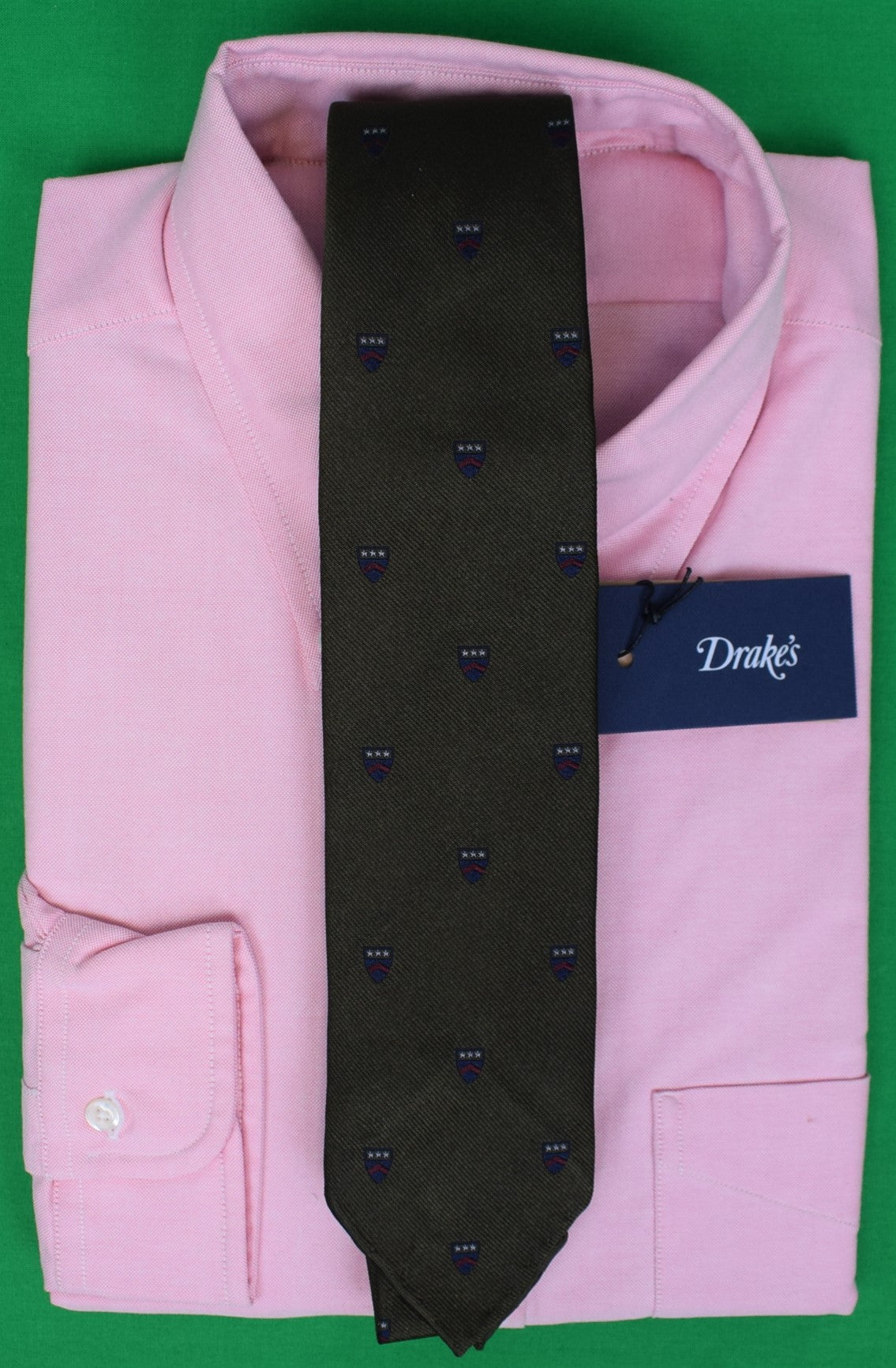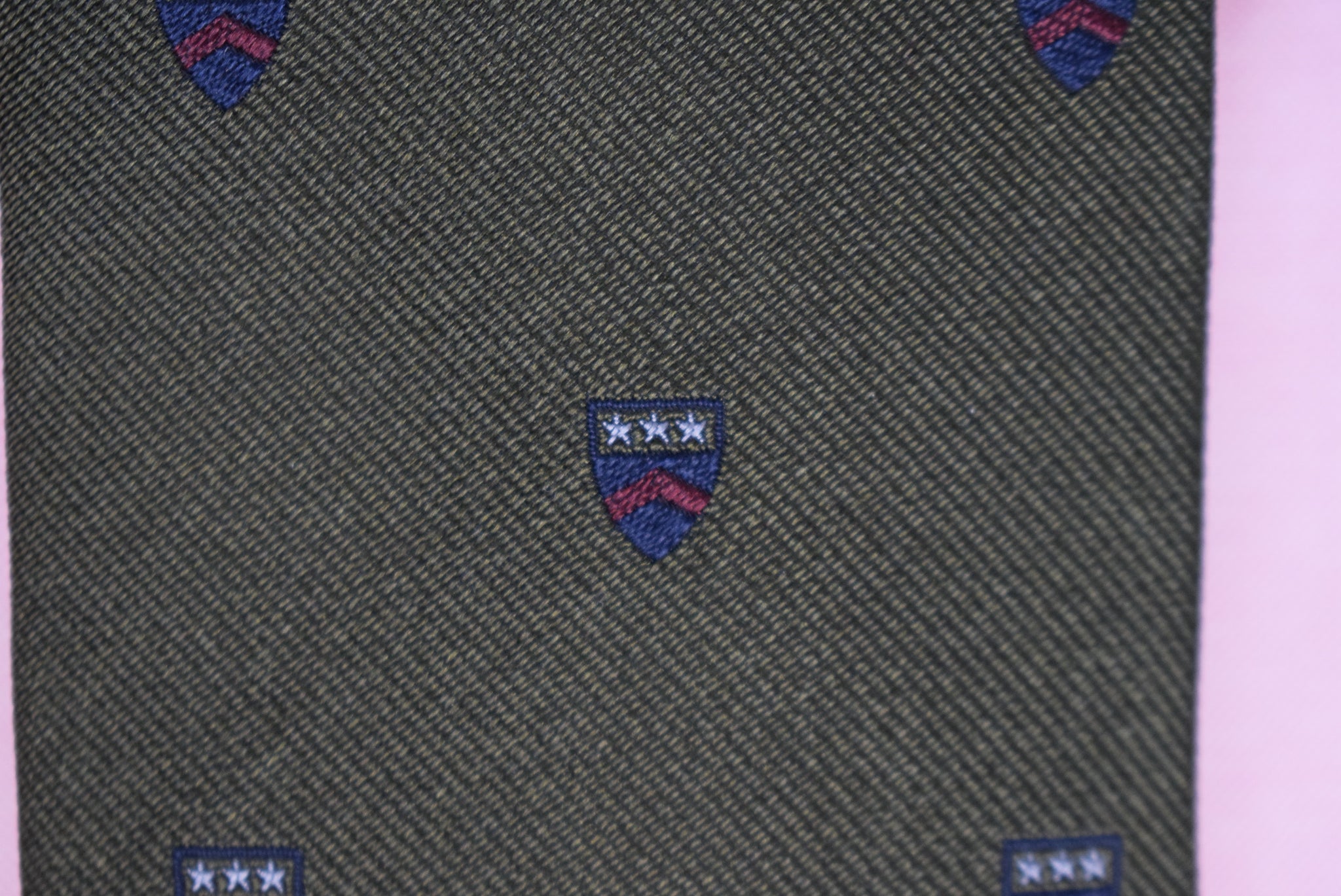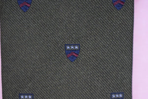 "Drake's Made In England Dark Olive Heraldic Shield Crest Silk Club Tie" (NWT)