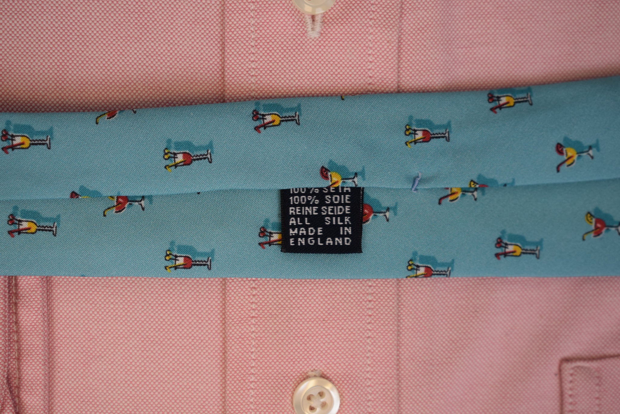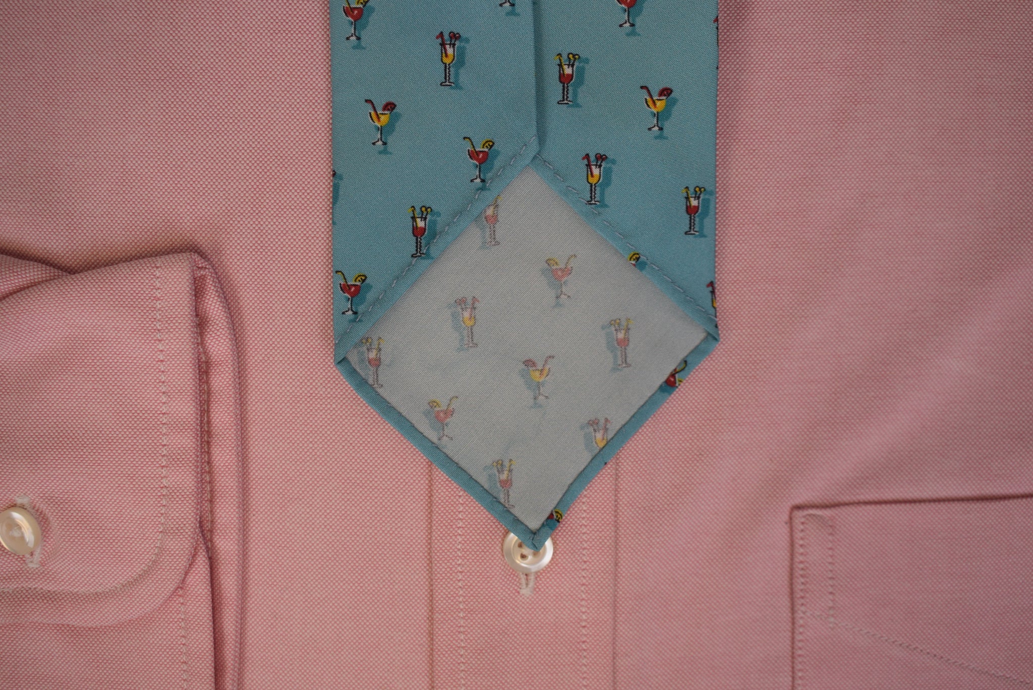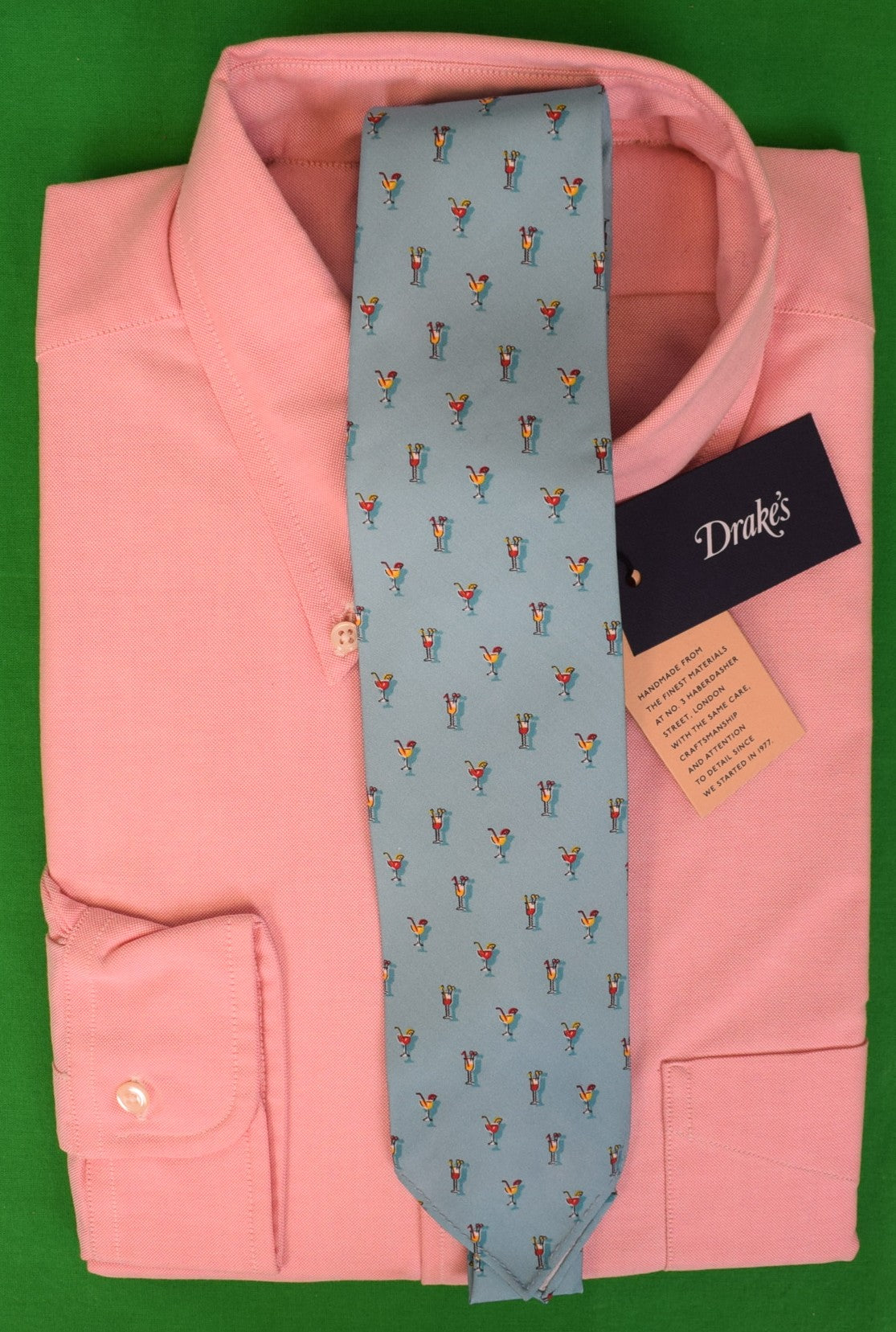 Drake's Turq Blue English Silk Tie w/ Cocktail Motif (NWT)