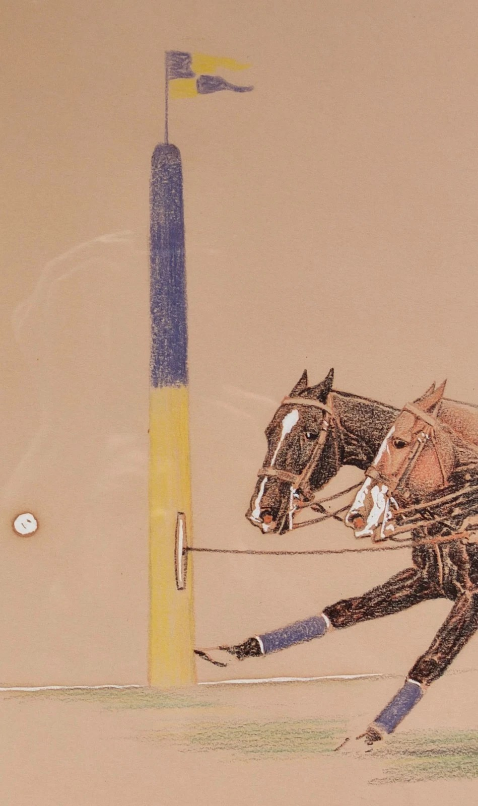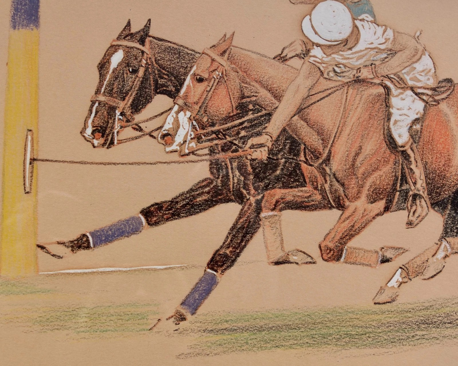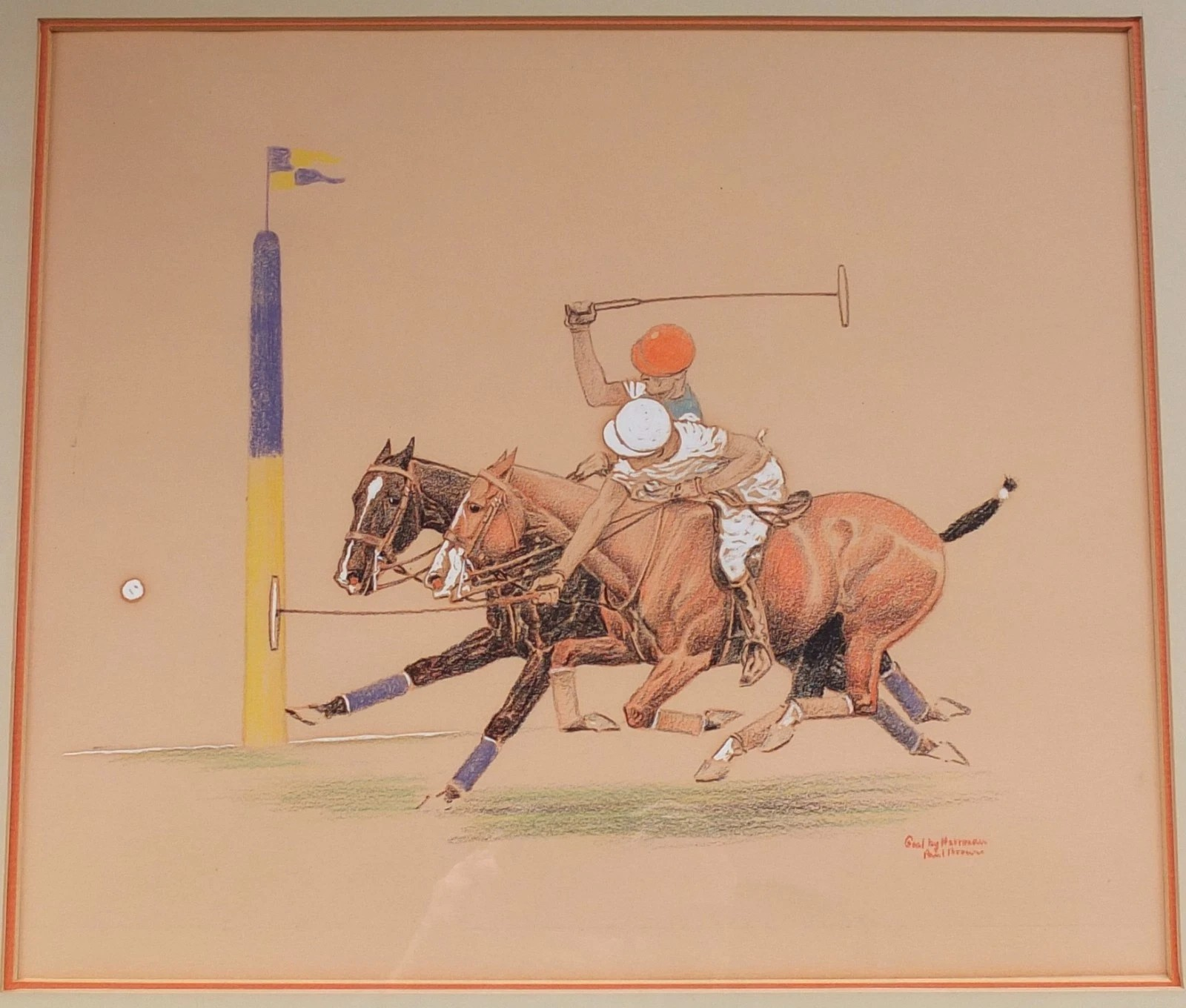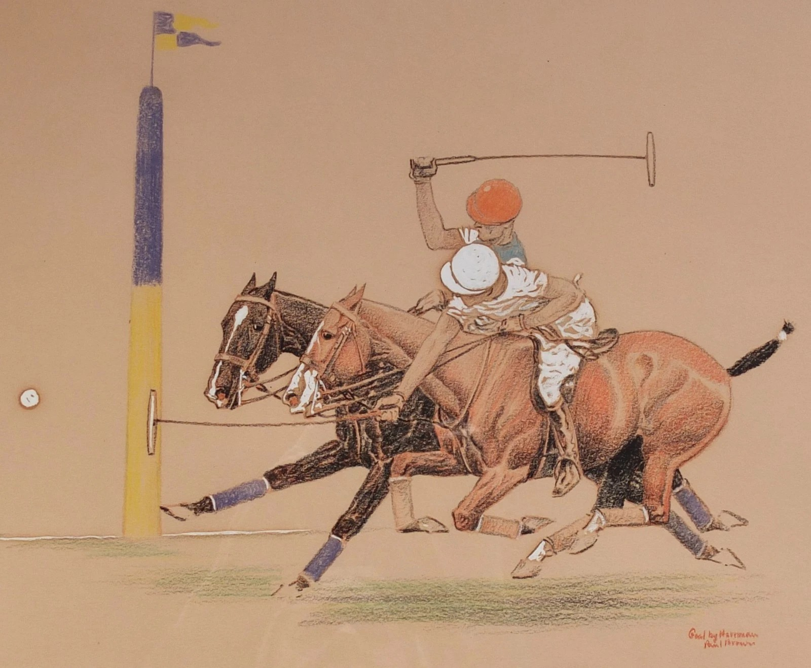 Artist: "Paul Desmond Brown (1893-1958) was an American illustrator of equestrian subjects although he was never formally trained as an artist.  He is primarily known for his paintings, drawings and sketches of horses and equestrian sports.  He is also well-known for his over three decades of illustrations for Brooks Brothers catalogs including more than one-thousand drawings.  These illustrations made him a major influence on the image of urban males in twentieth-century America."
