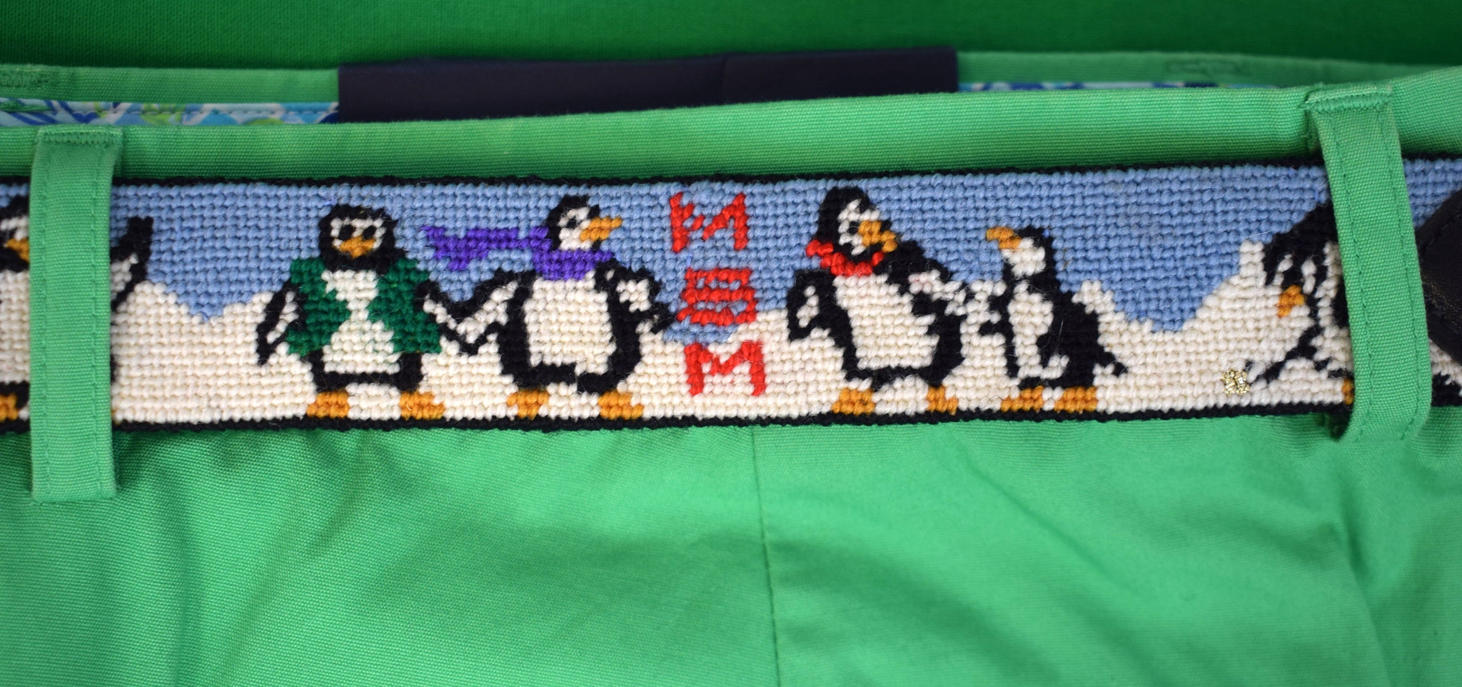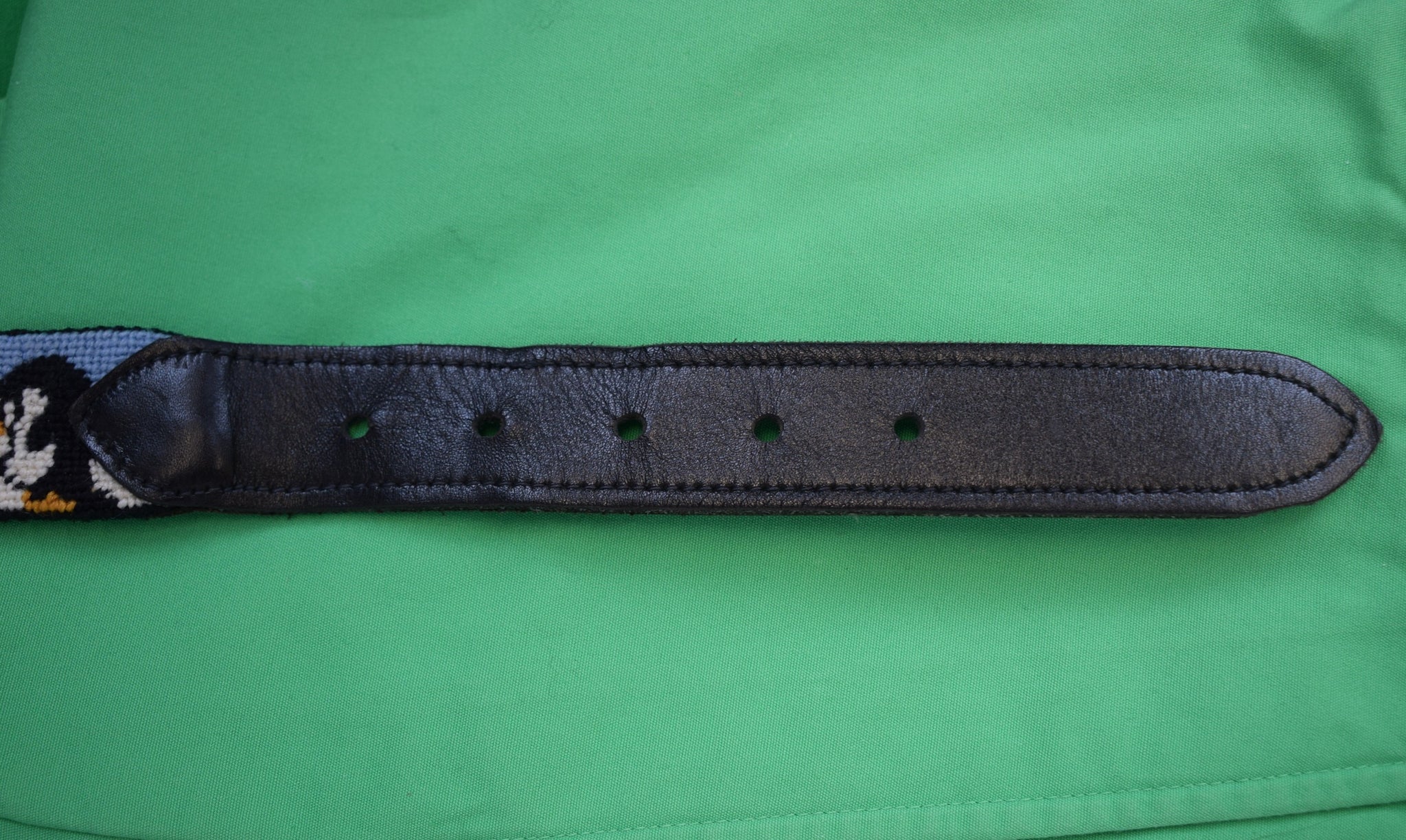 Hand-Needlepoint Belt w/ Penguin Motif Sz 38