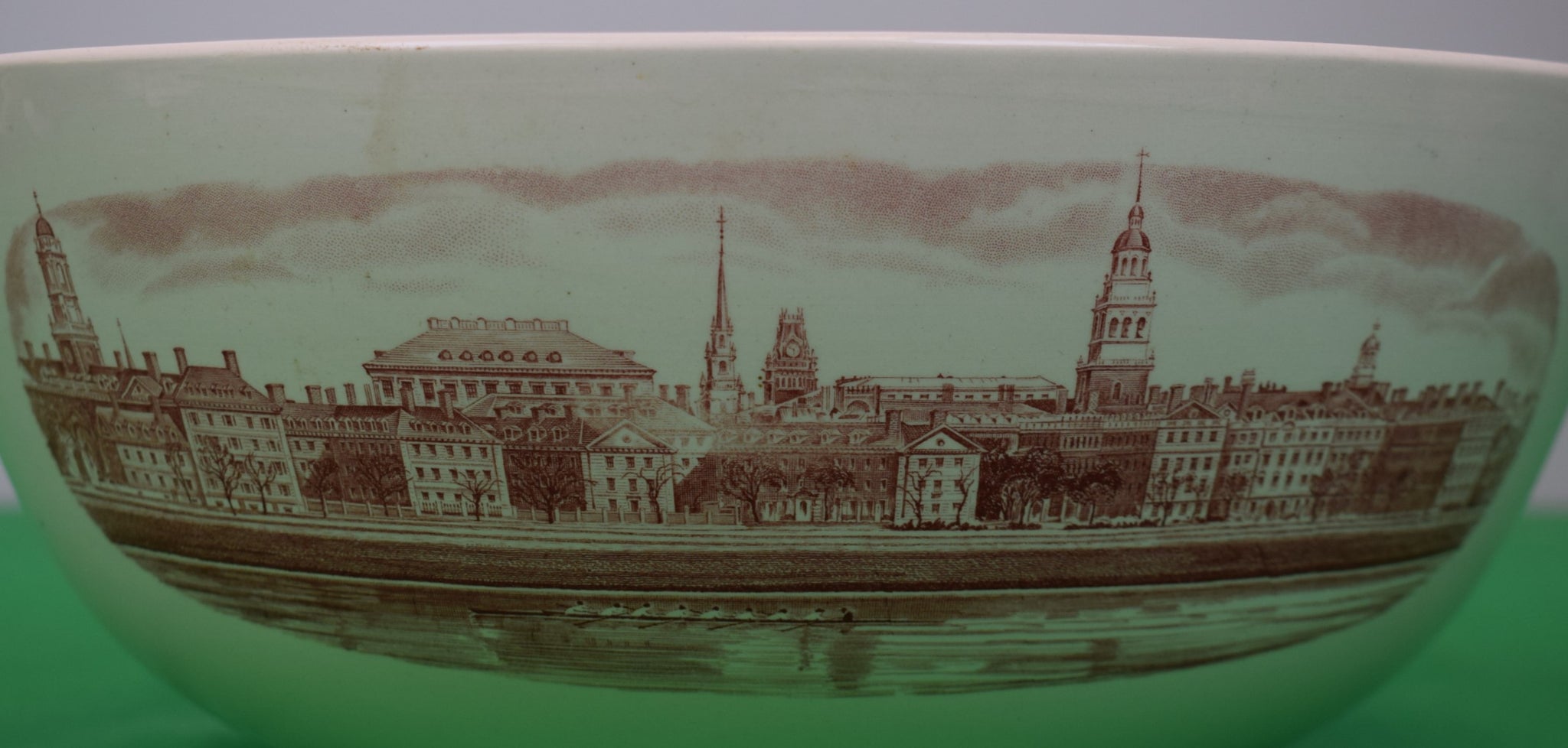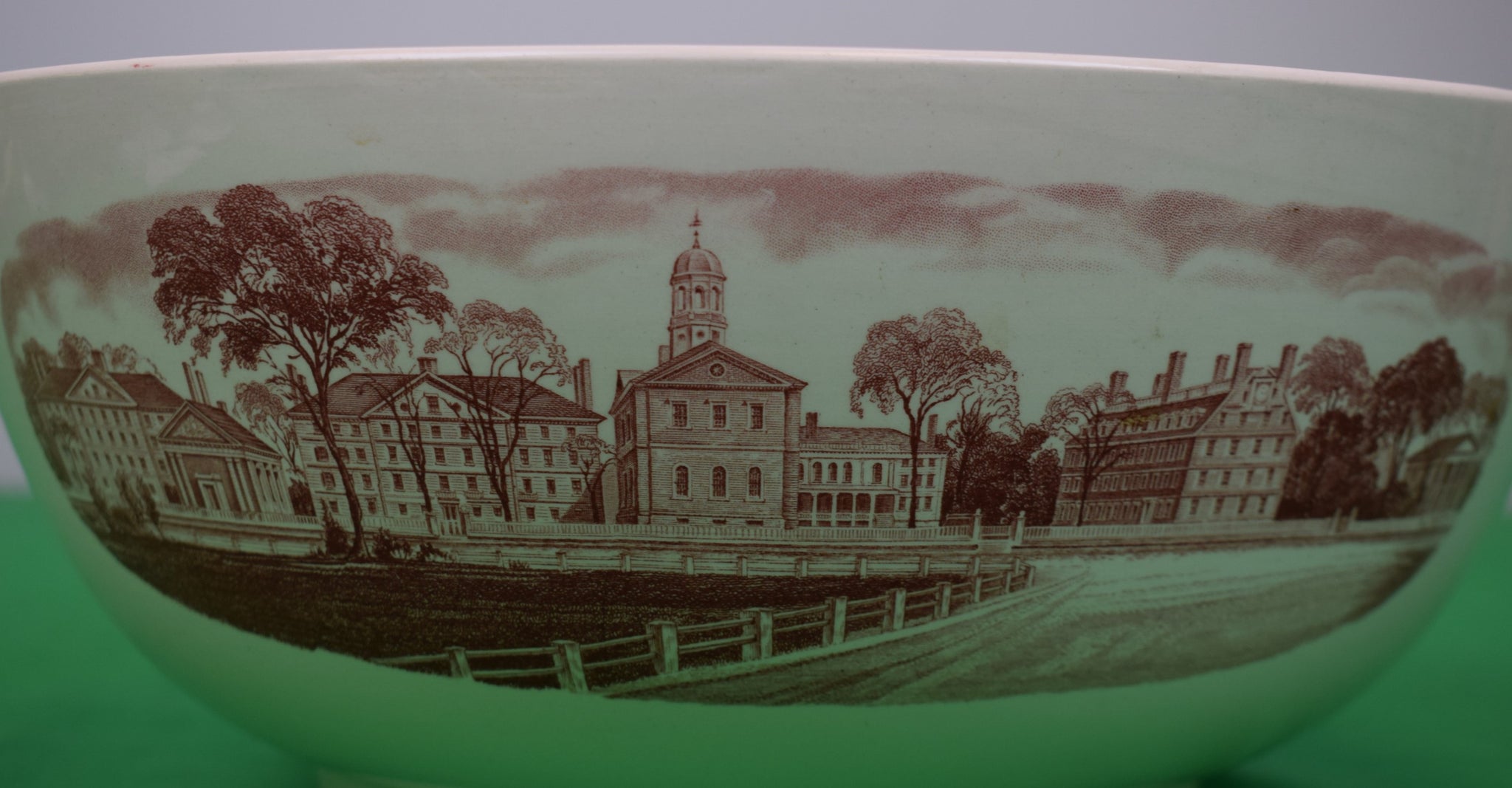 w/ red transfer-decoration of Harvard Yard buildings and Harvard College coat-of-arms