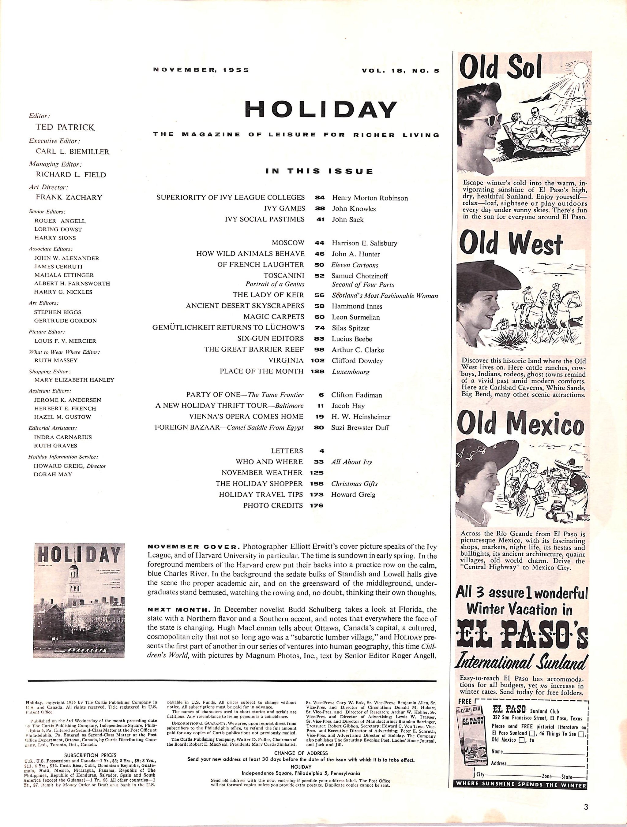 "Holiday Magazine: The Ivy League Colleges" November 1955 (SOLD)