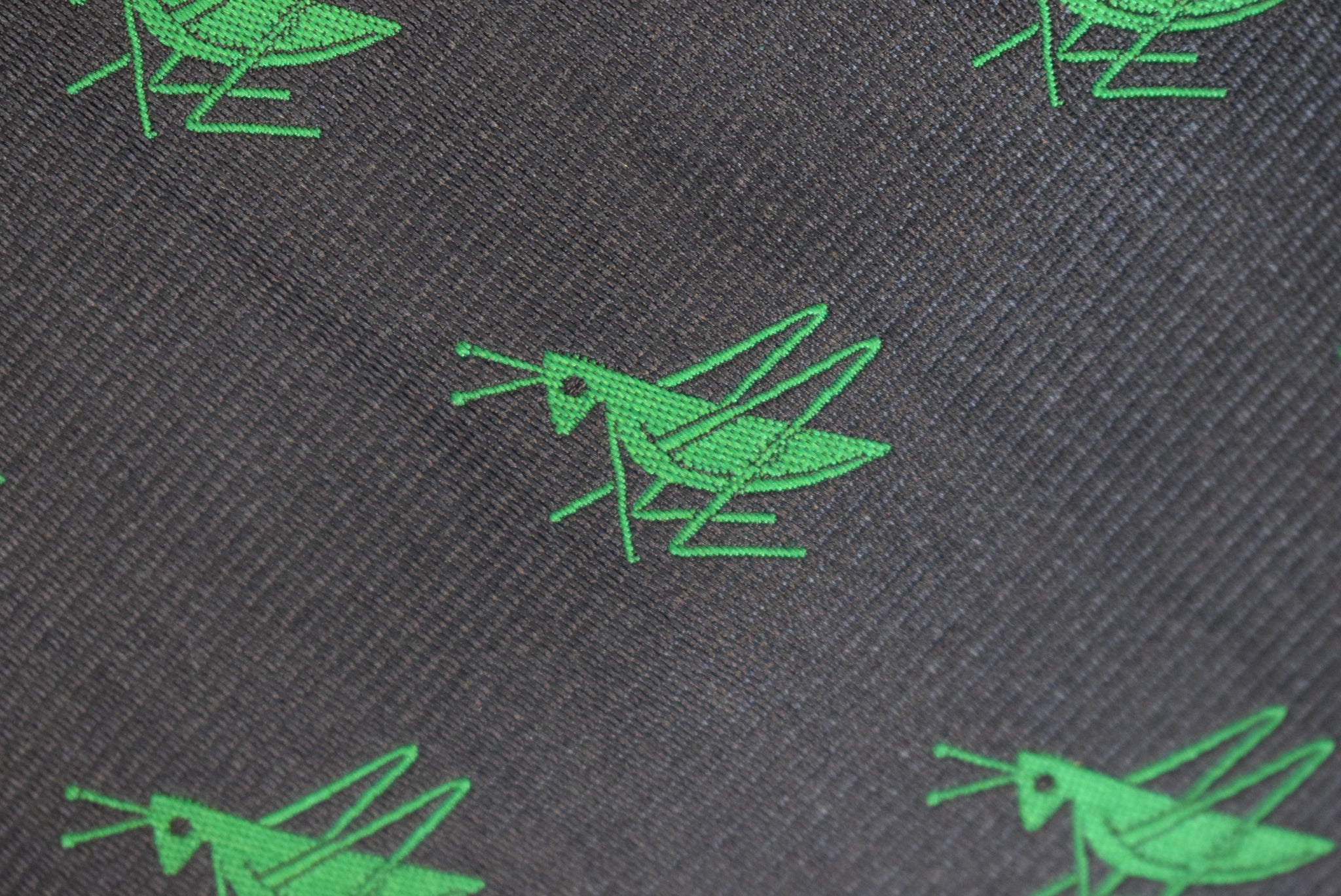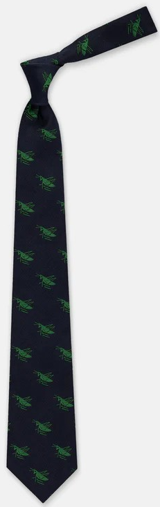 As Richard Press, grandson of Jacobi (J.) Press, himself, tells it, “The Grasshopper was our signature emblematic tie at our New Haven store near the Yale campus. A tale circulated of a Smith coed asking her Yalie date if the grasshopper motif tie he was wearing signified membership in a club.  Thinking quickly, the nimble-witted Eli responded that yes, indeed: he had been ‘tapped’ by the Grasshopper.”
