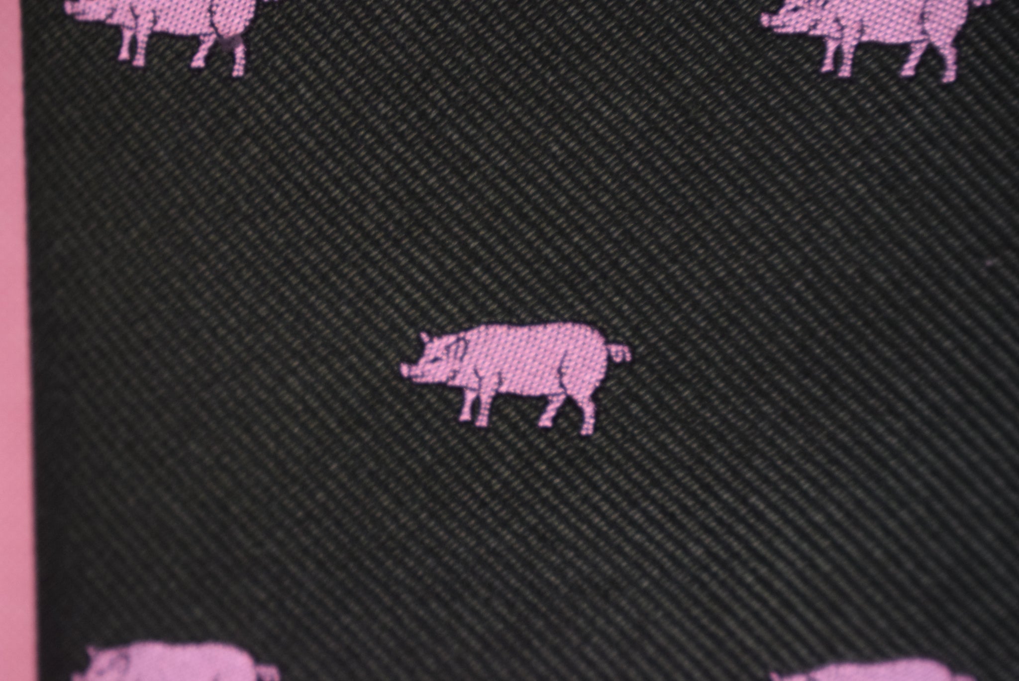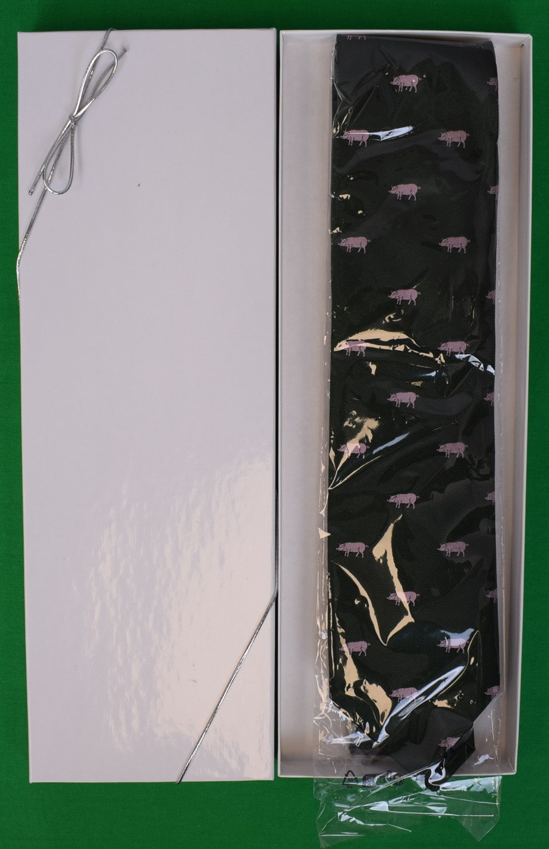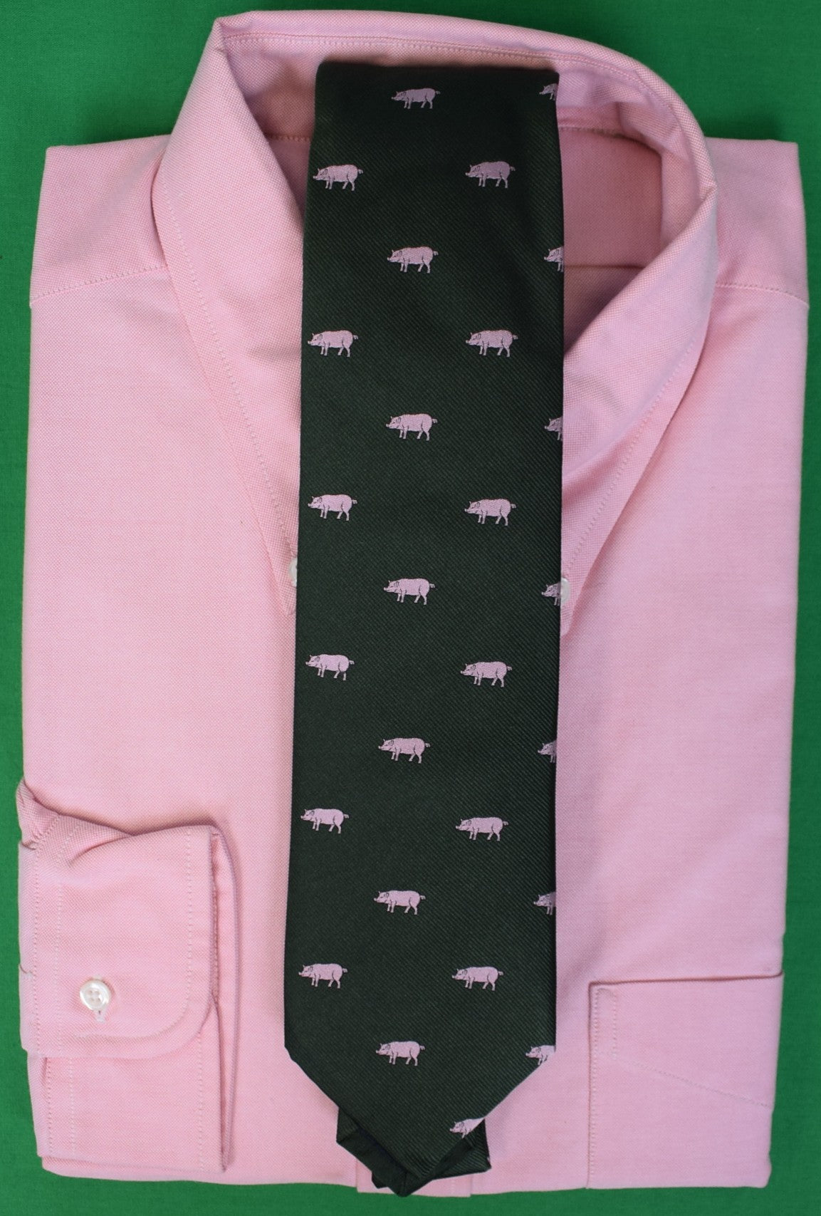 J. Press Made-in-Ireland Green w/ Pink Pigs Club Tie (NWT & Gift Box)