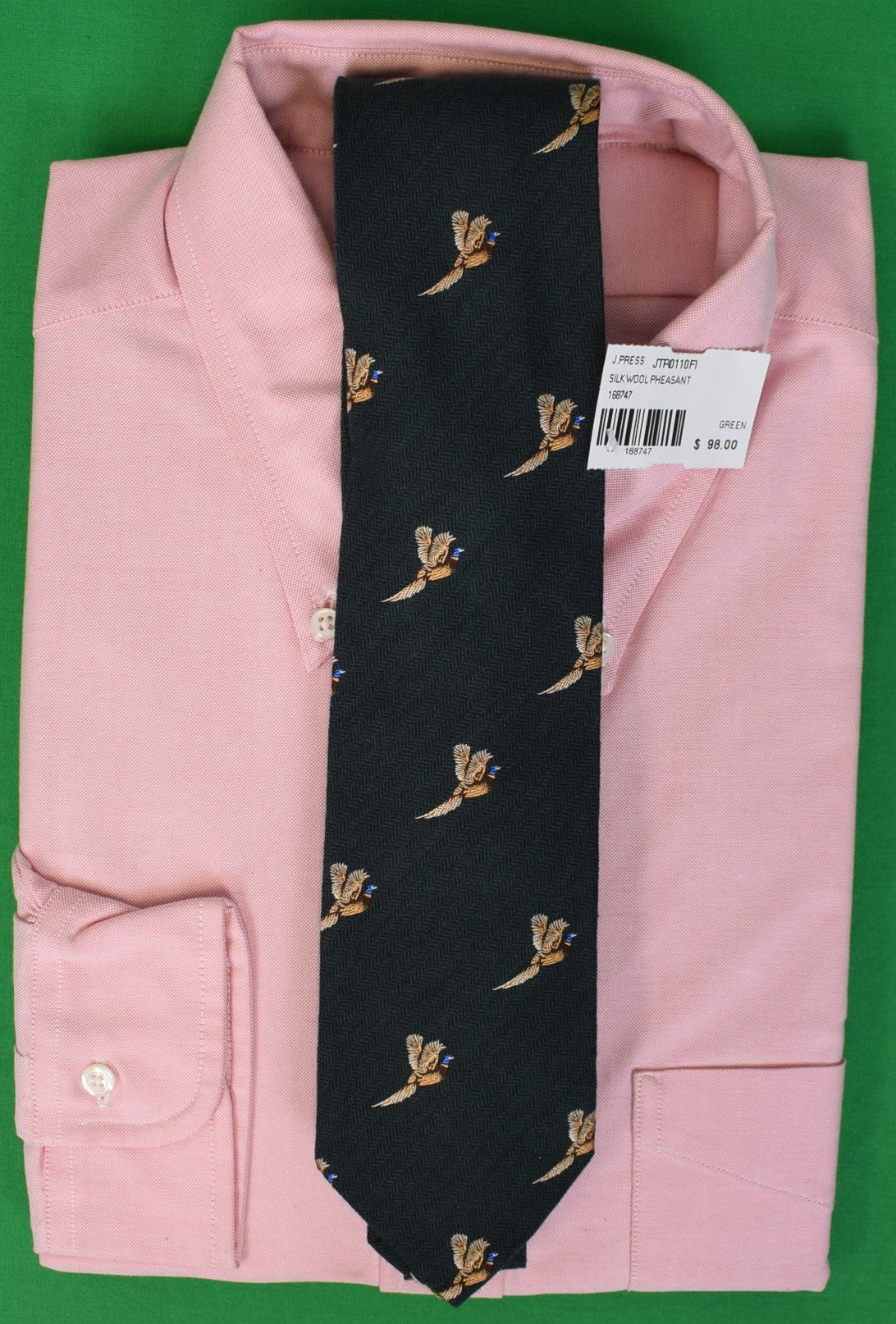 "J. Press Made-in-UK Green Flying Pheasant Wool/ Silk Tie" (NWT)