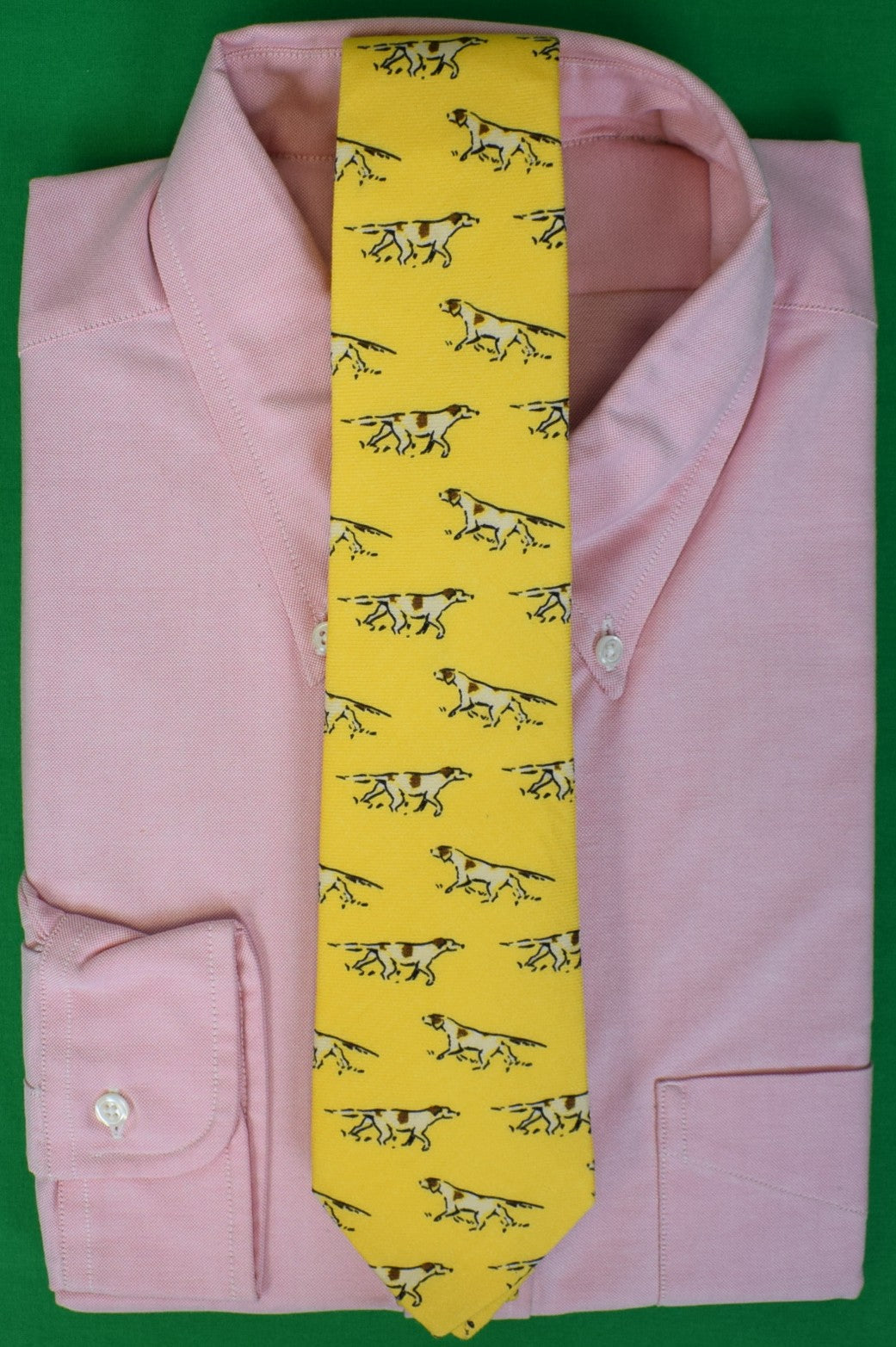 "J. Press Yellow Challis English Pointer Dog Print Tie" (NWT)