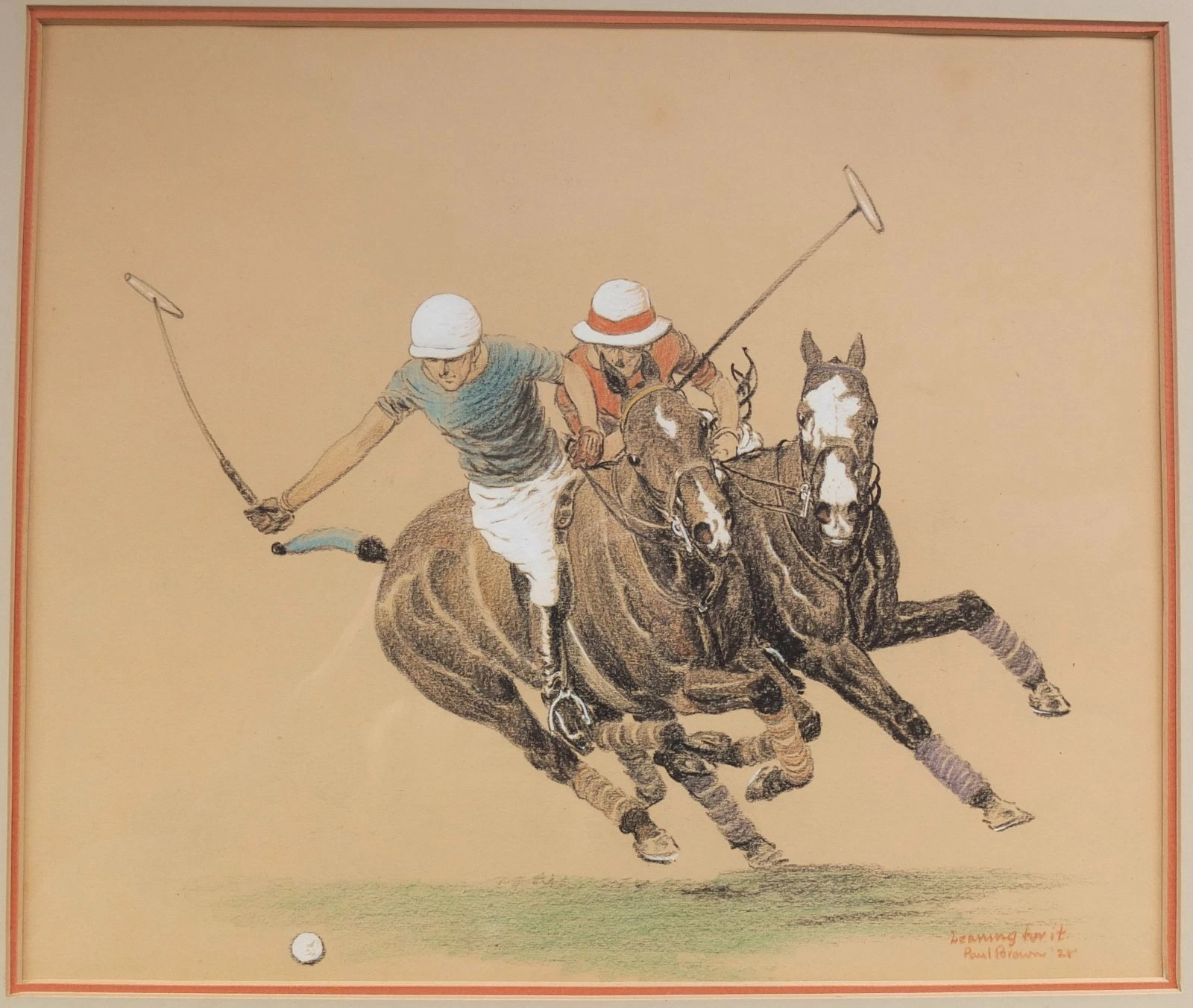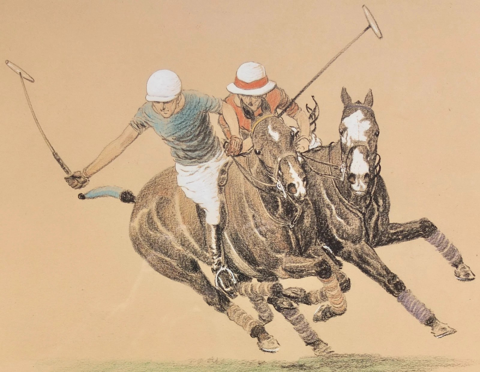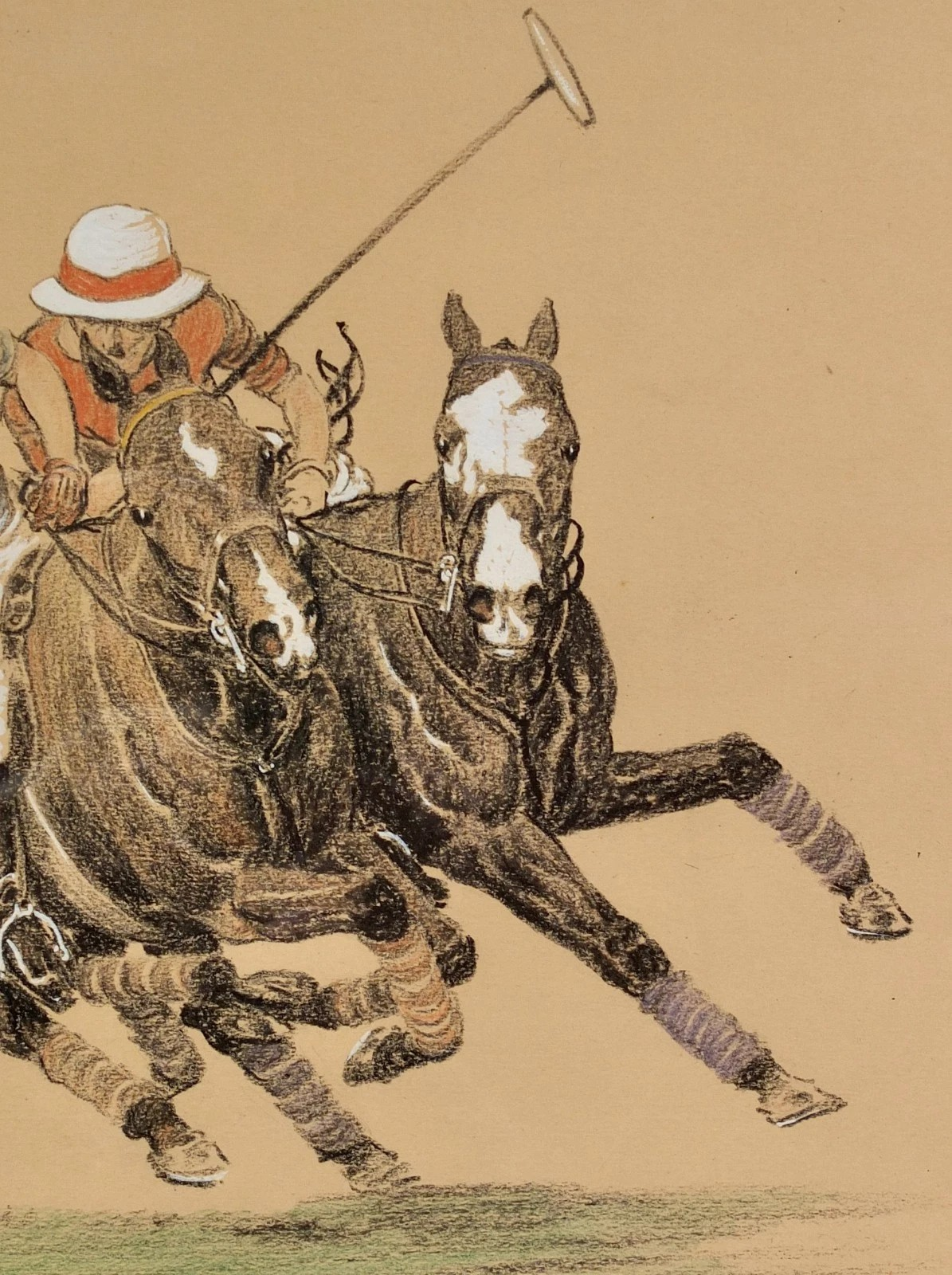 Artist: "Paul Desmond Brown (1893-1958) was an American illustrator of equestrian subjects although he was never formally trained as an artist. He is primarily known for his paintings, drawings and sketches of horses and equestrian sports. He is also well-known for his over three decades of illustrations for Brooks Brothers catalogs including more than one-thousand drawings. These illustrations made him a major influence on the image of urban males in twentieth-century America."