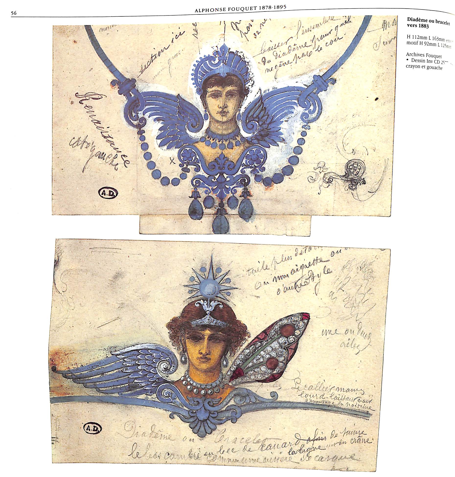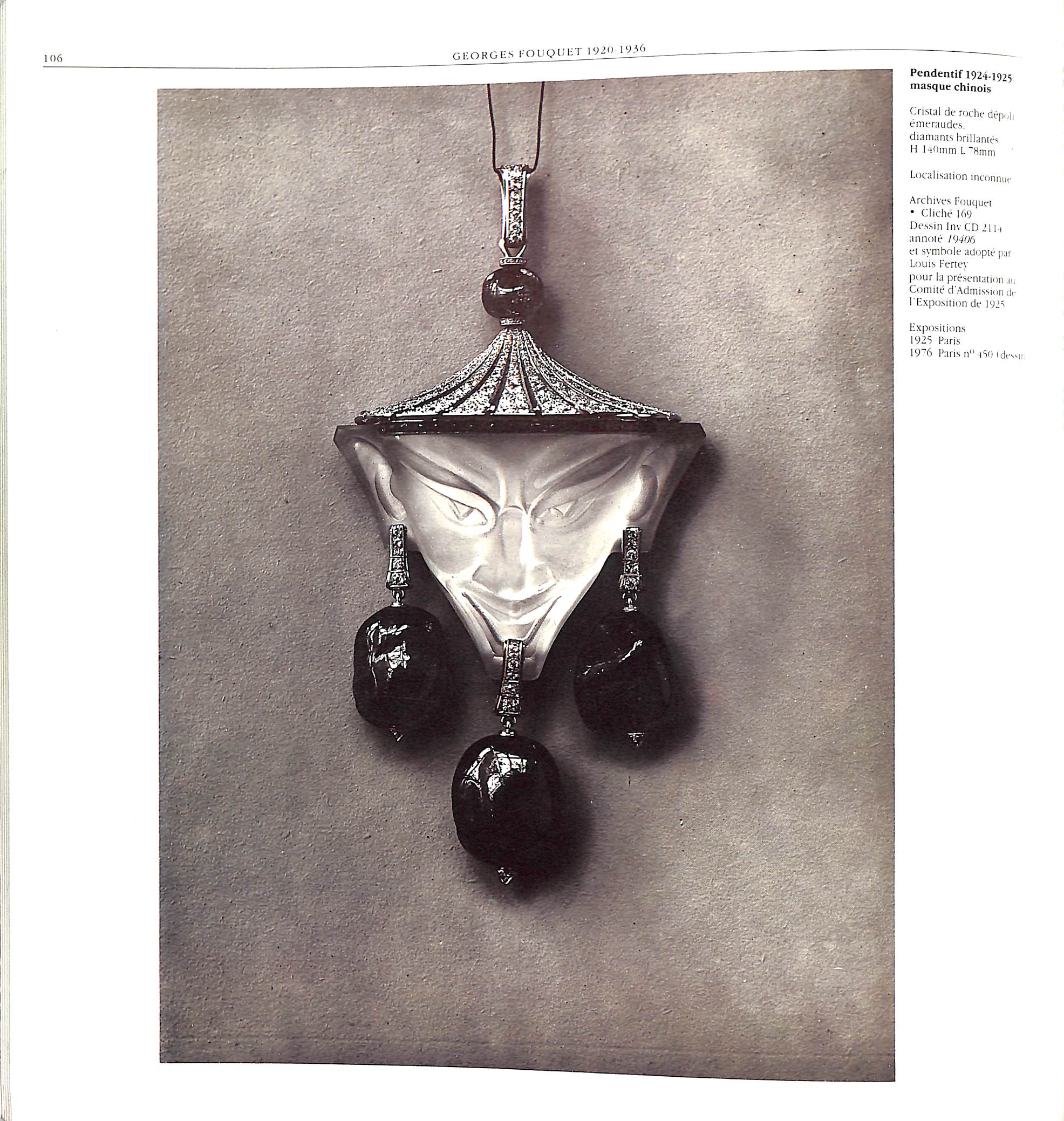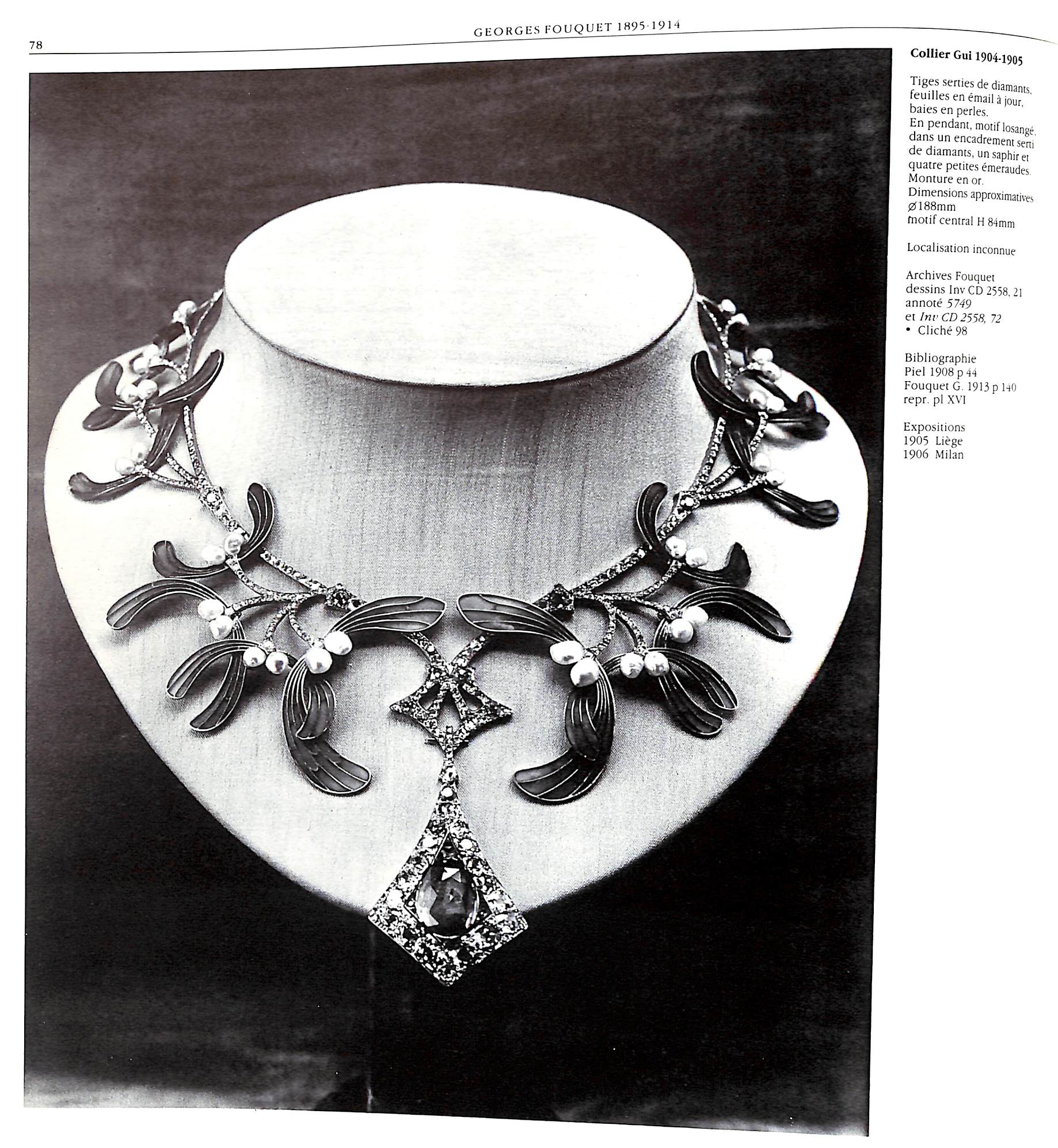 This catalog was prepared to accompany the exhibition in Paris at the Musee des arts decoratifs in 1983. Marie-Noel de Gary curated the exhibition and along with Evelyne Posseme wrote the catalog essays and entries. Separate chapters on each of the Fouquets: Alphonse Fouquet director Maison Fouquet 1860-1895; Georges Fouquet director Maison Fouquet 1895-1936; and Jean Fouquet active in Maison Fouquet from 1925-1960. Illustrated in color and black & white with photographs and drawings.