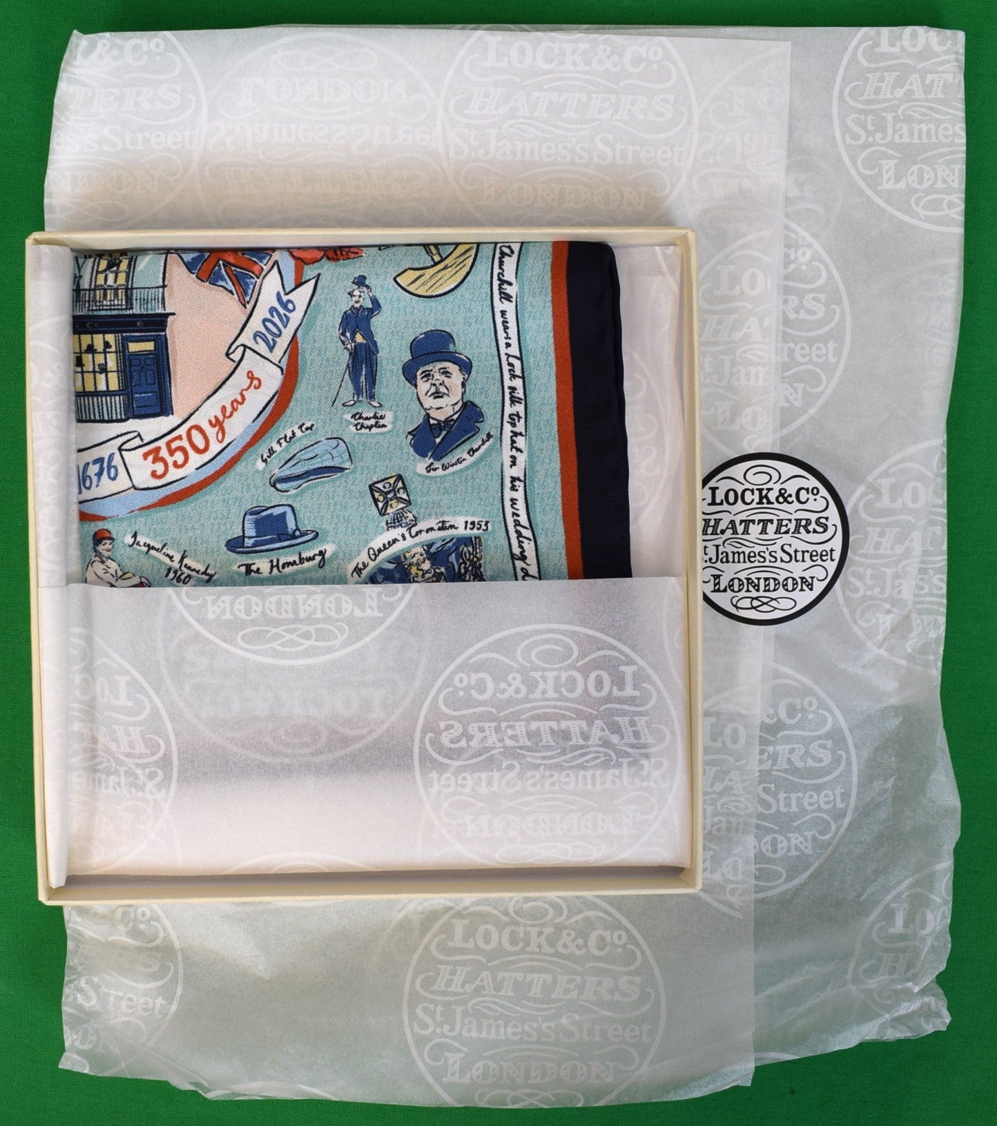 Introducing the 350 Pocket Square, limited-edition commemorative piece created to mark 350 years of Lock & Co. Crafted in 100% silk twill and finished with a hand-hemmed edge, piece celebrates Lock & Co.’s extraordinary heritage.