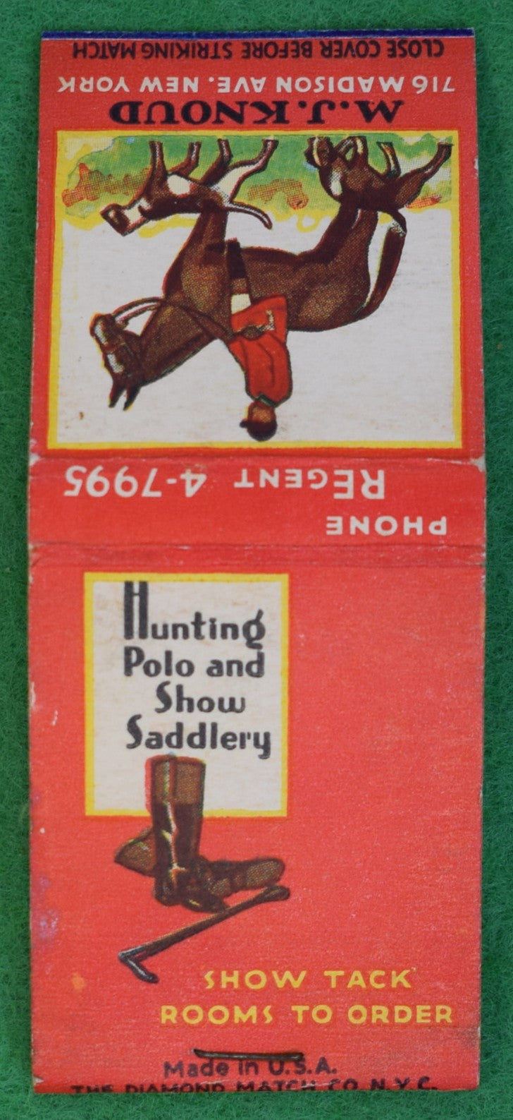 M.J. Knoud Hunting Polo & Saddlery Shop Madison Ave, NYC Matchbook (Unstruck)