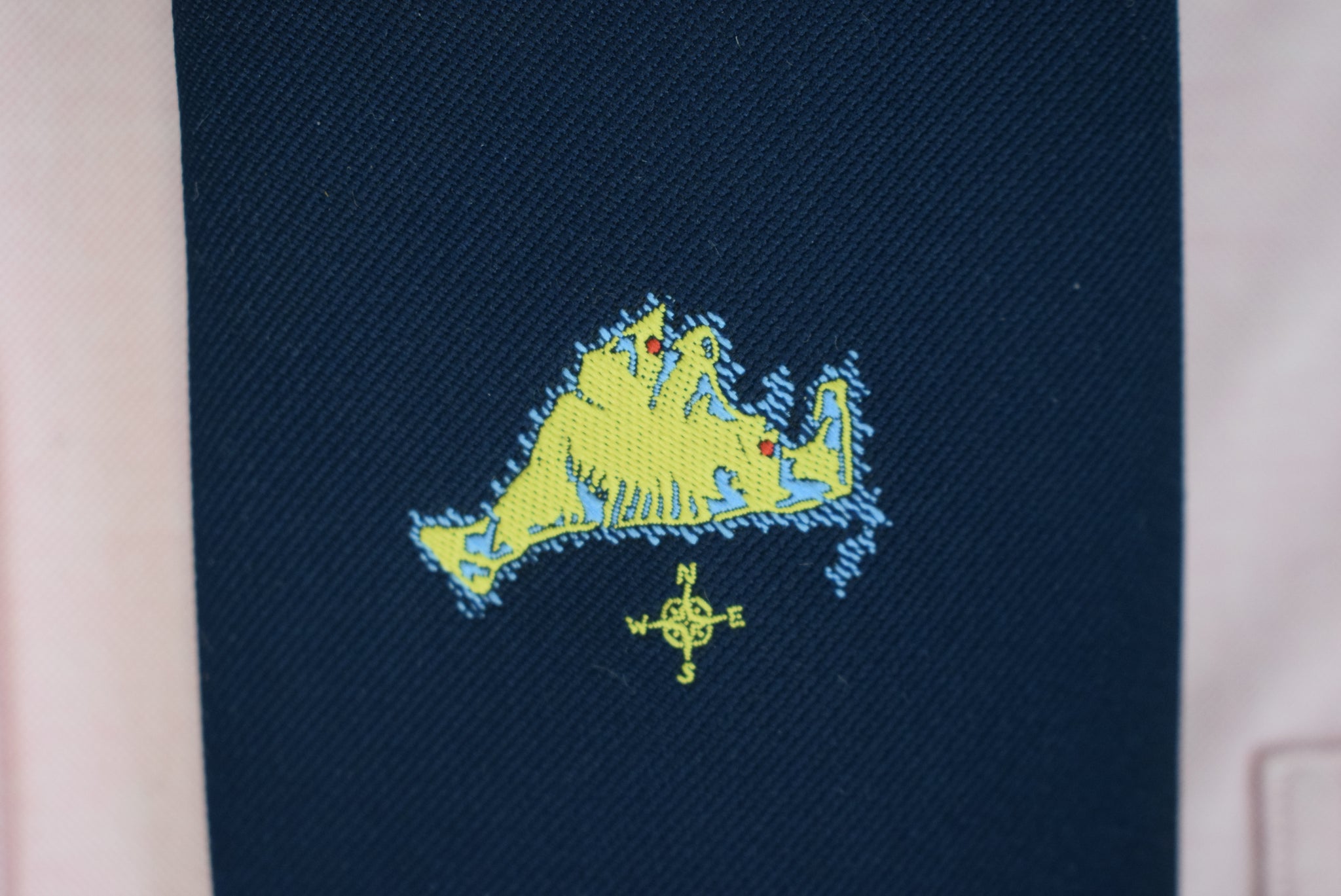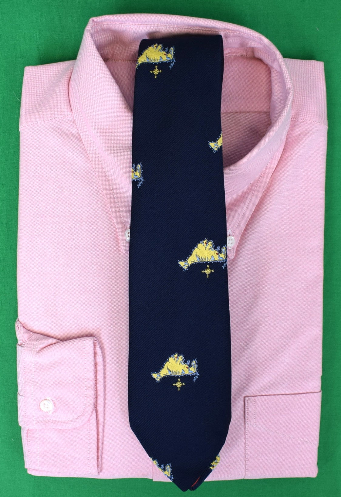 Murray's Toggery Shop Nantucket x Martha's Vineyard Yellow Map w/ Navy Poly Club Tie (NWOT)