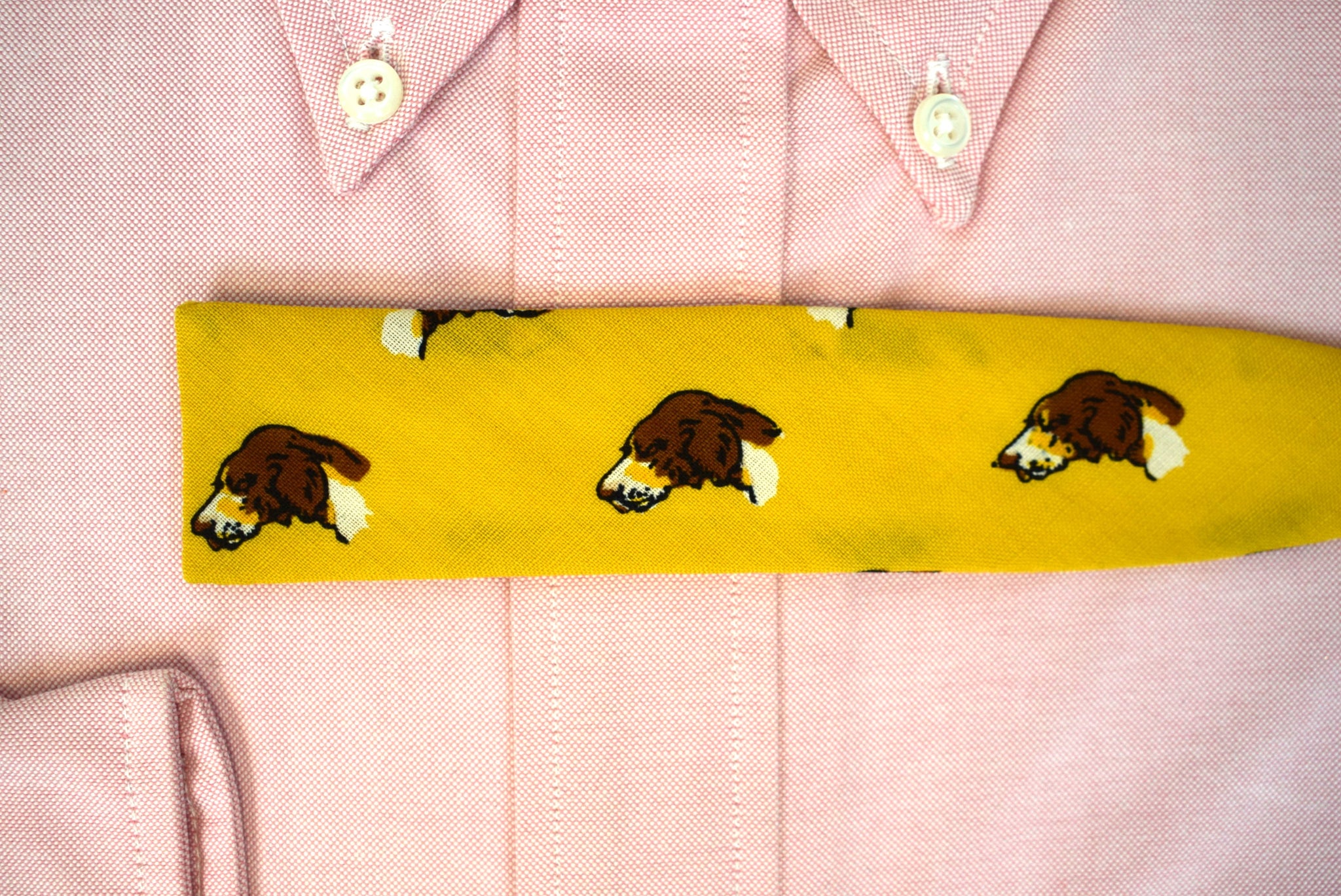 "Mustard Yellow Worsted Challis Bow Tie w/ Foxhound Print"