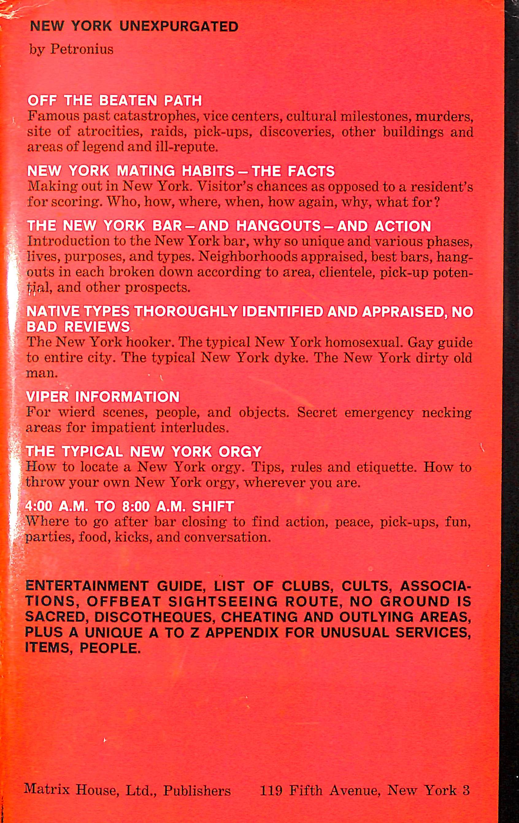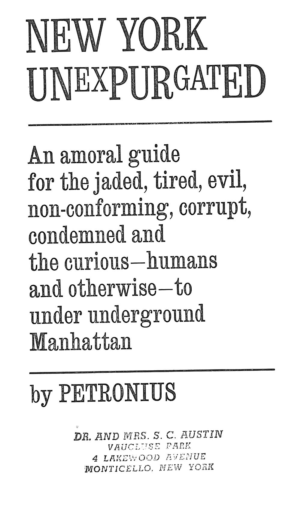 An amoral guide for the jaded, tired, evil, non-conforming, corrupt, condemned, and the curious, humans and otherwise, to under underground Manhattan.