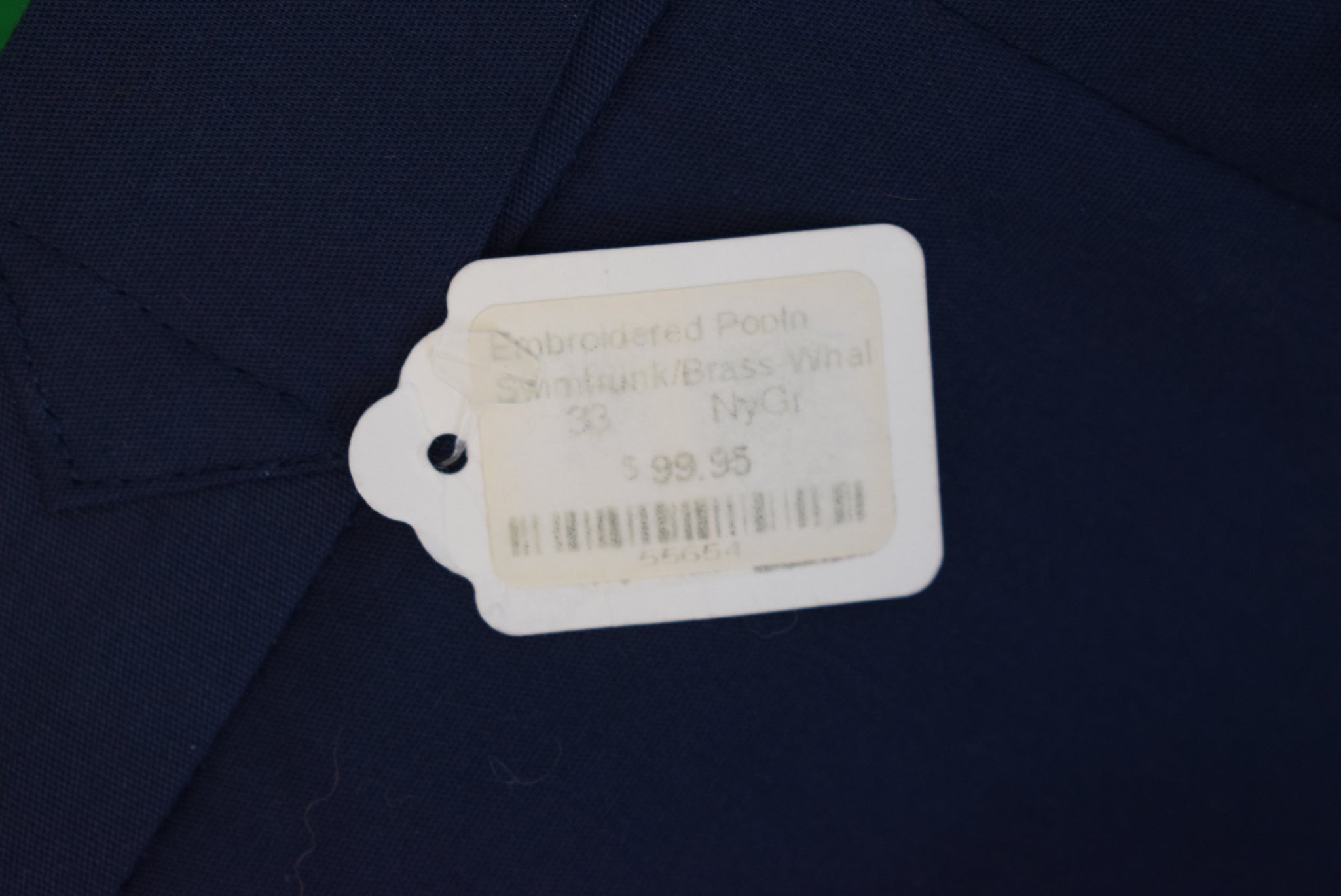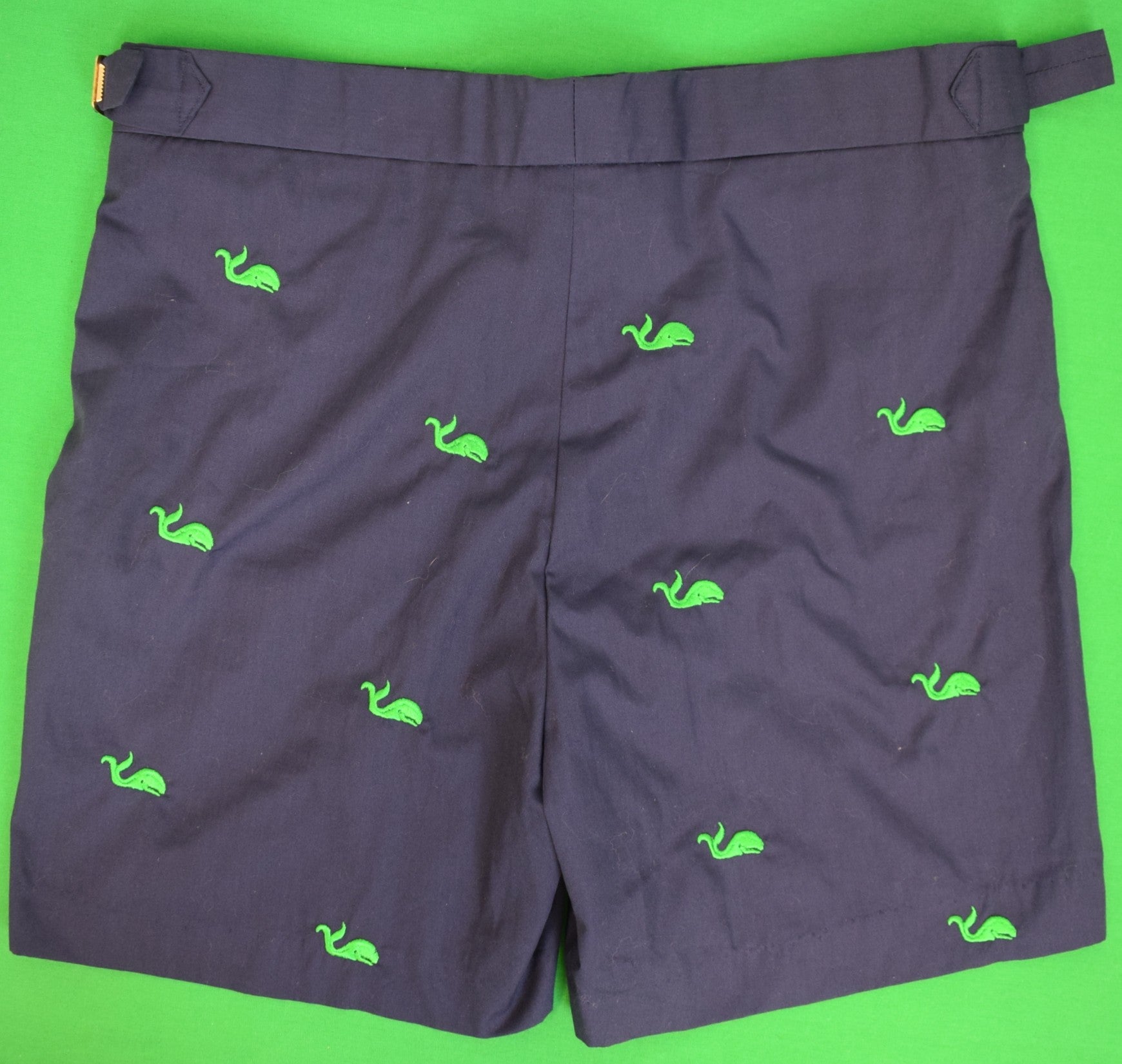 O'Connell's Embroidered Navy Poplin Swimtrunks w/ Kelly Green Whales Sz 33 (NWT)