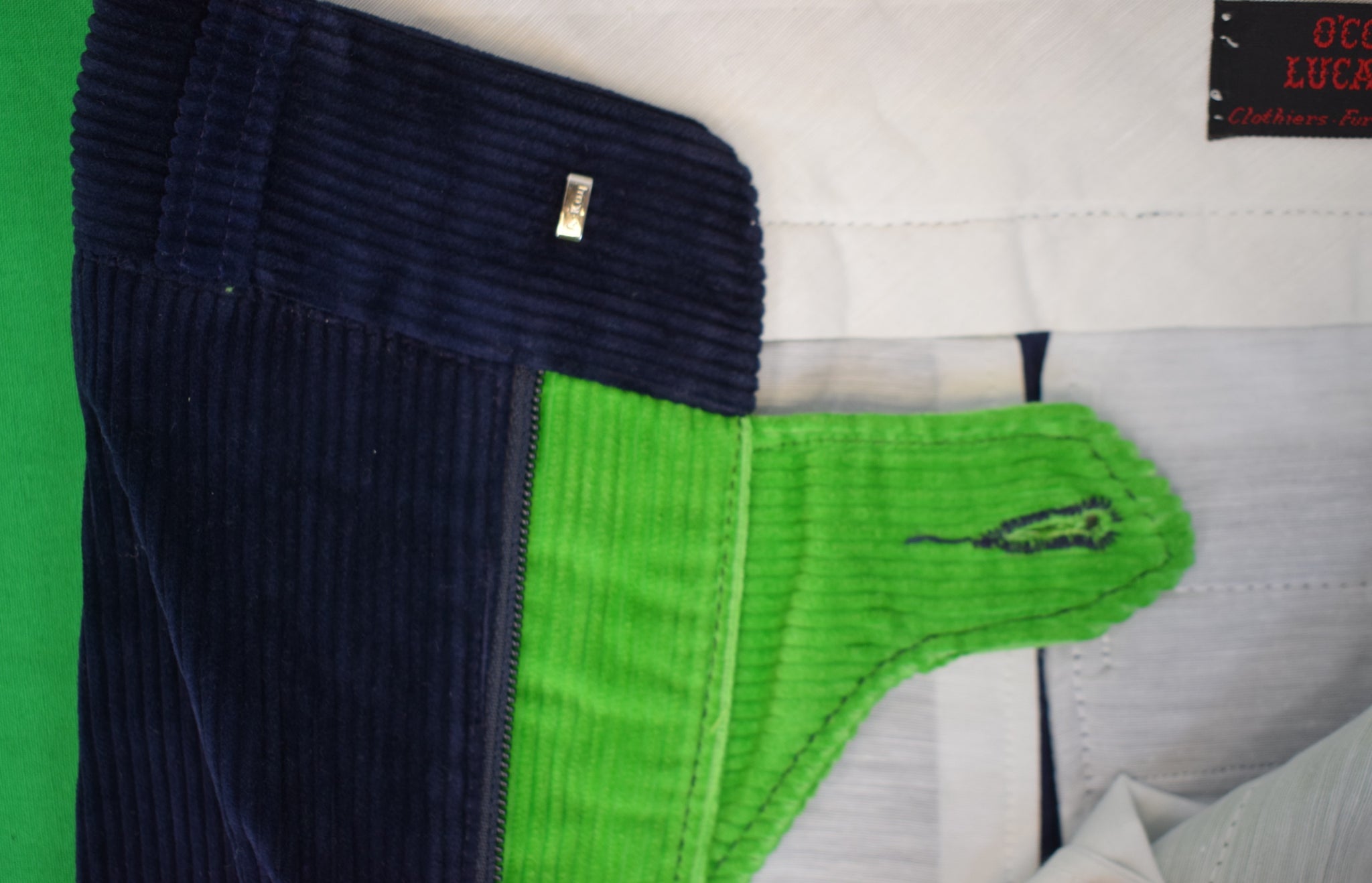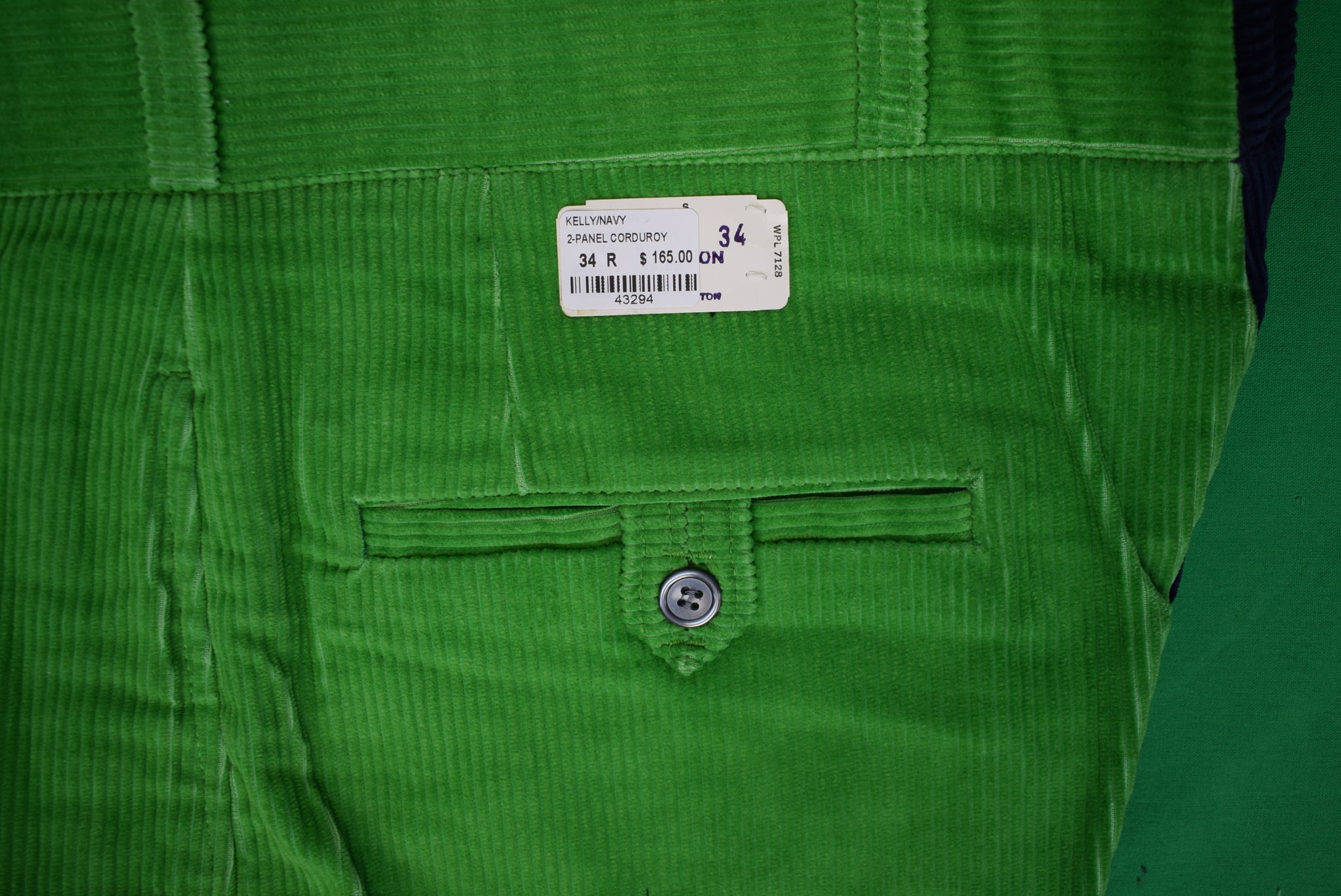 O'Connell's Kelly Green/ Navy Two-Panel Corduroy Trousers Sz 34 (NOSWT)