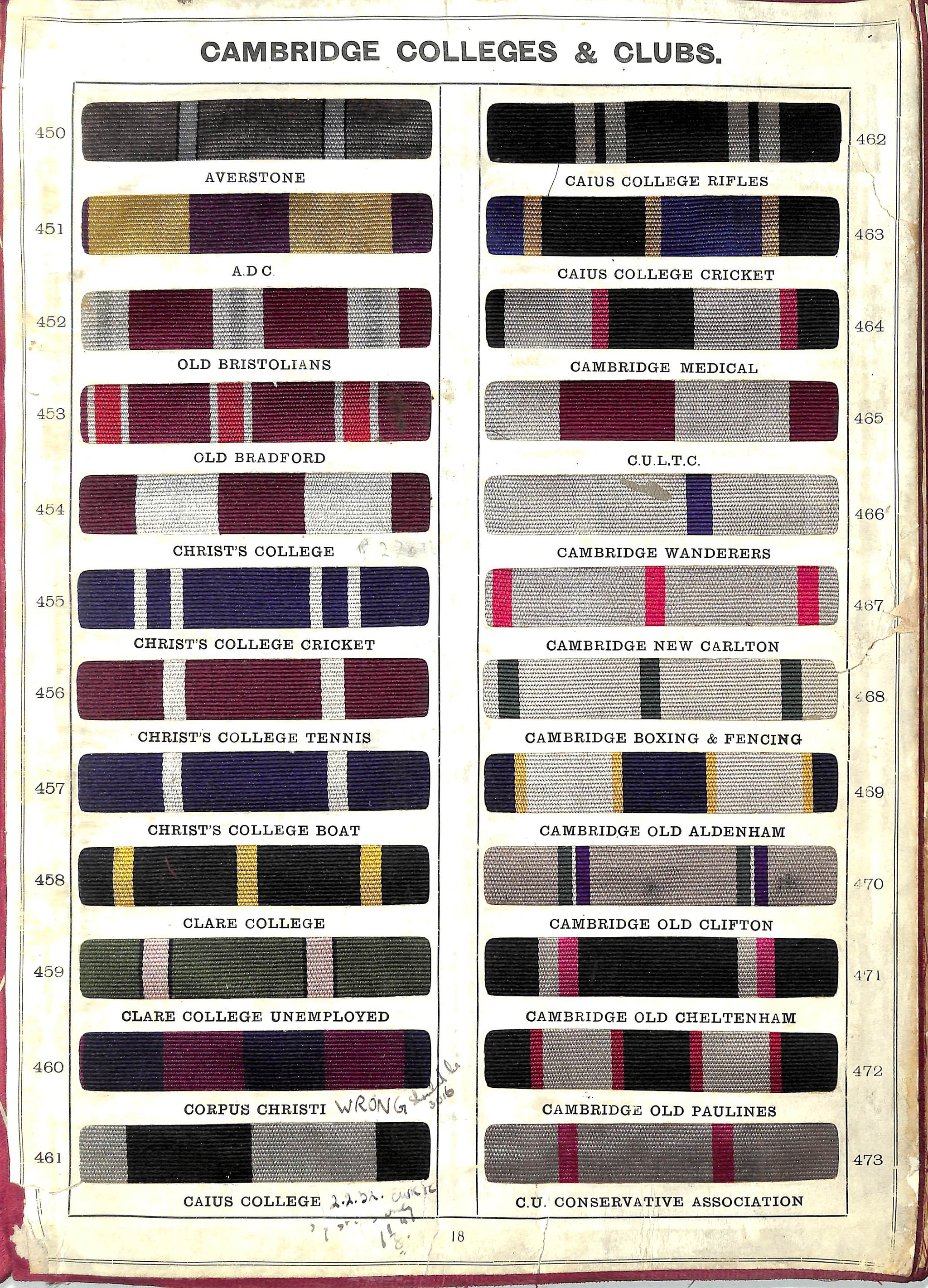 Cambridge Colleges and Clubs " 18 to 21 (84 swatches)