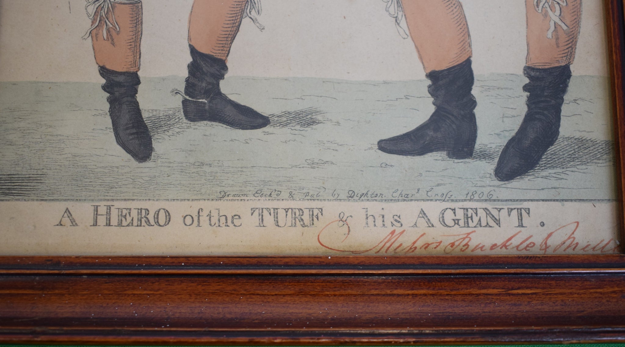 A contemporary manuscript inscription in red ink beneath the title (lower right) identifying the subjects as "Messrs Buckle & Mellish".