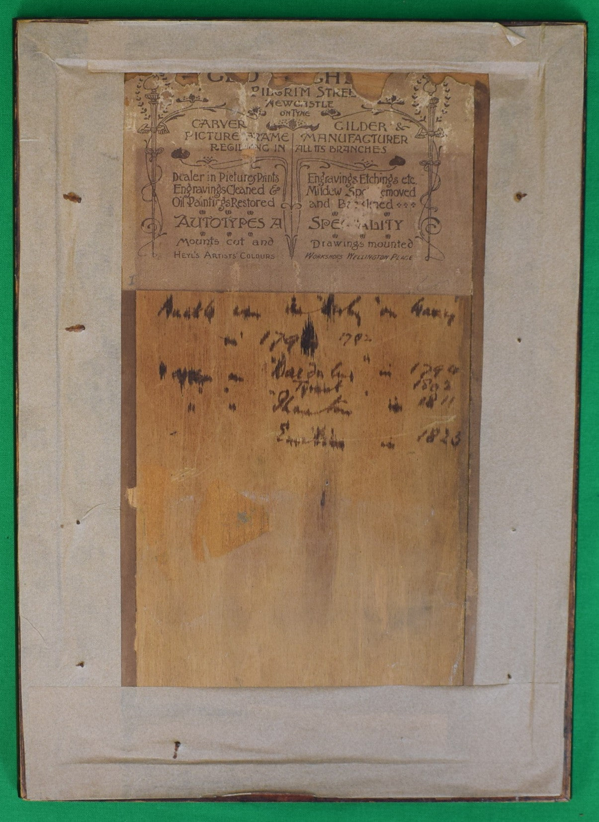 Retains circa 1905 frame with framer's label for Geo Hughes, Pilgrim Street, Newcastle