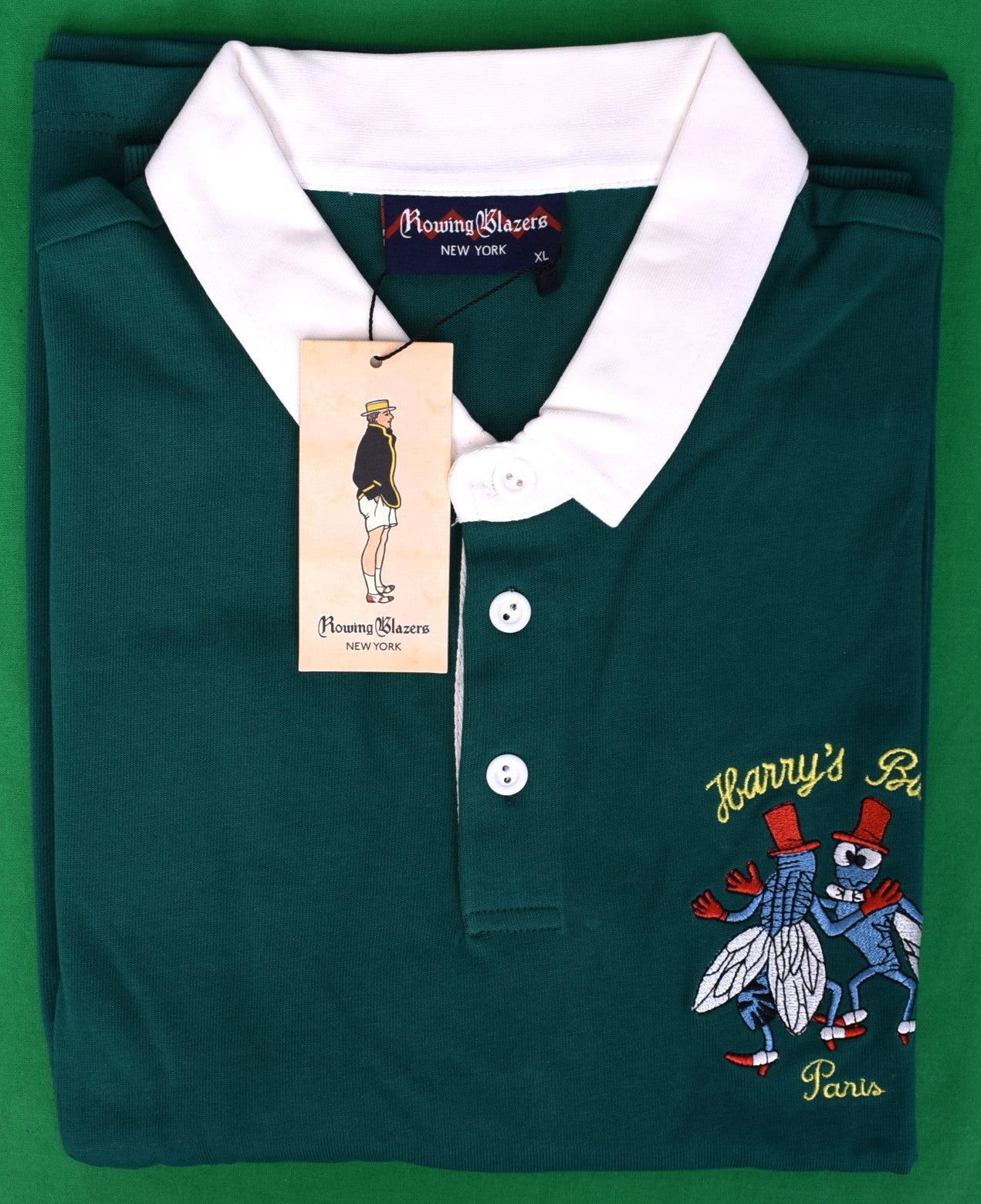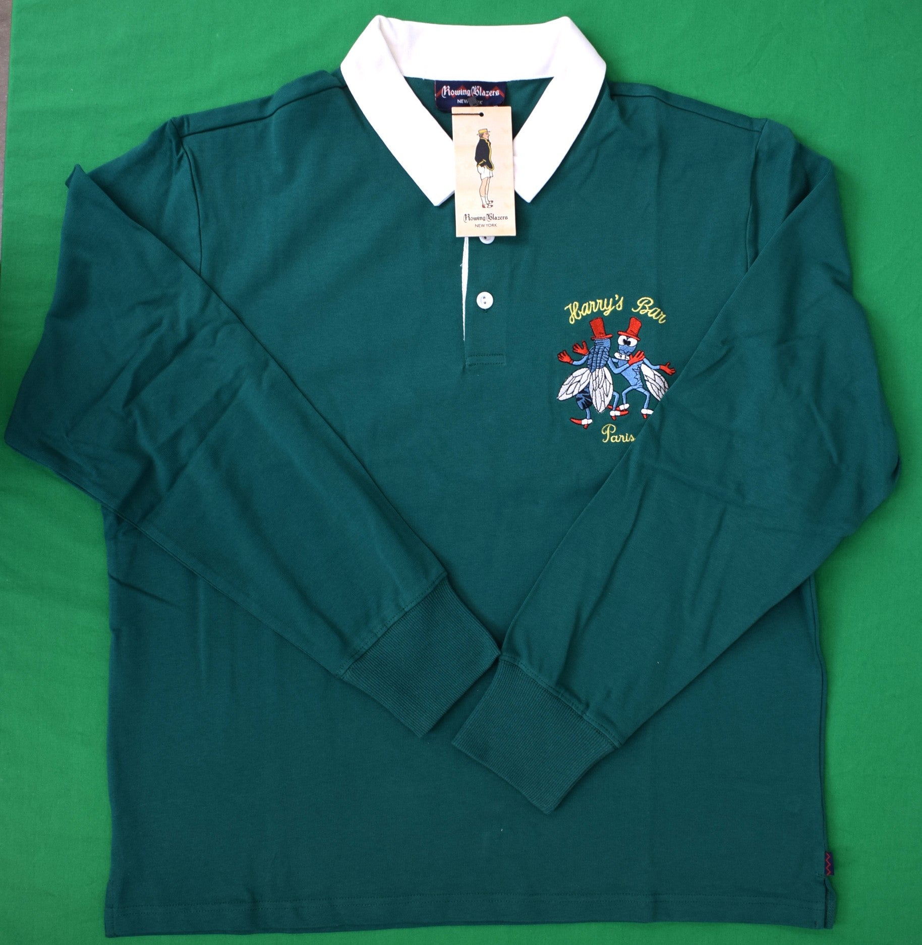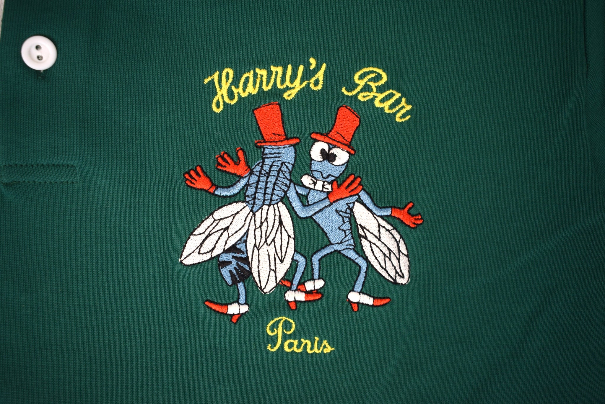 Lightweight (320GSM) Harry’s New York Bar cotton rugby jersey featuring the legendary Paris establishment’s iconic cartoon barflies embroidered on the left chest.
