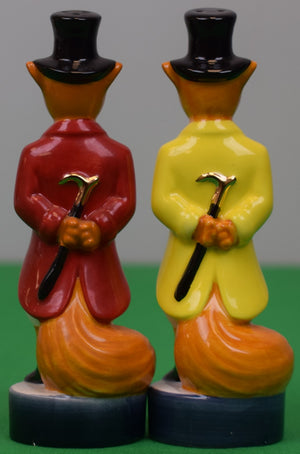 "Set x Red & Yellow Porcelain Fox-Hunter Salt & Pepper Shakers"