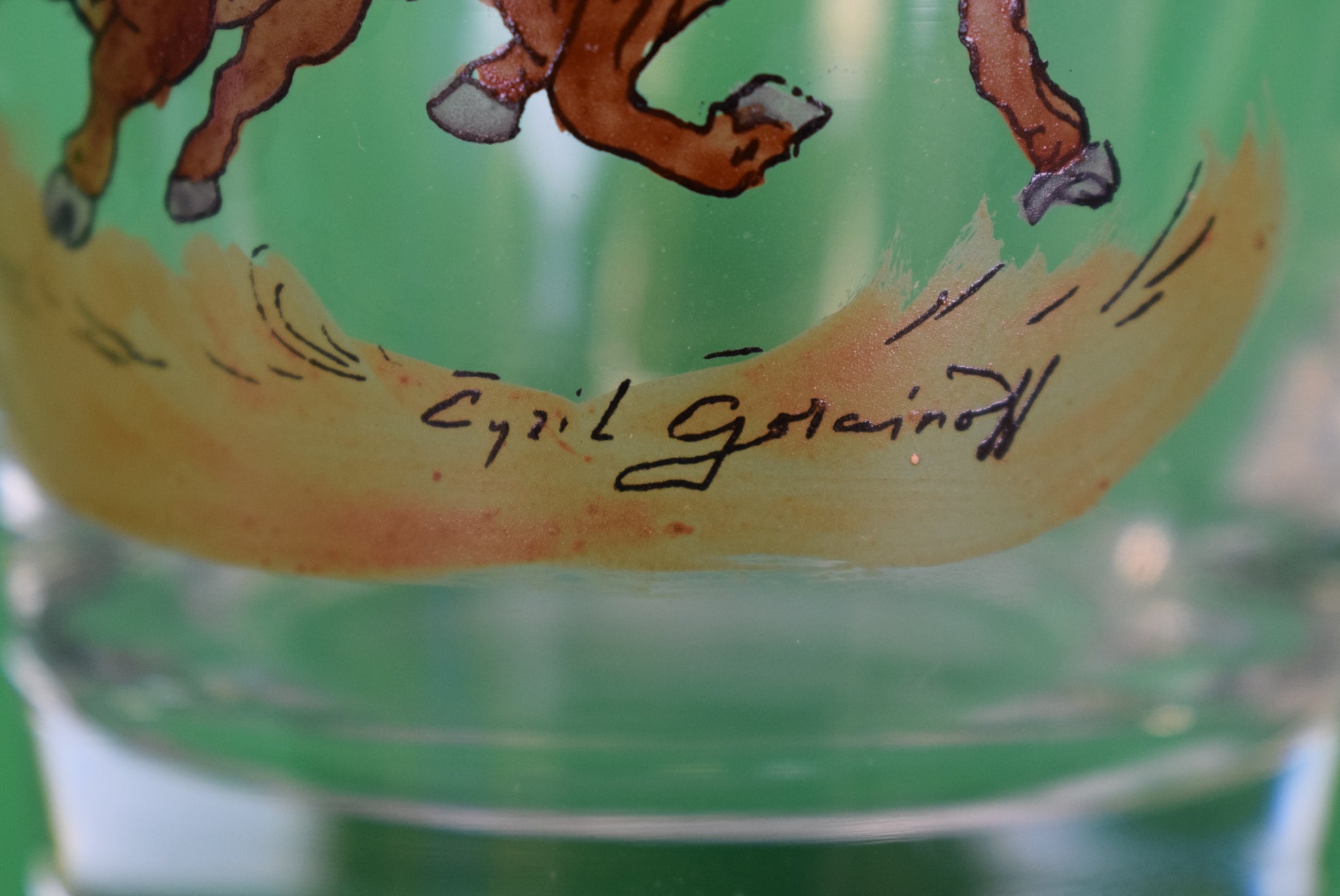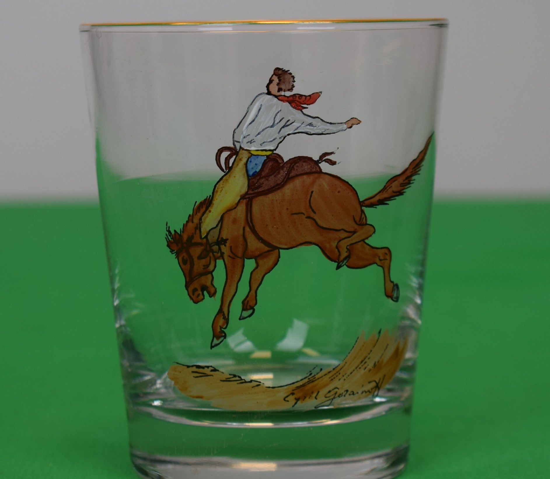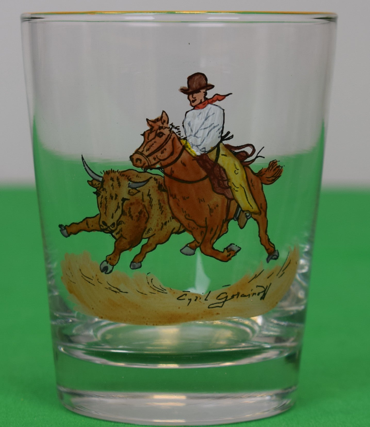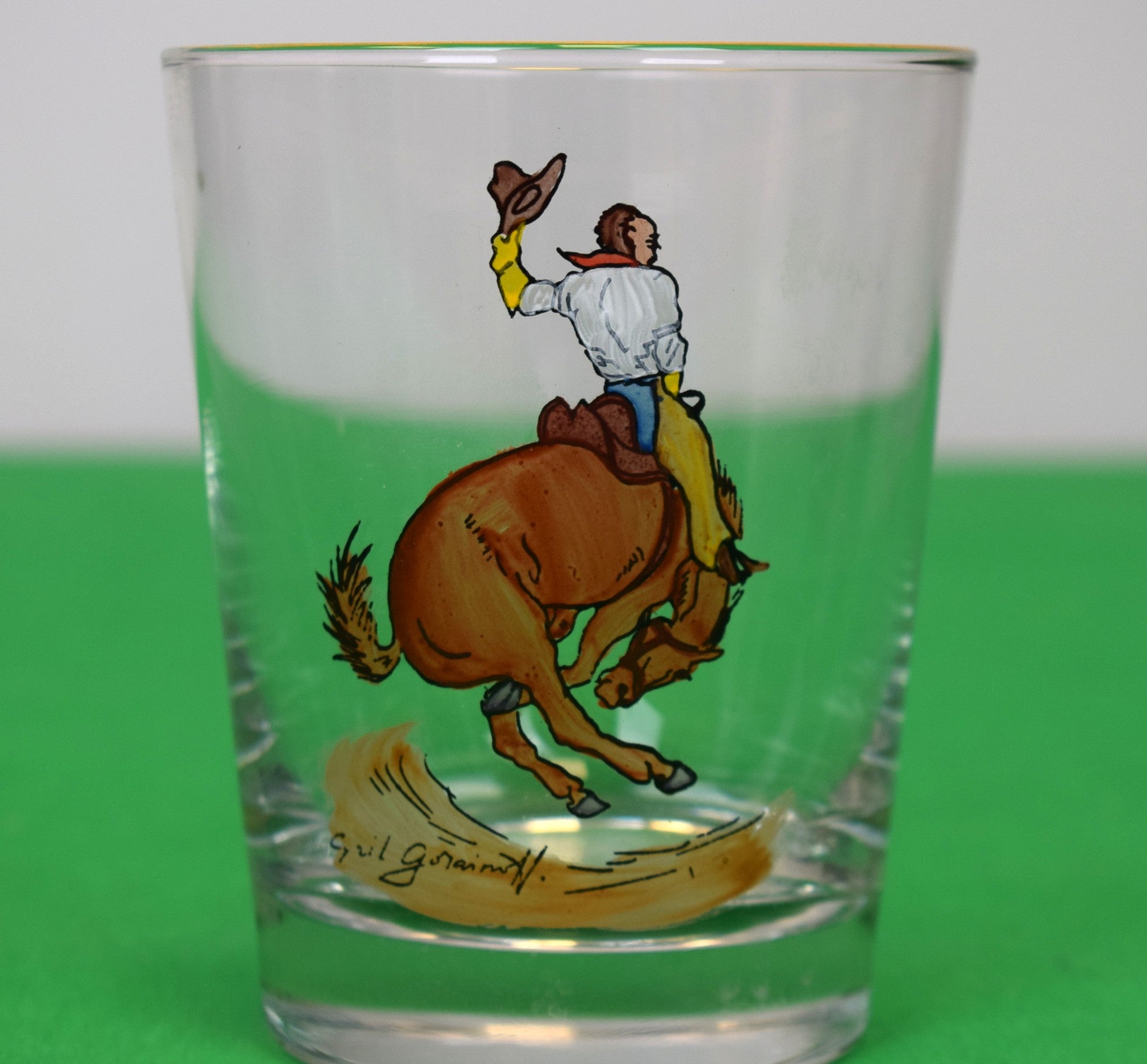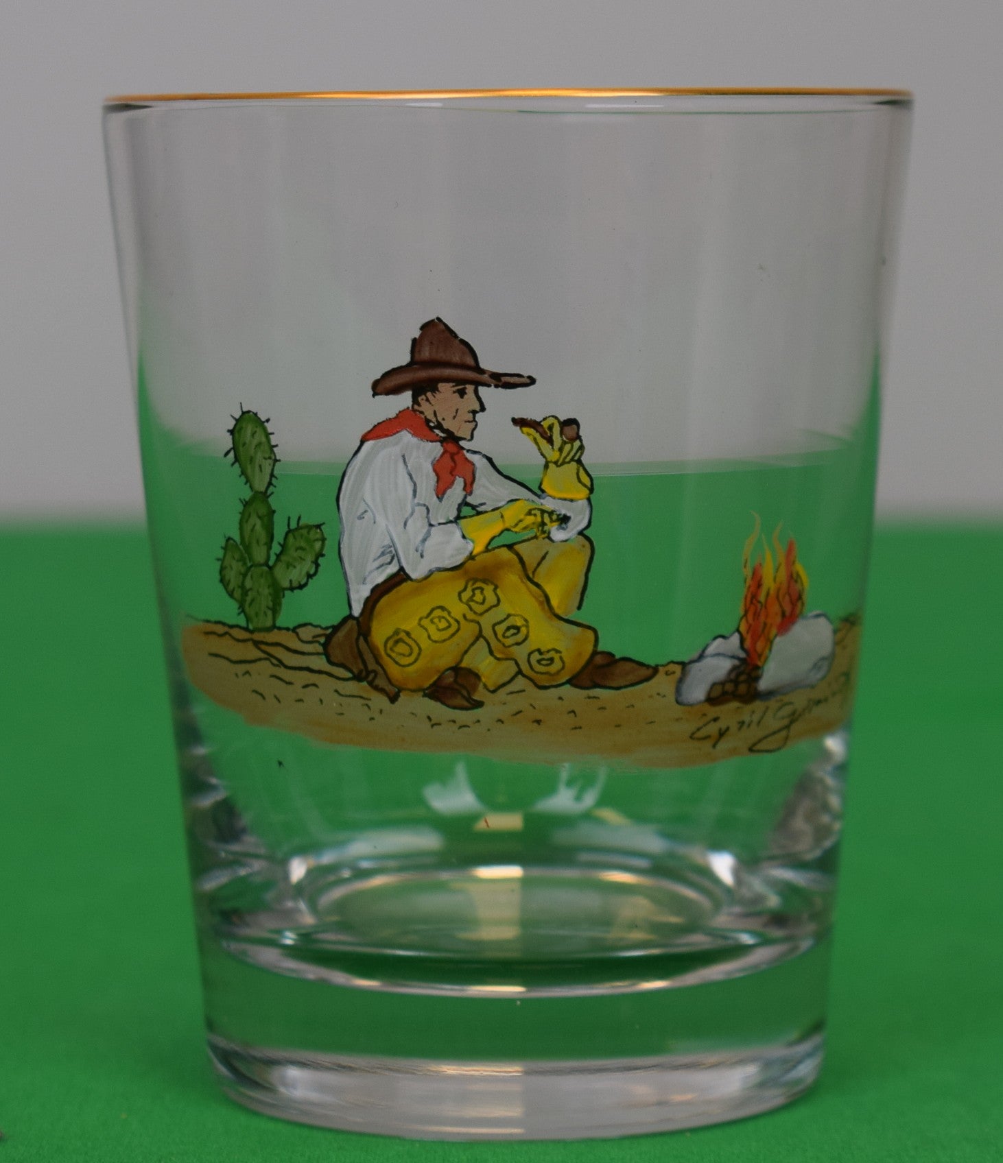 "Set x 6 Cyril Gorainoff Hand Painted Western Cowboy Theme Double Old Fashioned Cocktail Glasses"