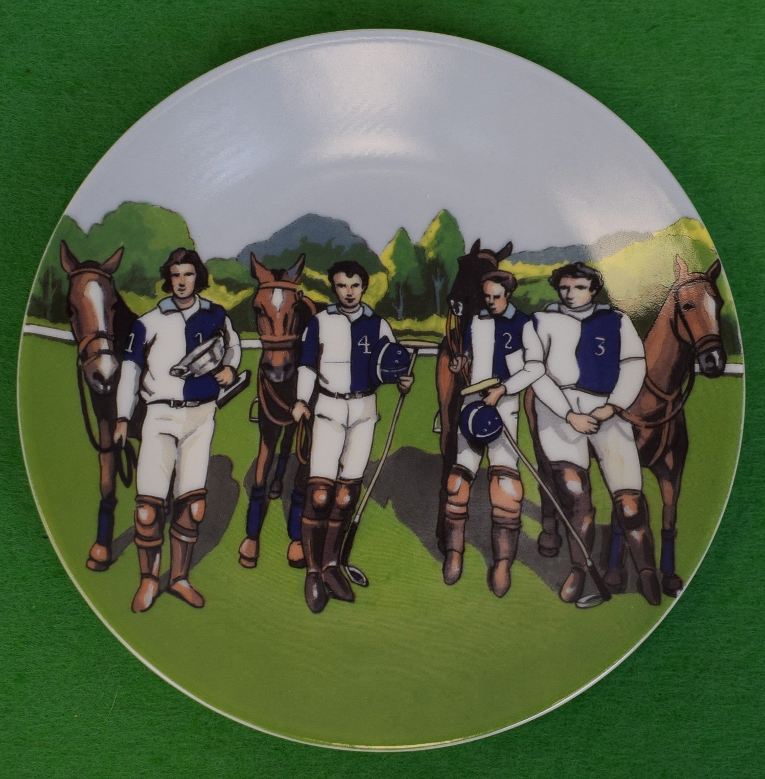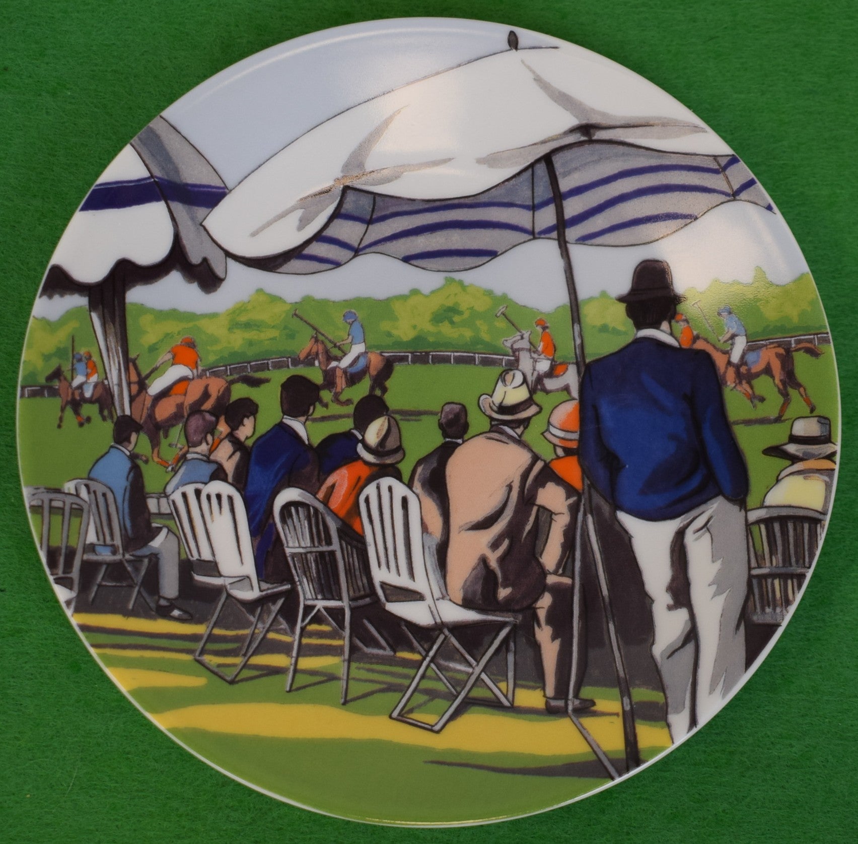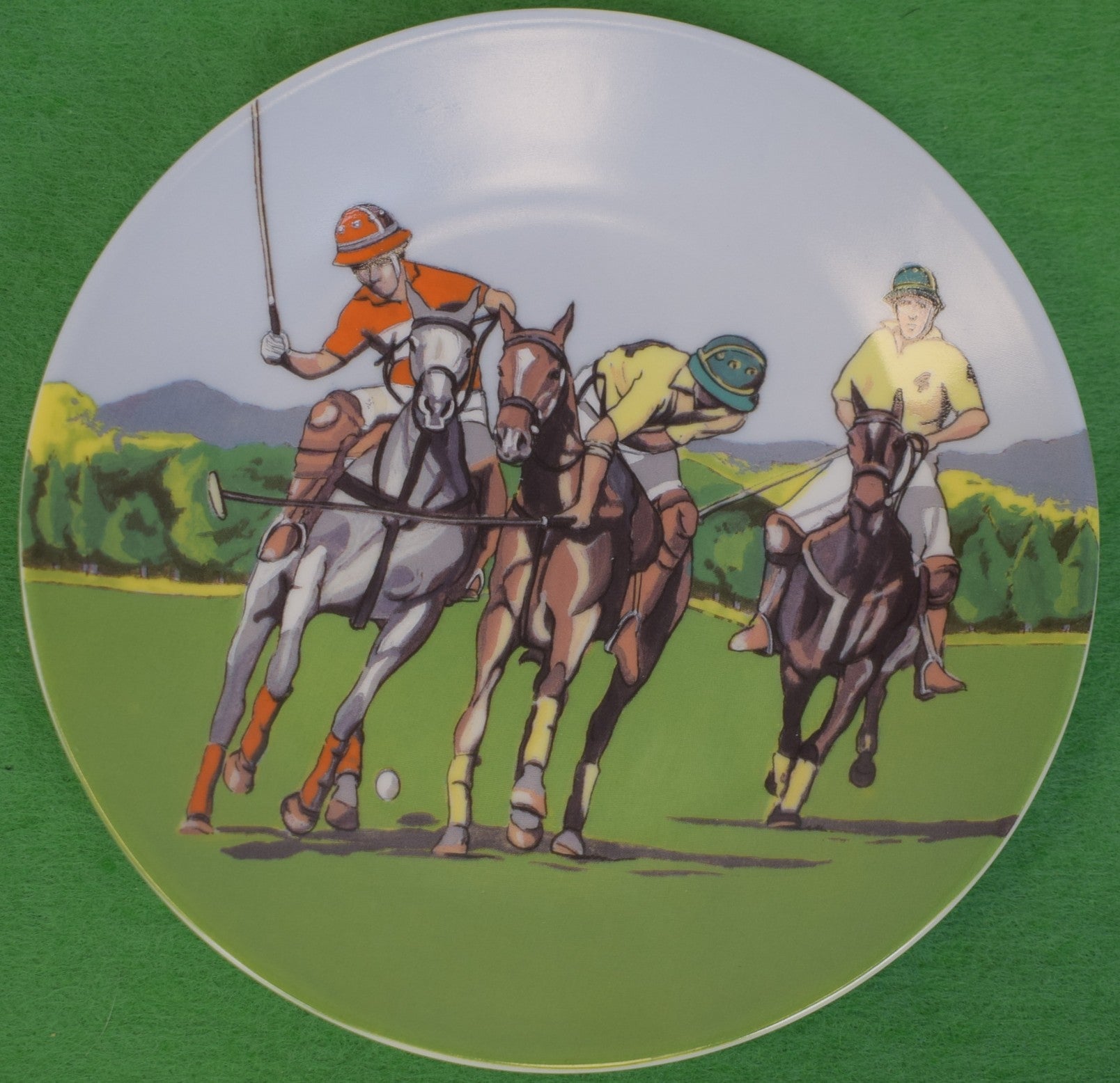 "Set x 6 French Limoges 6"D Porcelain Plates w/ Polo Match Scenes"