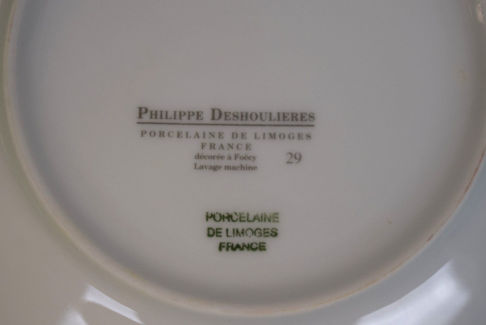 Stamped on underside: Philippe Deshoulieres Porcelaine de Limoges France