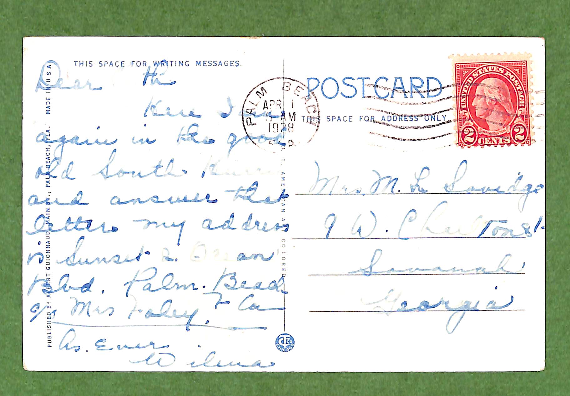 The Everglades Club From Cocoanut Row, Palm Beach, Fla. 1928 Postcard