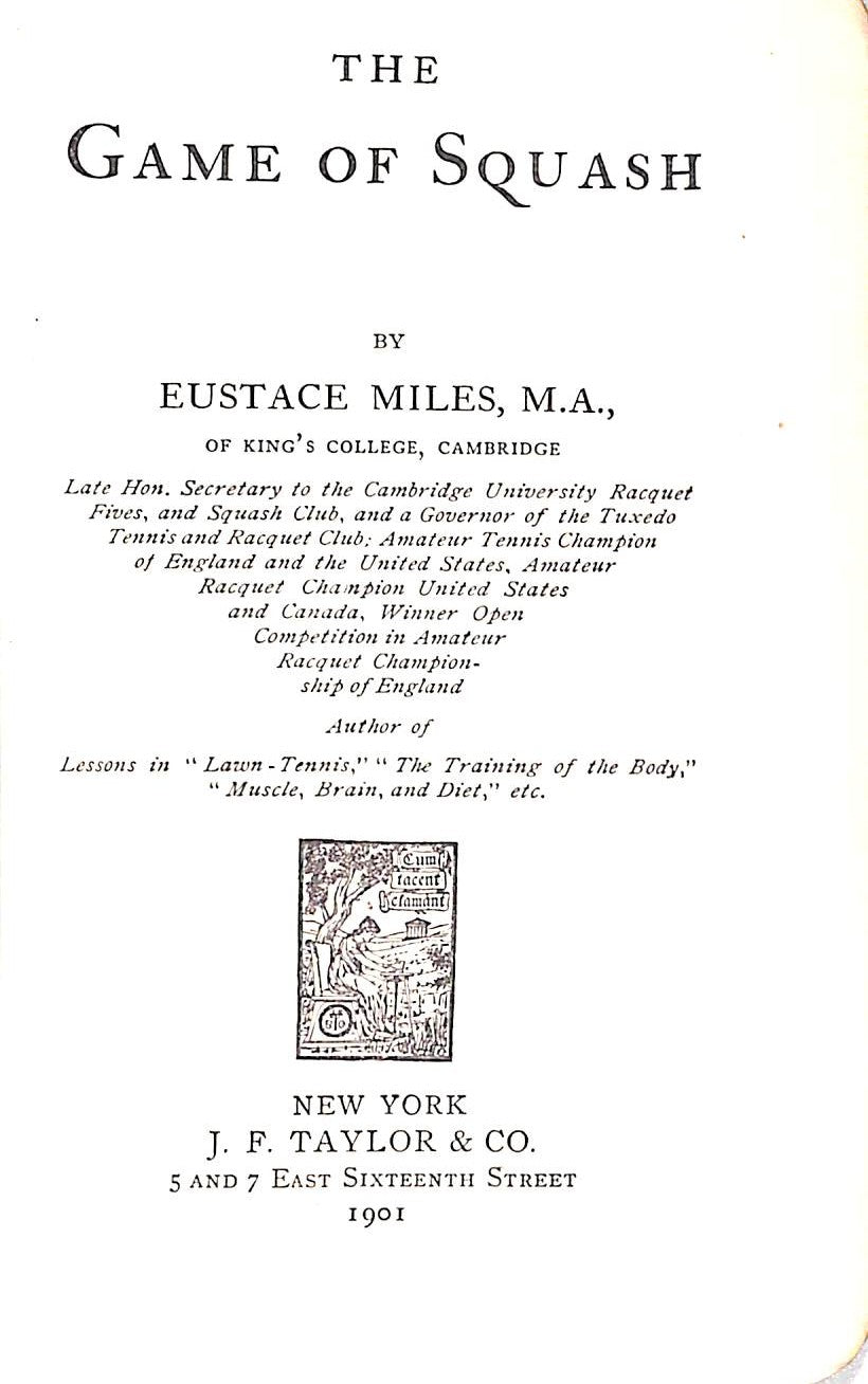 "The Game Of Squash" is a book written by Eustace Hamilton Miles and first published around 1900, offering a comprehensive guide to the sport with instructions on history, rules, techniques, and strategies. Miles, a prominent figure in racquets sports who coached in the US and became a champion, detailed the game using illustrations and diagrams to explain racket handling, serving, and shot-making.