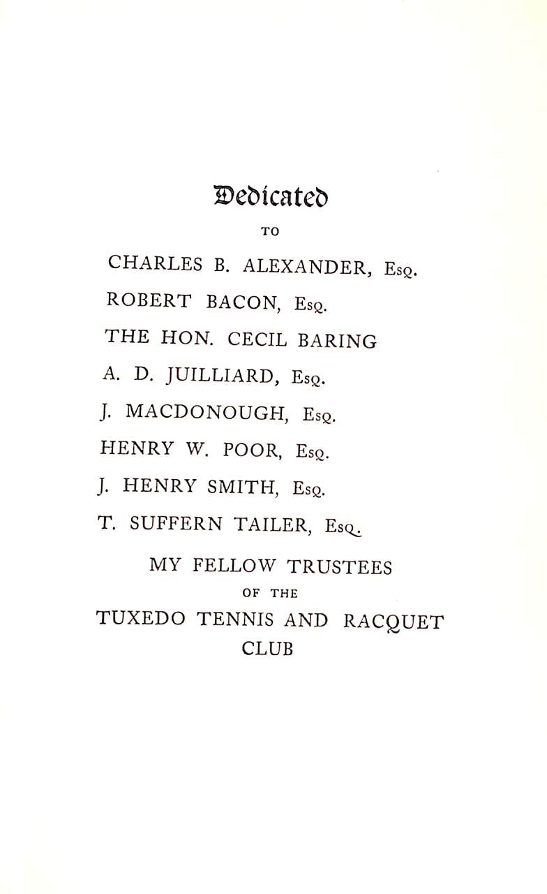 The scene of many of his triumphs was the Racquet and Tennis Club in New York, of which he was president from 1933 to 1942. He was also for many years a governor of the Piping Rock Club, Locust Valley, L. I.