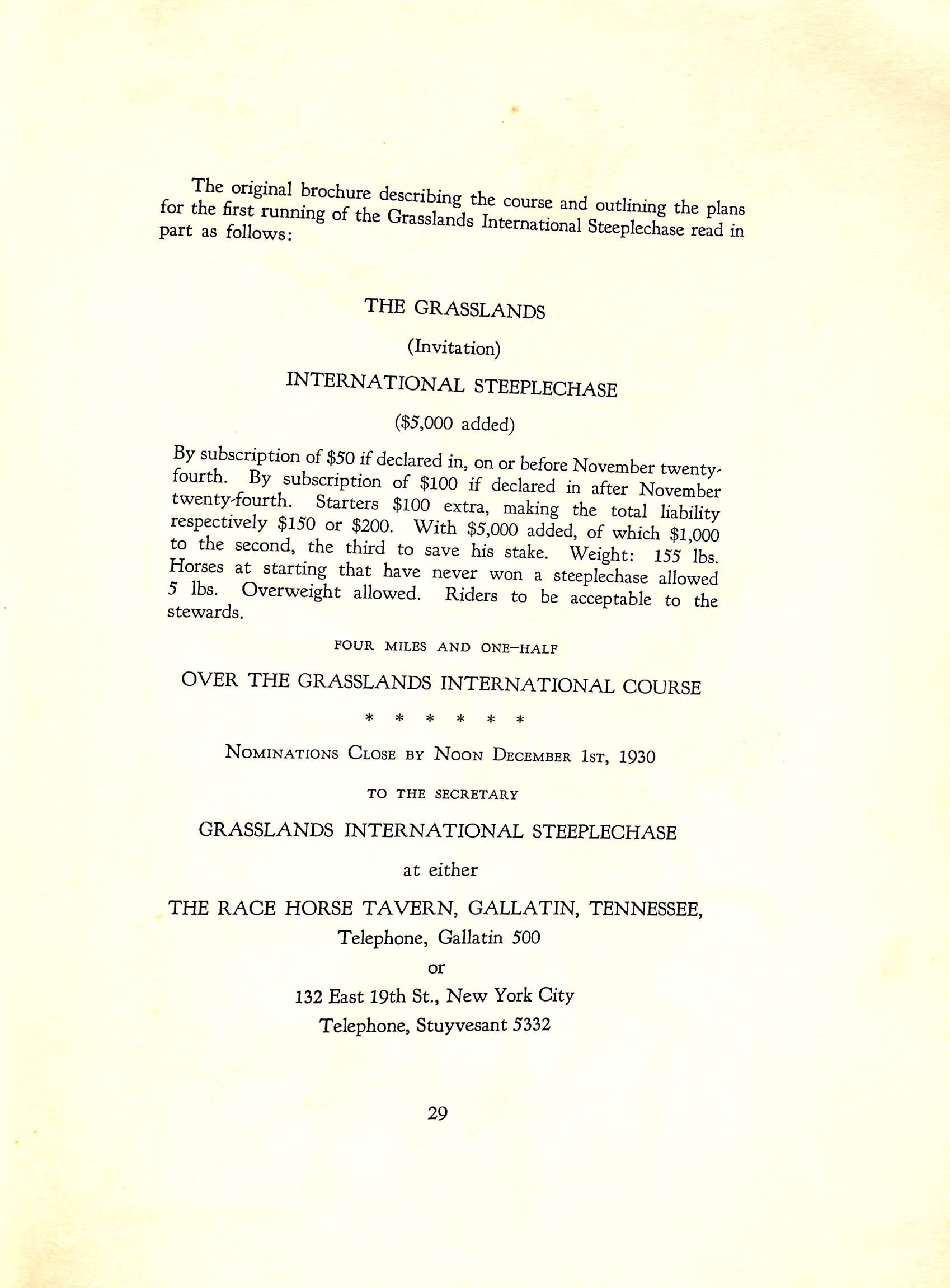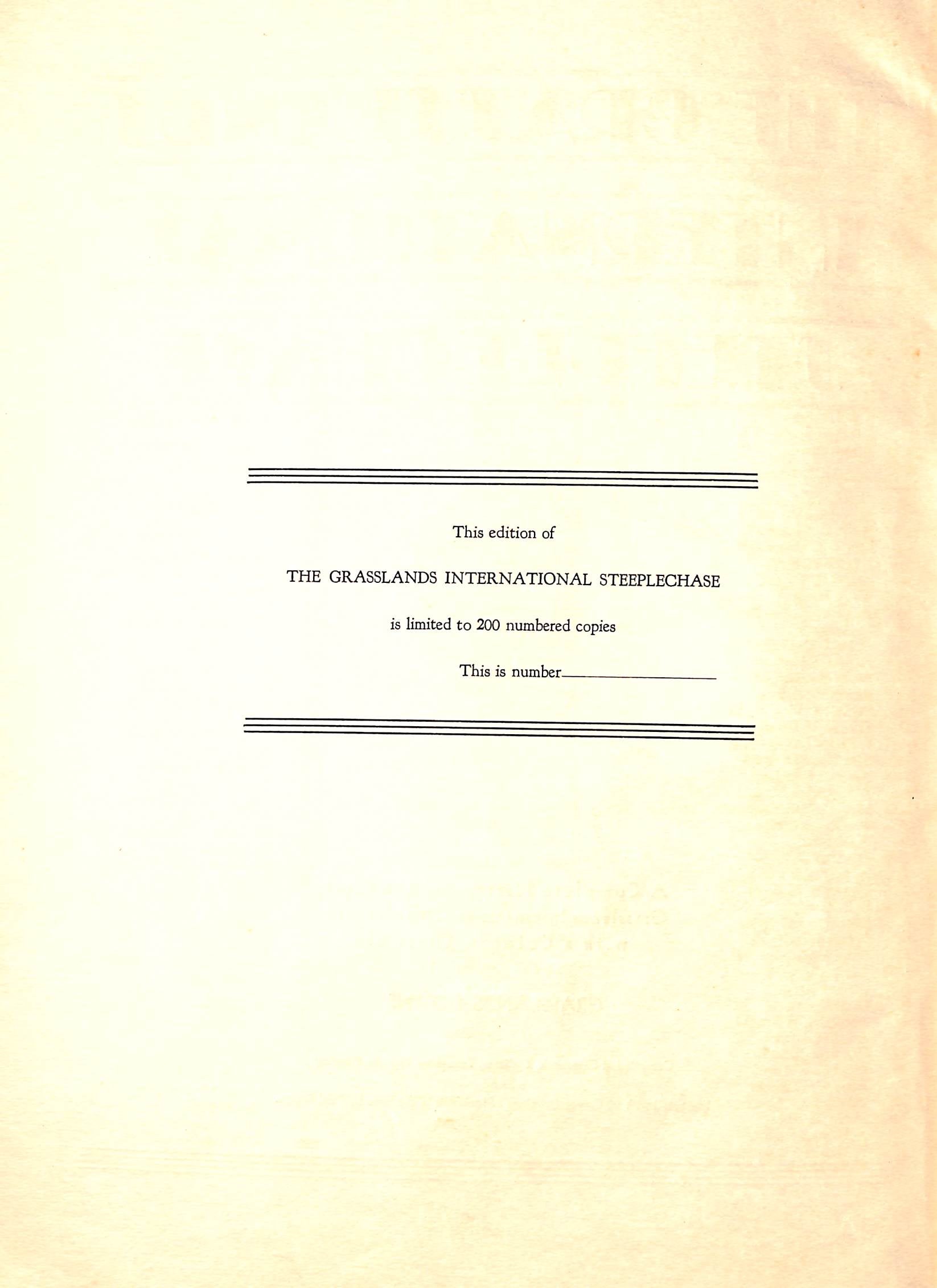 "The Grasslands International Steeplechase: A Complete History Of The First Grasslands International Steeplechase" 1931 GOURLAY, John