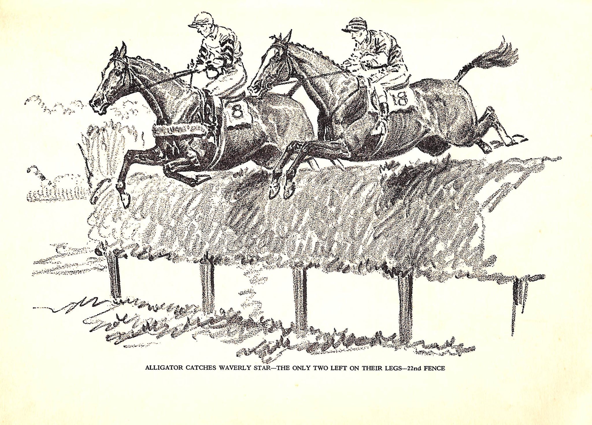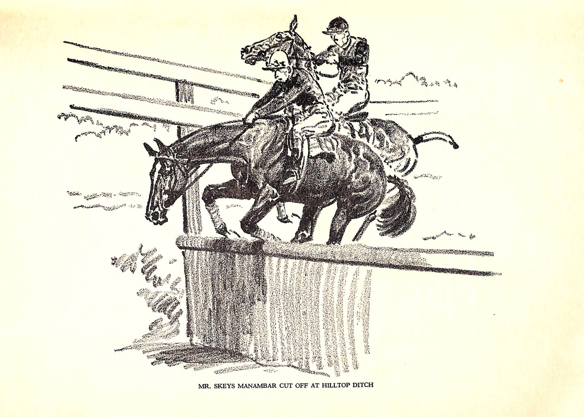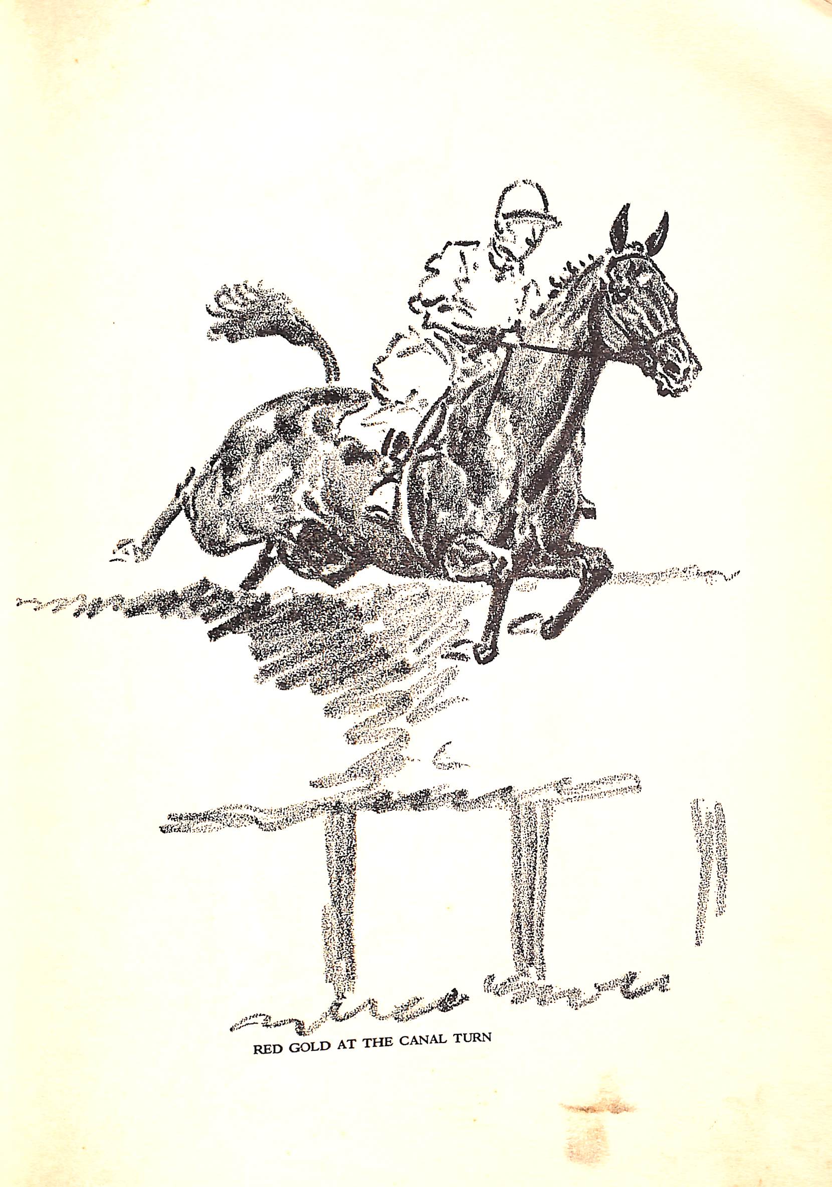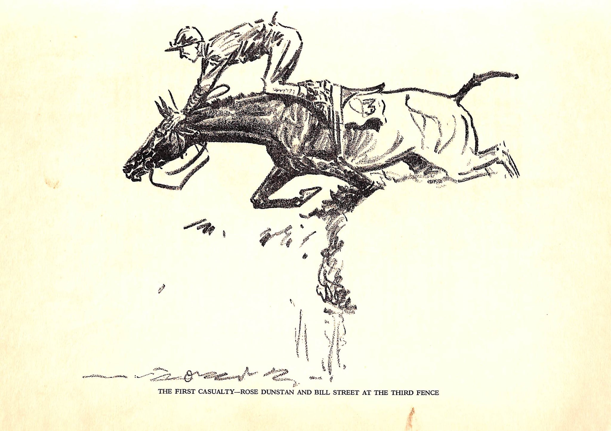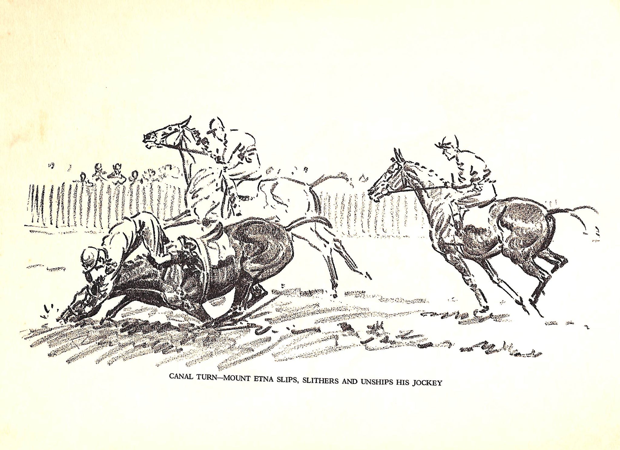 First edition, unnumbered copy (edition of 200). With 20 drawings of incidents by Paul Brown, and a  map of the Grasslands Downs course. 32, [4] pp. 1 vols. 4to. Original stiff printed wrappers.